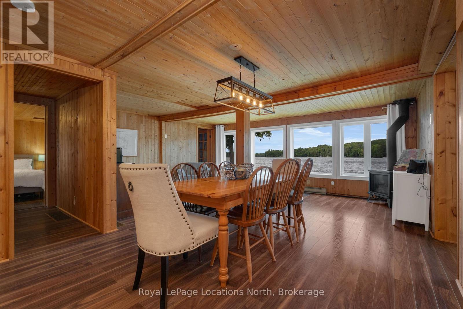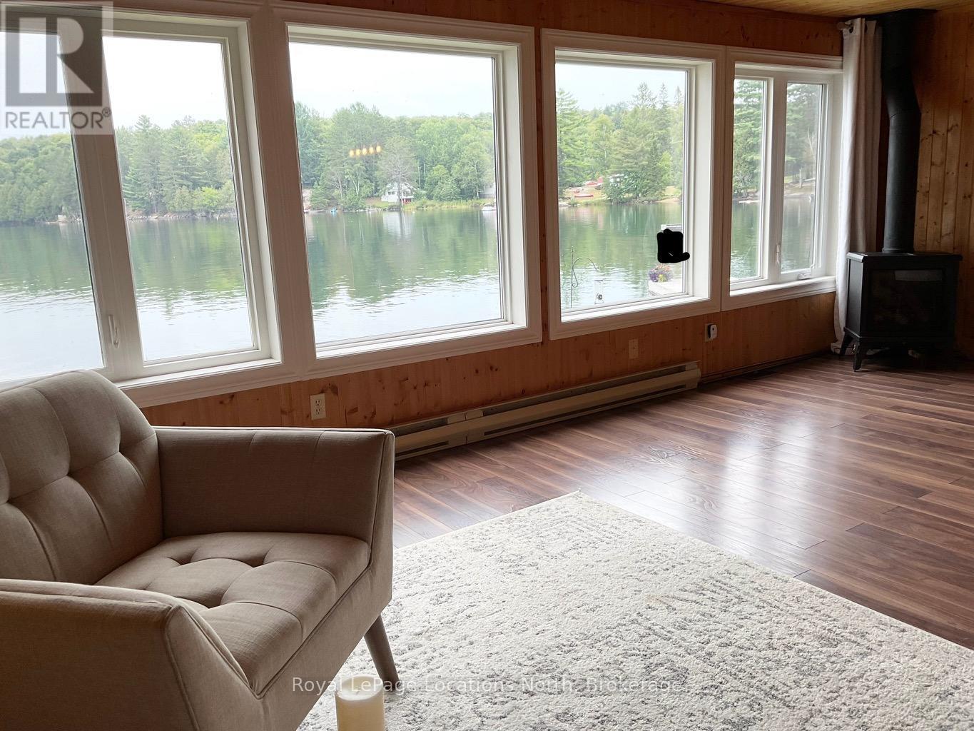 Discover your year-round retreat on the Pristine Shores of HORN LAKE !. This beautifully maintained 3-bedroom, 1,500+ square foot Lakefront home plus a loft over the large garage giving you additional entertaining area of 550+ square feet, offers the perfect blend of comfort, style, and breathtaking natural beauty. Wake up to stunning panoramic lake views in a quiet bay and enjoy crystal-clear waters right from your private dock, featuring deep water ideal for swimming and boating. Whether you're relaxing on the spacious deck, entertaining lakeside, or soaking in the scenery from the living room, this property delivers the ultimate Waterfront Lifestyle everbody dreams about. Horn Lake is renowned as one of the area's most sought-after lakes, known for its exceptional water quality and endless recreational opportunities. Inside, modern updates meet warm, rustic charm. Solid pine accents and expansive lake-facing windows bring the outdoors in, while the inviting family room with a wood stove offers the perfect place to cozy up on those cold winter days. A second propane fireplace ind the Living / Dining area adds even more warmth and ambiance, making this home ideal for ALL four seasons. Extensive recent upgrades provide peace of mind, including: Propane furnace (2022) , Windows & patio door (2021) , Roof shingles (2019), Deck resurfaced (2024).. Adding exceptional versatility, the detached 24' x 24' shop/garage includes a finished upper level-perfect for guests, a studio, home office, or additional living space. This move-in-ready property invites you to start enjoying Lake Life immediately ! Don't miss this rare opportunity to embrace the ultimate waterfront lifestyle on Horn Lake. (id:64974)