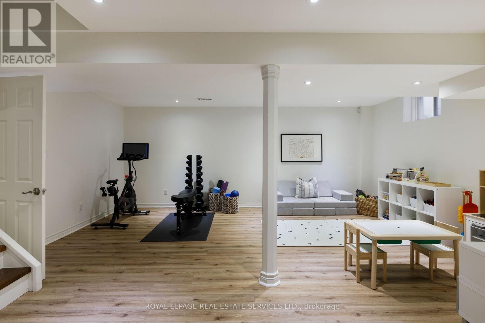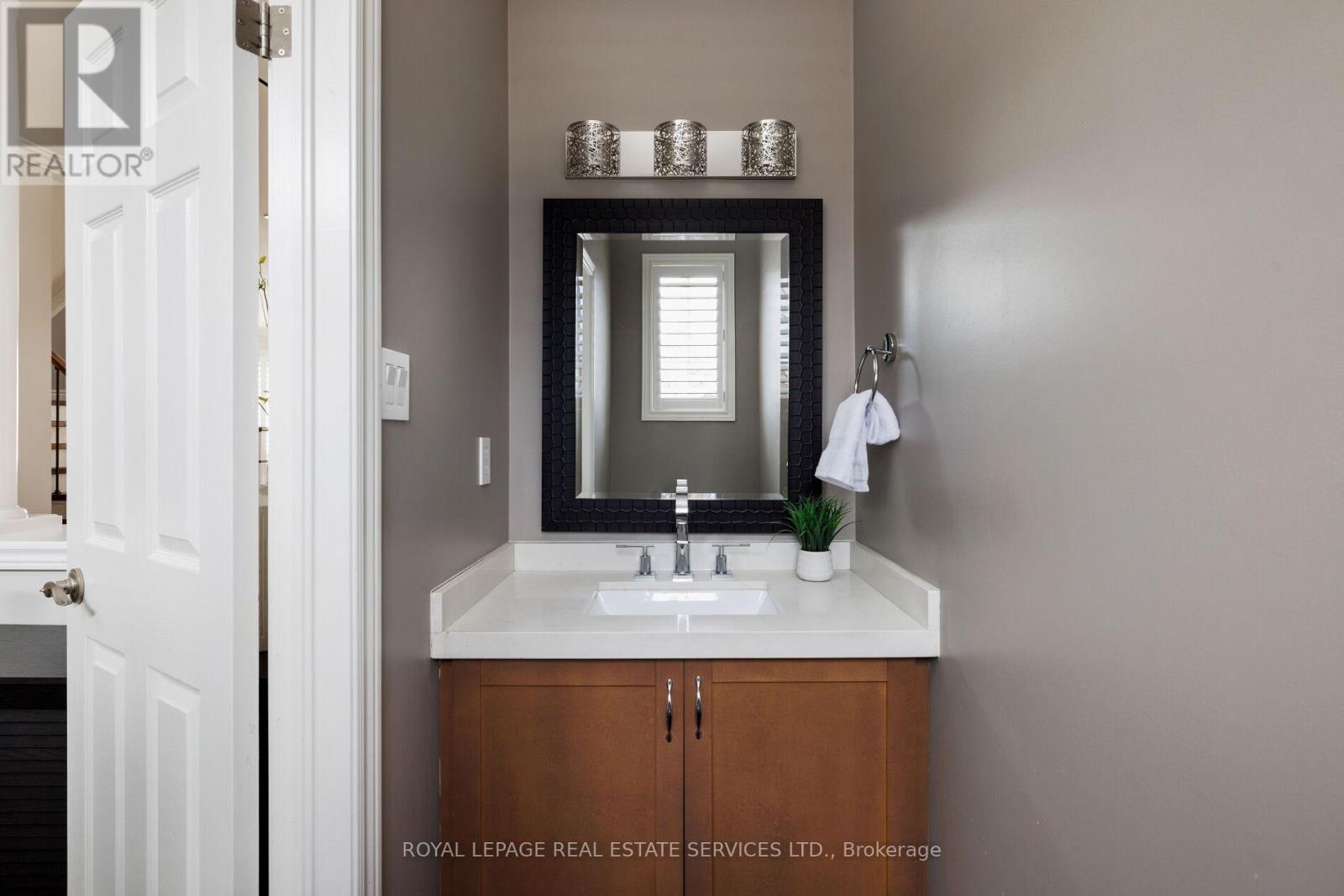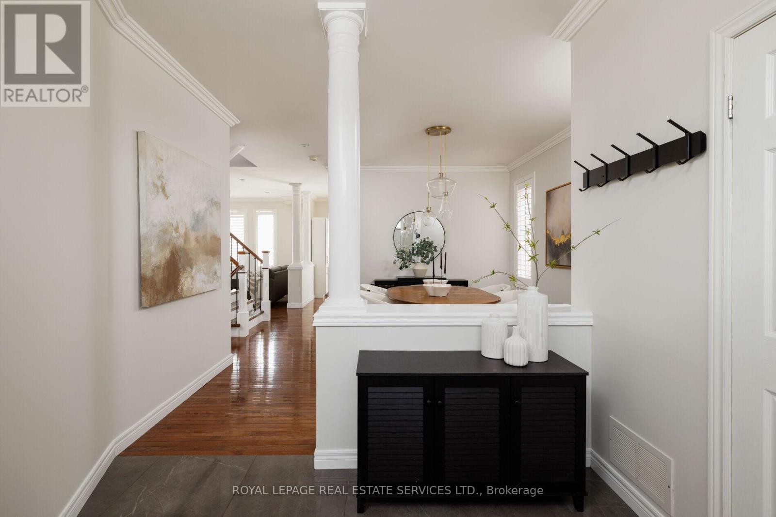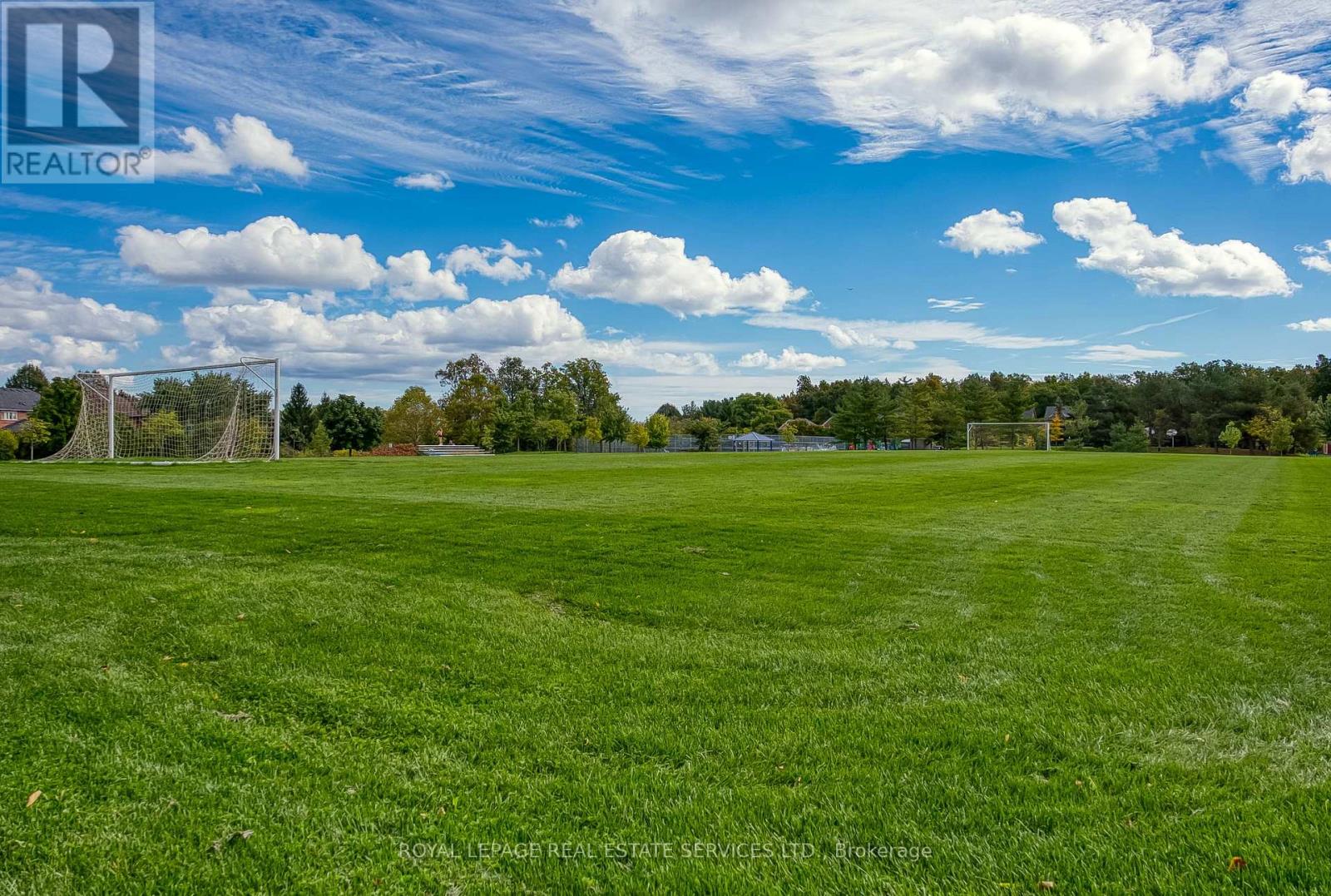 Stunning, turnkey home in sought-after West Oak Trails, backing directly onto Bloomfield Park with no rear neighbours-an exceptional setting offering privacy, tranquil views, and direct gate access to green space and trails. Located in a top-rated school district and minutes to Oakville Trafalgar Memorial Hospital, Glen Abbey Community Centre, The Abbey Plaza, Bronte GO Station and highways (QEW/407), this home blends nature with urban convenience. Exceptional curb appeal features beautiful, manicured gardens, an exposed aggregate double driveway leading to the double garage with inside entry, while soffit lighting enhances the upgraded brick exterior. The private backyard retreat boasts a spacious exposed-aggregate patio-ideal for entertaining or relaxing in a serene, park-like setting. Offering well-designed above-grade living space plus a finished basement, this home showcases hardwood floors, crown mouldings, California shutters, 9' ceilings, pot lights, and an upgraded staircase with metal pickets. The bright family room, with elegant crown mouldings, a gas fireplace, and a wall of windows, overlooks the park. A formal dining room is perfect for hosting, and the kitchen features maple cabinetry with valance lighting, quartz counters, stainless steel appliances, a centre island with a breakfast bar, and a walkout to the yard. Upstairs offers 3 bedrooms, plus a versatile den (optional 4th bedroom), and 2 renovated baths, including a luxurious primary retreat with a spa-inspired 5-piece ensuite, heated floor tiles, soaker tub, and glass shower with body jets. The finished basement adds a large rec room, 4th bedroom (no closet) with fireplace, and 3-piece bath-ideal for families or multi-generational living. Updates: roof (2015), furnace & HWT (2016), A/C (2021). (id:64974)
