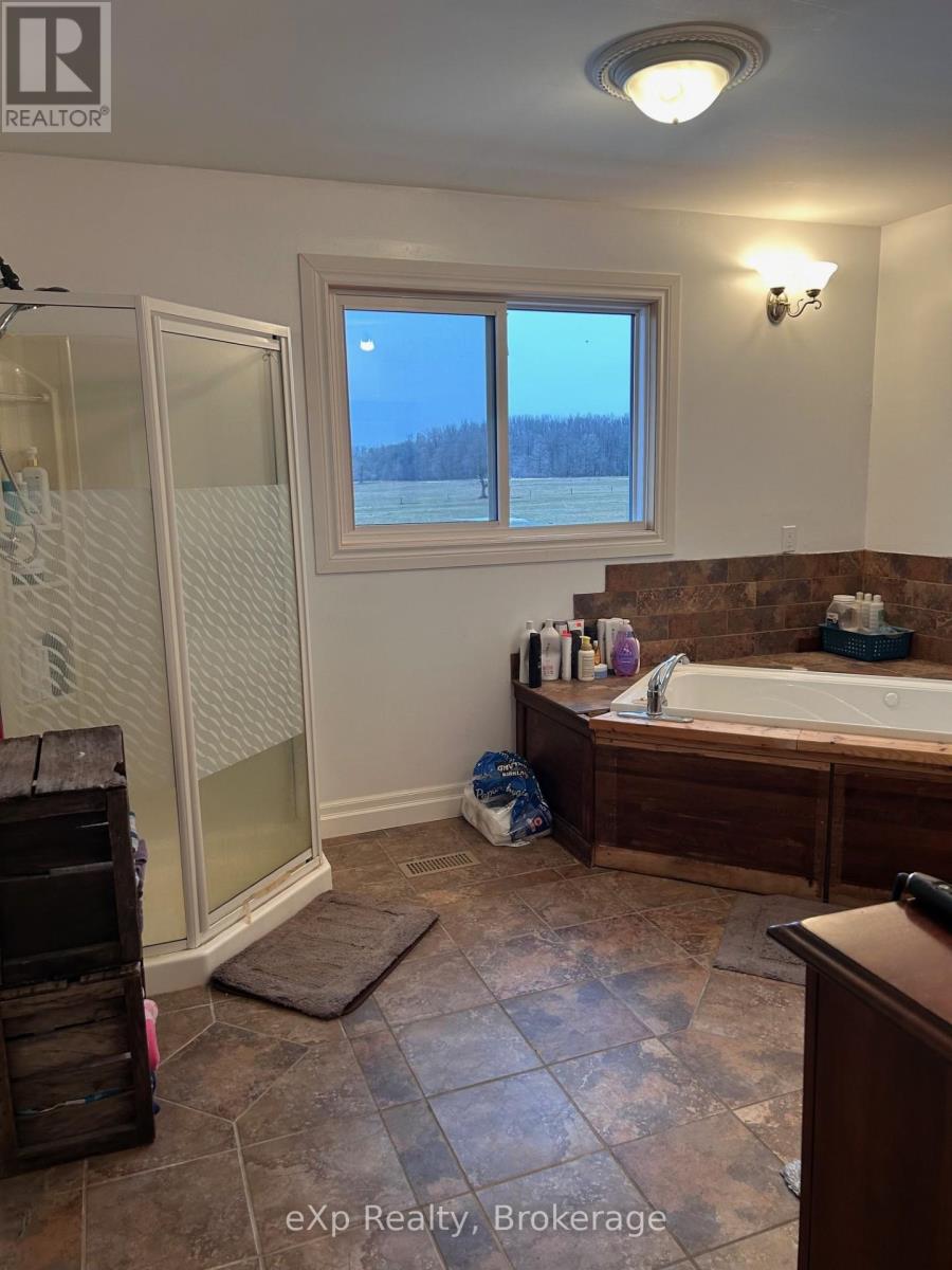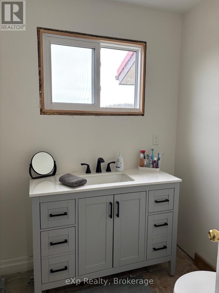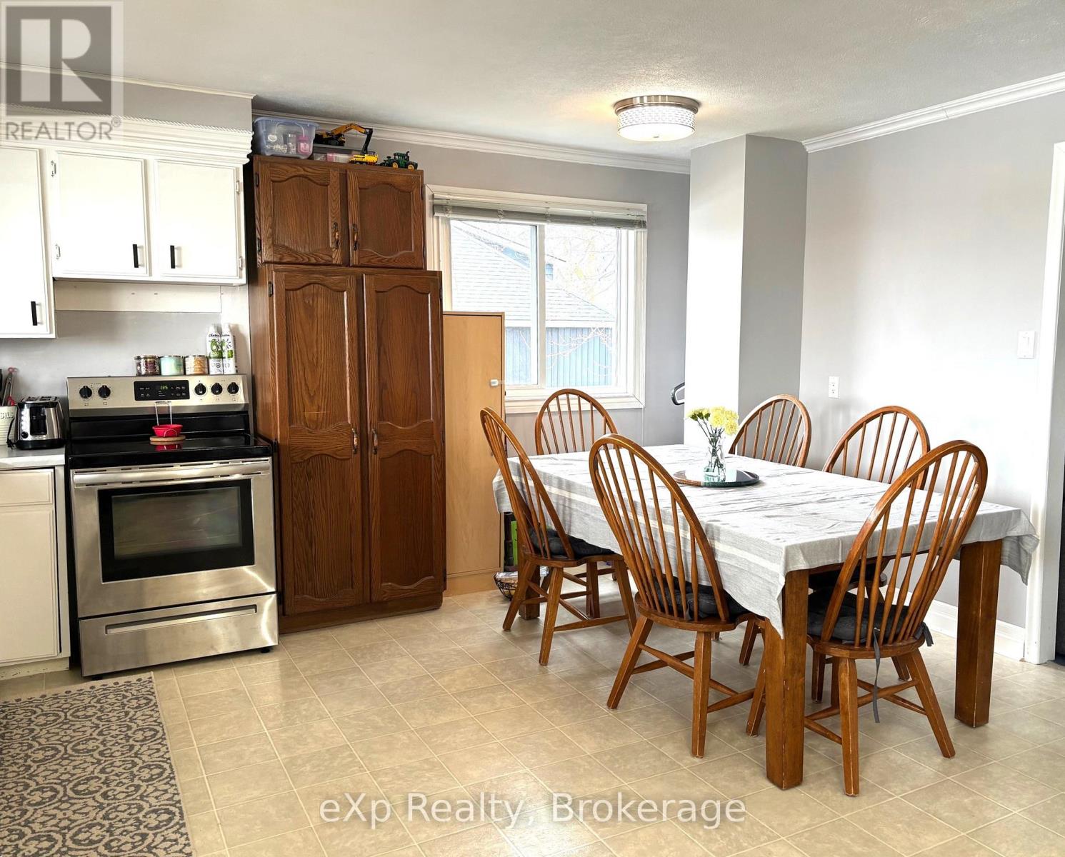 This spacious two-story family home in the friendly hamlet of Cargill offers an abundance of space for your growing family, featuring a generous kitchen, a comfortable living room, a bonus family room with a cozy wood fireplace, and a convenient two-piece bath on the main floor. A unique, wider spiral concrete staircase leads to the second floor, where you'll find three bedrooms and a large full bath with a soaker tub and separate shower, perfect for relaxing after a busy day. Downstairs offers enormous potential to put your design ideas to work! There's a great space for a rec room which has a free-standing woodstove, a large laundry room, huge storage area and bonus storage room under the garage for the wood pile. Garden shed out back is ideal for lawn and garden tools. Sit on the covered front porch with your morning coffee or BBQ on the rear deck while you admire the relaxing view of the fields behind. The steel roof will be reliable for many years and most windows have been upgraded by current owners. Cargill is situated just a short drive to nearby town amenities, the beaches or Bruce Power. (Note: Window and door trim to be be completed prior to closing). (id:64974)