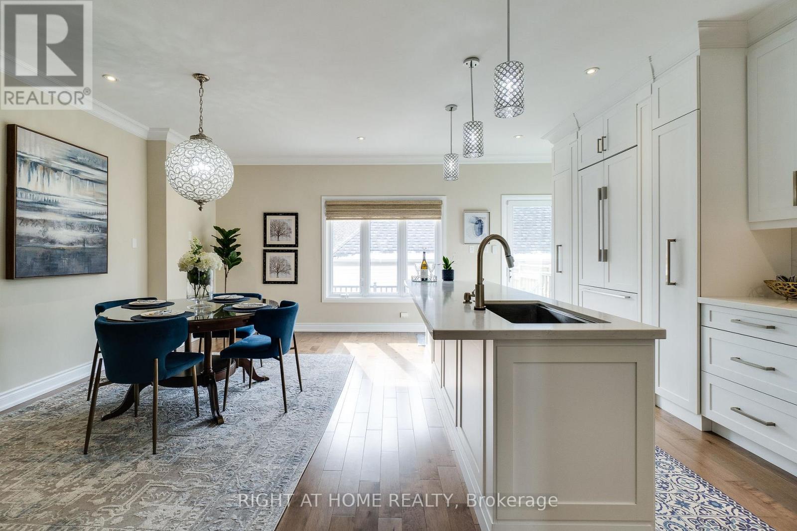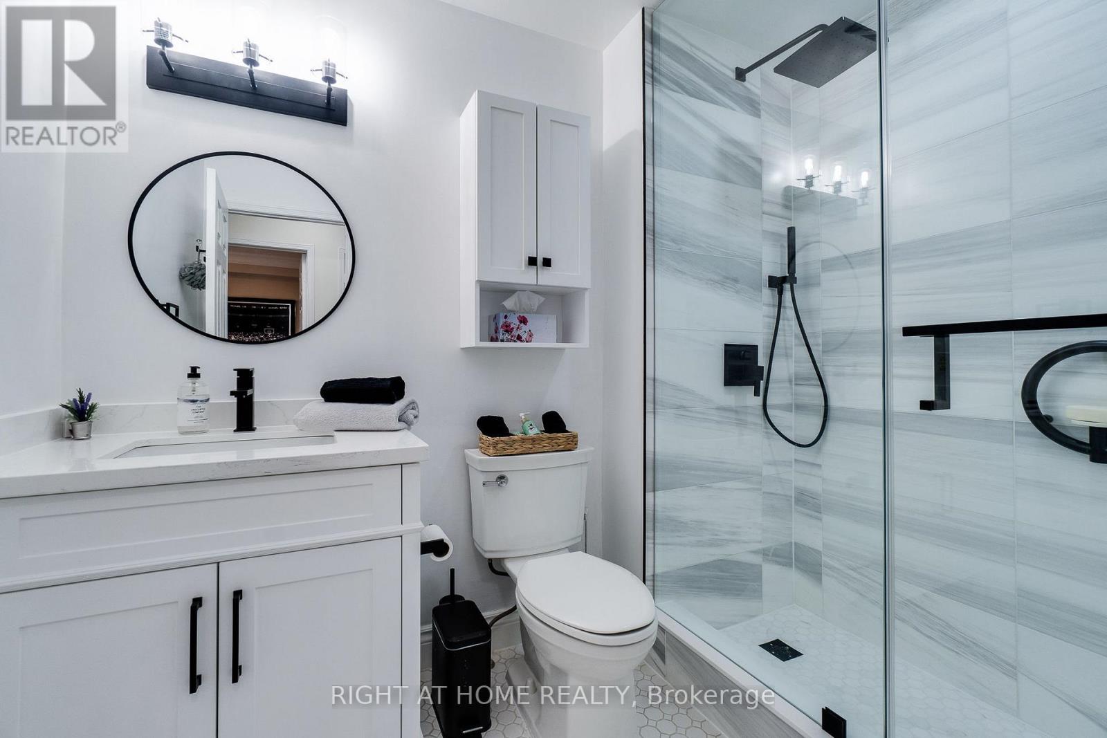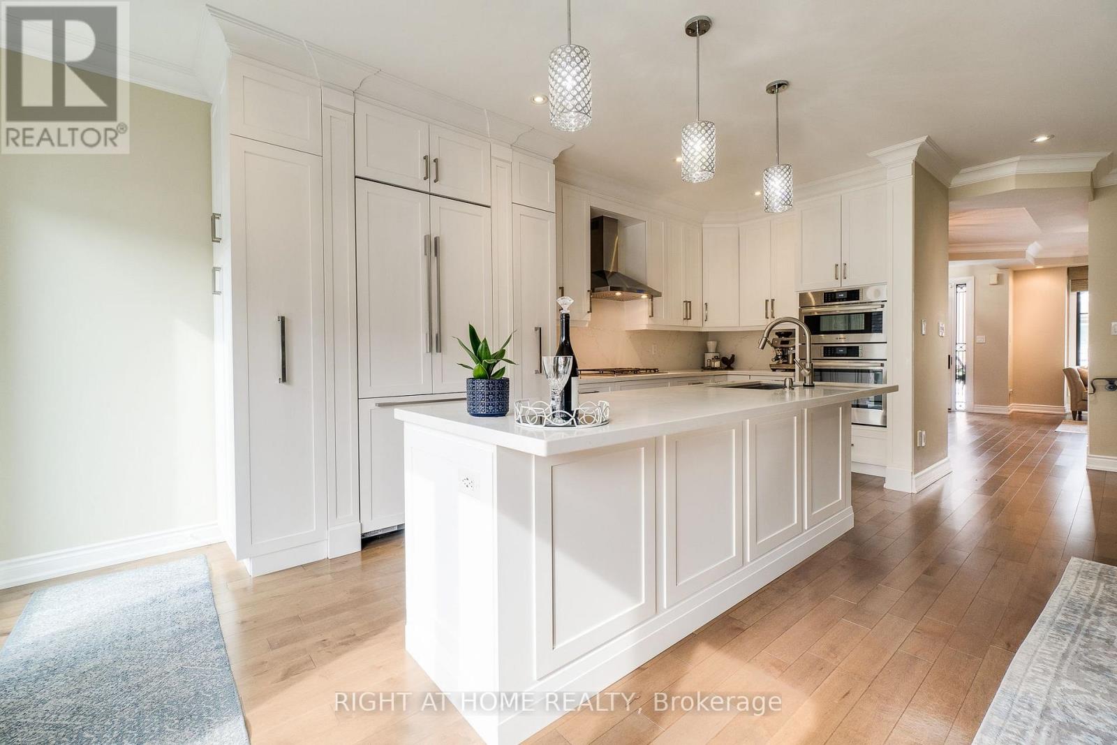 Welcome to this beautifully and extensively renovated 3-bedroom detached home in the highly sought-after River Oaks community, offering refined design and over $300,000 in premium upgrades. The main floor features an elegant open-concept living and dining layout anchored by a stunning custom kitchen completed in 2024, showcasing a large quartz island and backsplash, and high-end appliances including a Dacor gas cooktop, Bosch double wall ovens, Dacor paneled refrigerator with dual motor and temperature control and dual filtered water dispenser, and Bosch dishwasher, with a walkout to a private fully fenced backyard patio ideal for entertaining. New hardwood flooring installed throughout the home, including second floor bedrooms (2024), complements the modern aesthetic, with Cheney black casement windows, updated railings and handrails, and fresh paint enhance the home's craftsmanship. The second floor offers a spacious family room with built-in entertainment unit that can easily convert to a 4th bedroom. The large walk-in closet can be converted back to a second floor laundry room. A private level is dedicated to the primary retreat, featuring a walk-in closet, a luxurious 4-piece ensuite with glass-enclosed shower and stand-alone soaker tub, and a bonus area with built-in closets and vaulted ceiling, ideal for a nursery or home office. The finished basement provides additional living or recreational space. complemented by a double-car garage. Major upgrades include Cheney Custom Windows and Front Door (2024), kitchen and bathrooms (2024), backyard and exterior stonework ,lighting , fencing and landscaping (2020). Double car garage, new garage door(2018).Ideally located near top-rated schools, parks, trails, shopping, dining, Oakville GO, and the QEW, this exceptional home blends luxury, space, and lifestyle convenience. (id:64974)