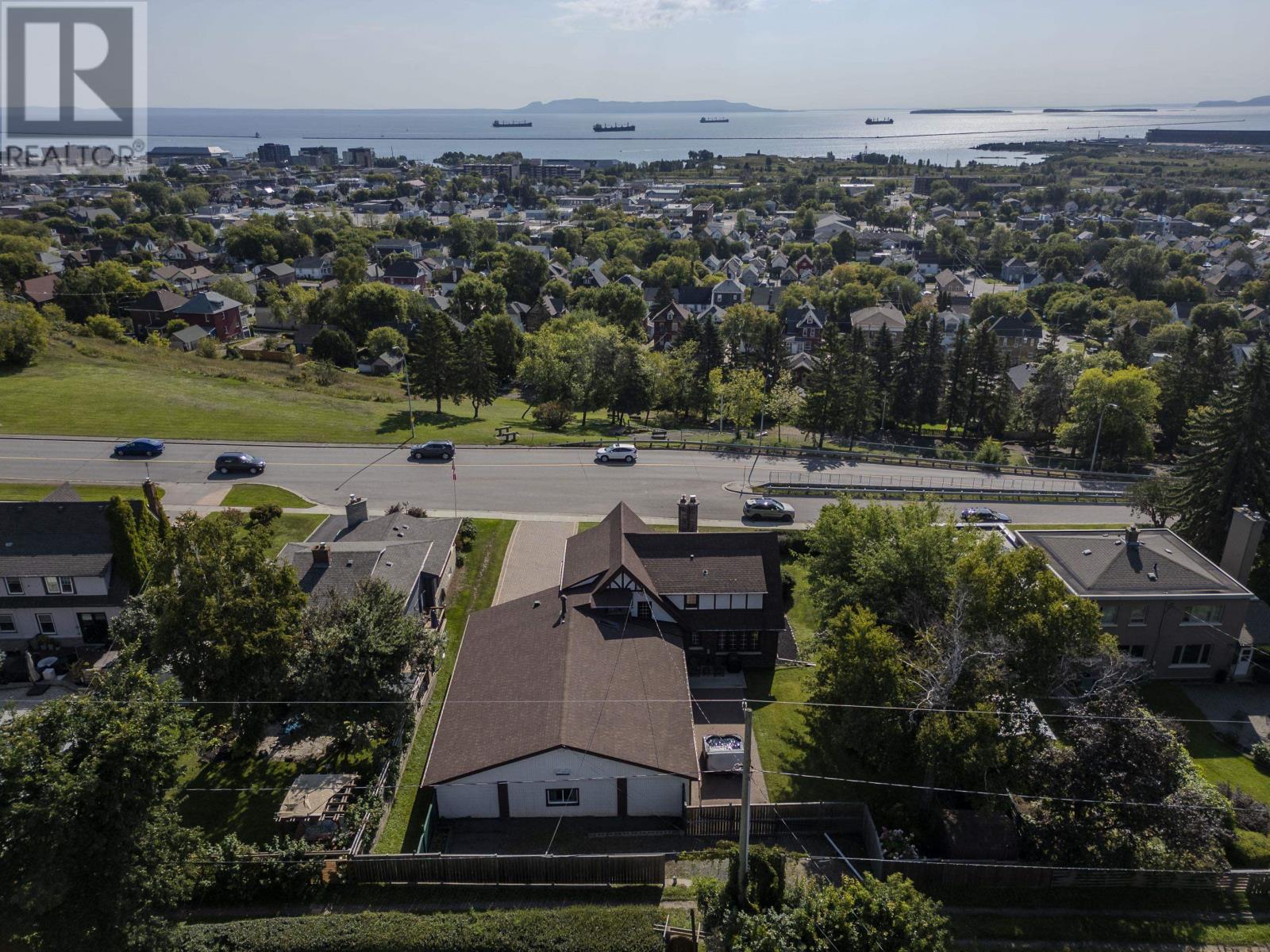 Elite address with a view of Lake Superior! Discover this enchanting,4-bedroom, 2-bath residence located in prestigious Mariday Park. Featuring a formal dining room showcasing spectacular carpentry, stunning hardwood floors and authentic French doors. Enter into the heartwarming living room with plenty of windows, sunshine and warmth, this home offers an exquisite blend of elegance and comfort. From the bright kitchen, to the main floor sunroom and extra large family rm, there is plenty of space for everyone. The landscaped, estate sized lot, 100x140, allows for an abundance of parking, gardening and entertaining family and friends. The property includes a spacious, attached garage with workshop area. Best of all is the discerning address with a one of a kind view of beautiful Lake Superior! Pride of ownership is evident, and now it can be all yours! (id:64974)