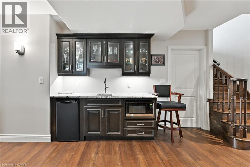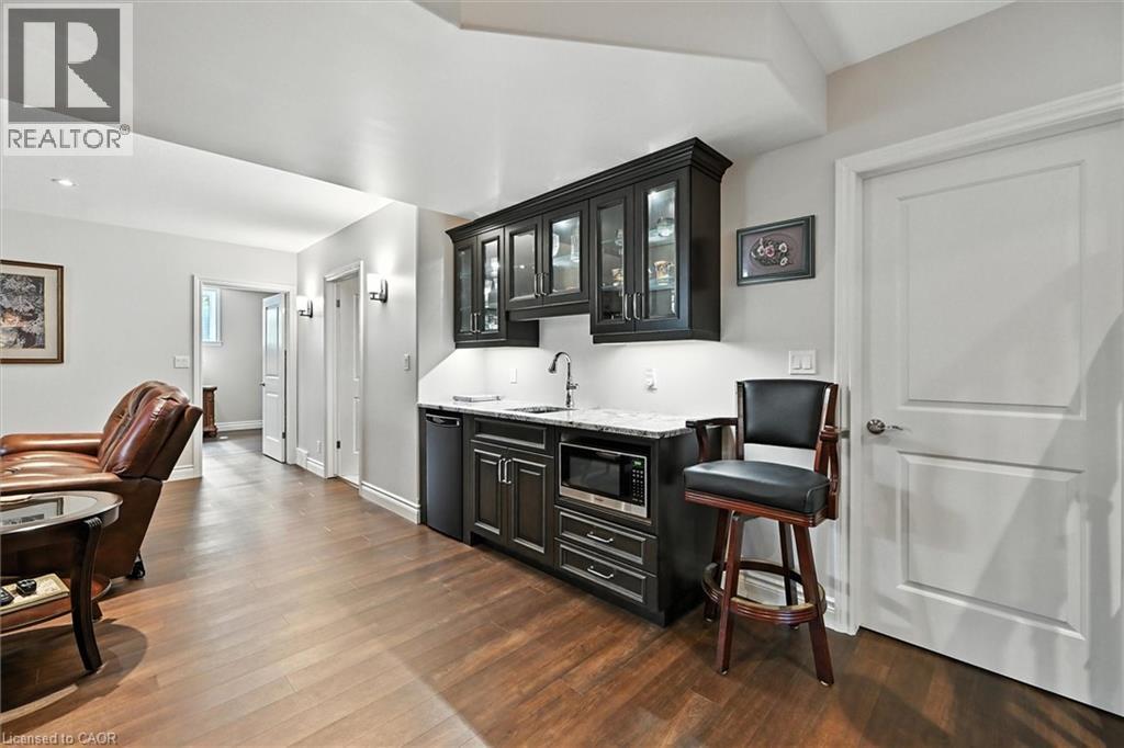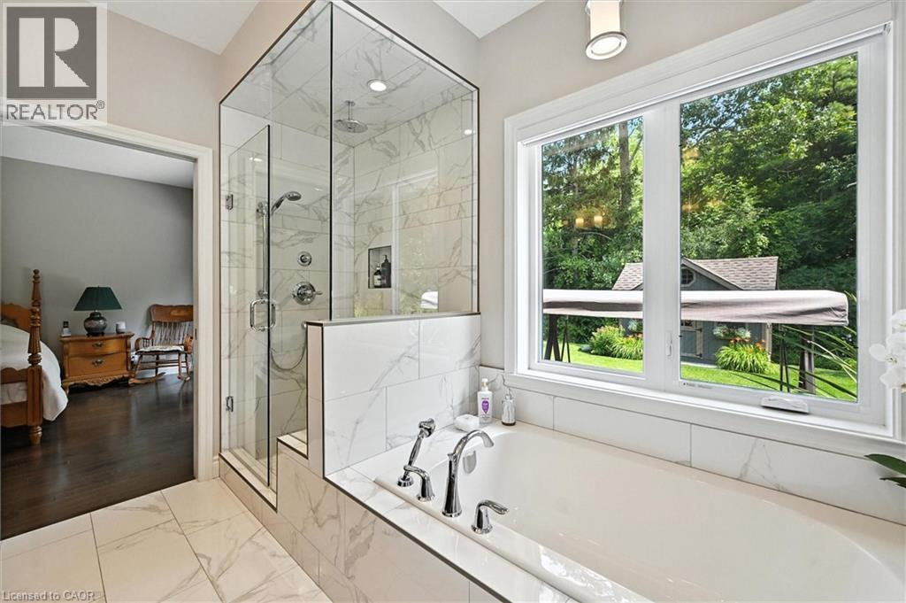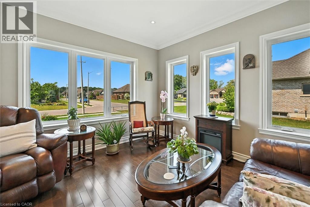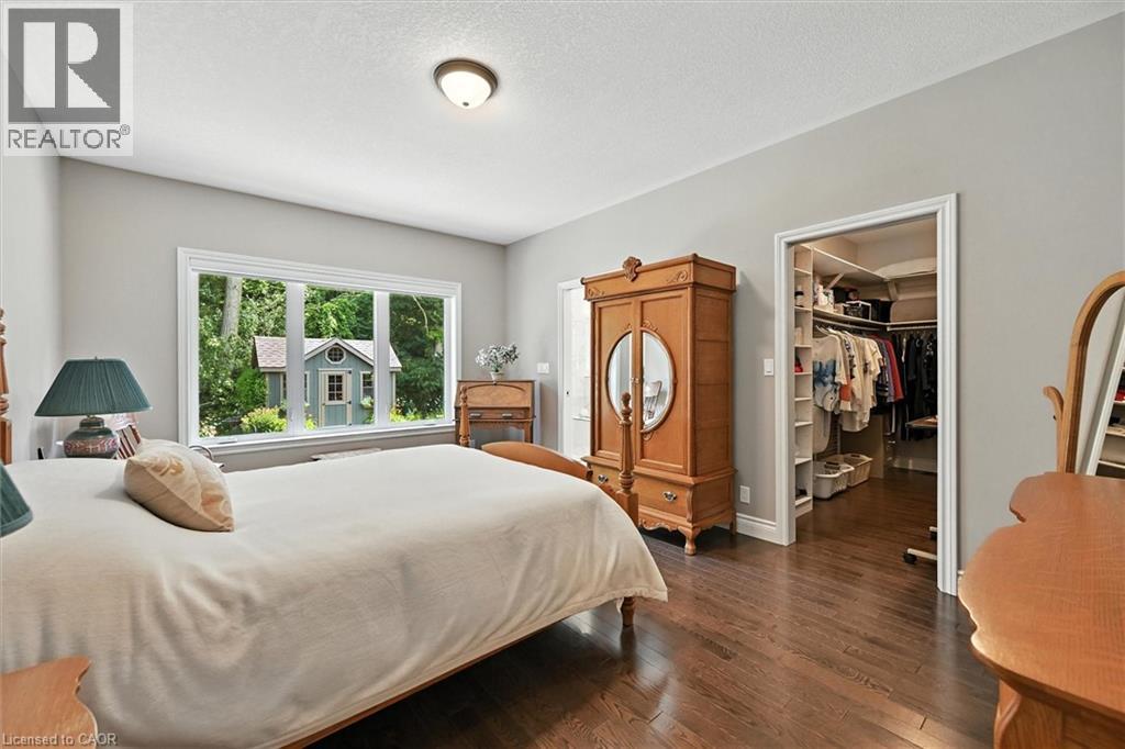 Welcome to this beautifully designed bungalow, perfectly situated on a highly sought-after 65’ x 130’ wooded lot, offering exceptional privacy and natural beauty. Thoughtfully upgraded throughout, The upscale kitchen and bathrooms feature luxurious granite countertops, providing both style and durability. Two cozy gas fireplaces add warmth and character, while rich hardwood floors bring timeless charm to the main living spaces. Expansive windows fill the home with natural light, creating a bright, uplifting atmosphere in every room. An oversized garage offers ample parking and storage, and a built-in sprinkler system ensures the landscaped yard stays lush and beautiful with ease. The fully finished basement (8’4” ceilings) offers versatile living space with a brick gas fireplace, two bedrooms, a wet bar with built-in cabinetry, a three-piece bathroom, and additional large windows. Move-in ready and meticulously maintained, this home perfectly combines comfort, functionality, and elegance—set against the tranquil backdrop of a private, wooded property. (id:64974)