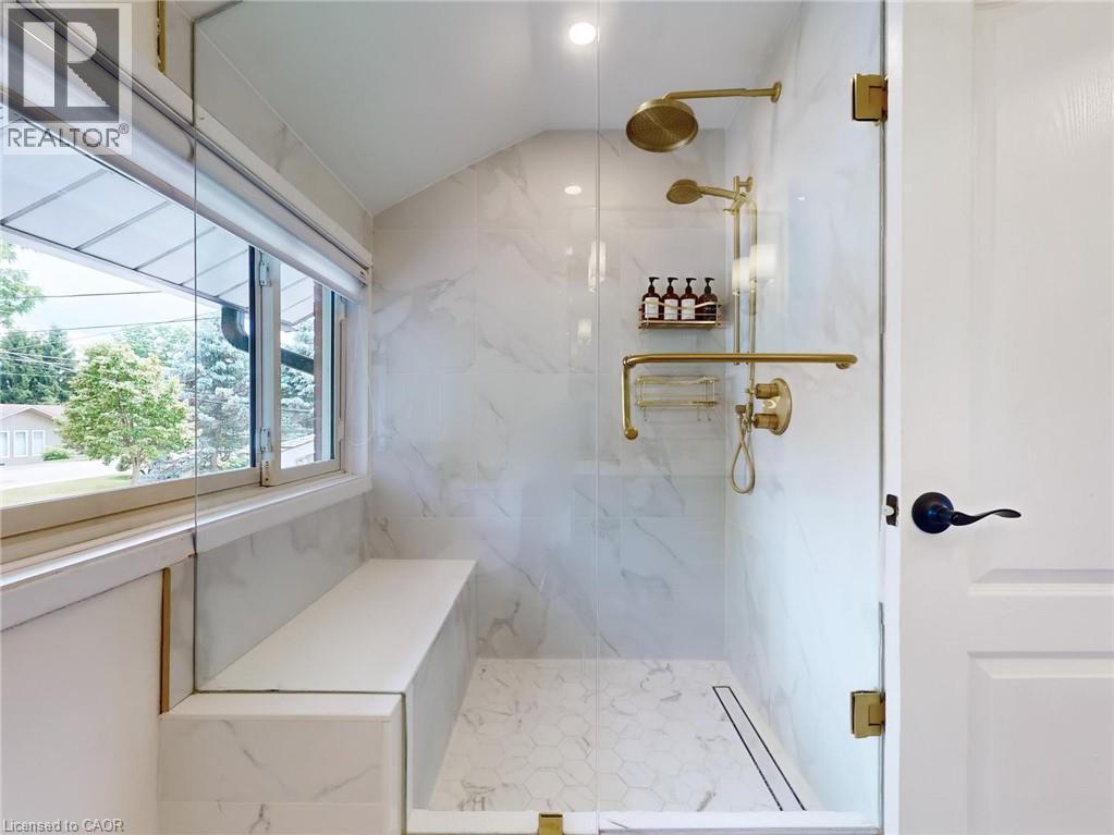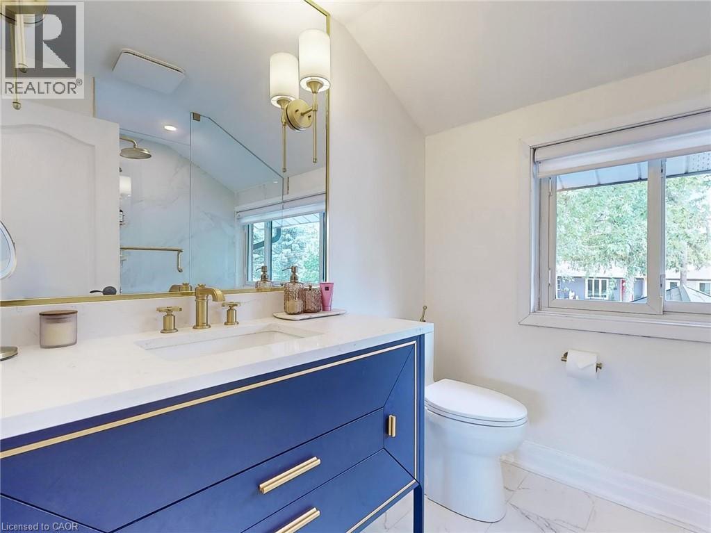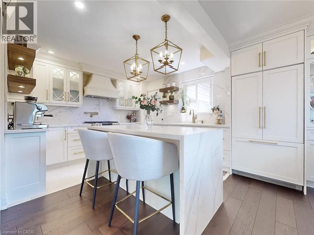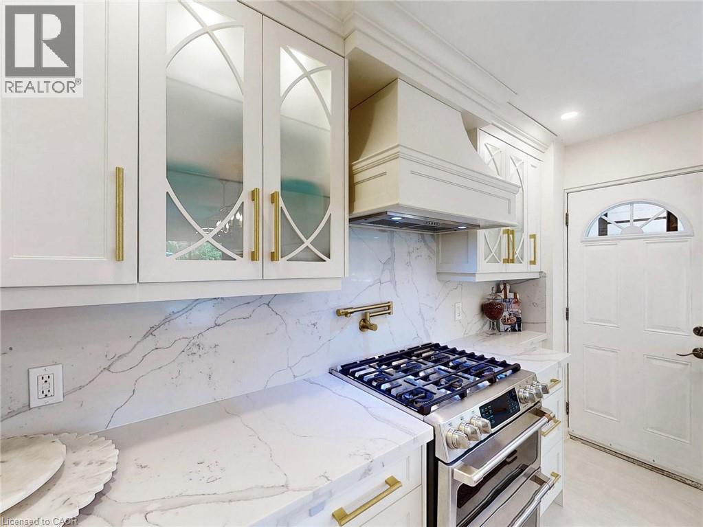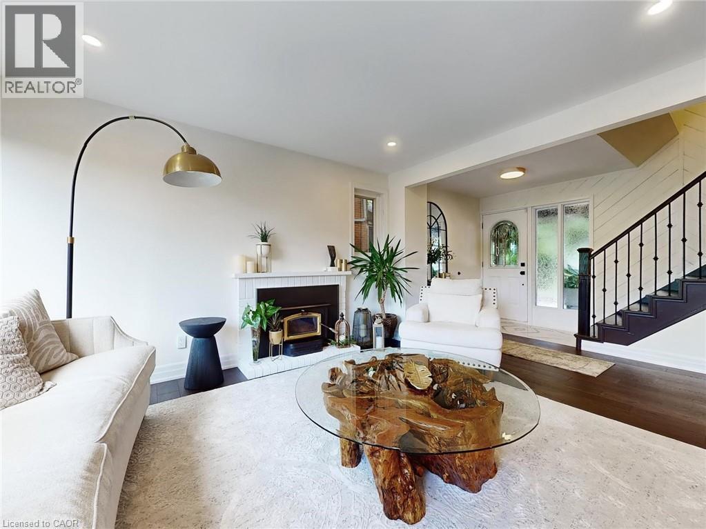 All the charm of Dundas valley awaits you in this unique 3 bed, 4 bath home. Large covered front porch w/garden seating area, 5 car driveway w/carport & shed. Open concept main floor has tons of natural light & huge windows showcasing escapement views. Here you'll find a must-see gourmet eat-in kitchen featuring a gas stove with double oven & Wi-Fi chef connect, waterfall quartz island, Fisher & Paykel dishwasher & built-in fridge, adjoining a cozy living room with fireplace. Upstairs has 3 bedrooms with a 4pc bath. Master has its own 3pc Ensuite bathroom & walk-in closet. Basement has a large rec area w/gas fireplace, 3pc bath and cedar lined hot tub room. Extremely private back yard with large stone patio. Steel roof in 2019 w/ 50yr transferable warranty, furnace, hot water heater & attic insulation all replaced in 2019. Minutes walk to Historic downtown (id:64974)