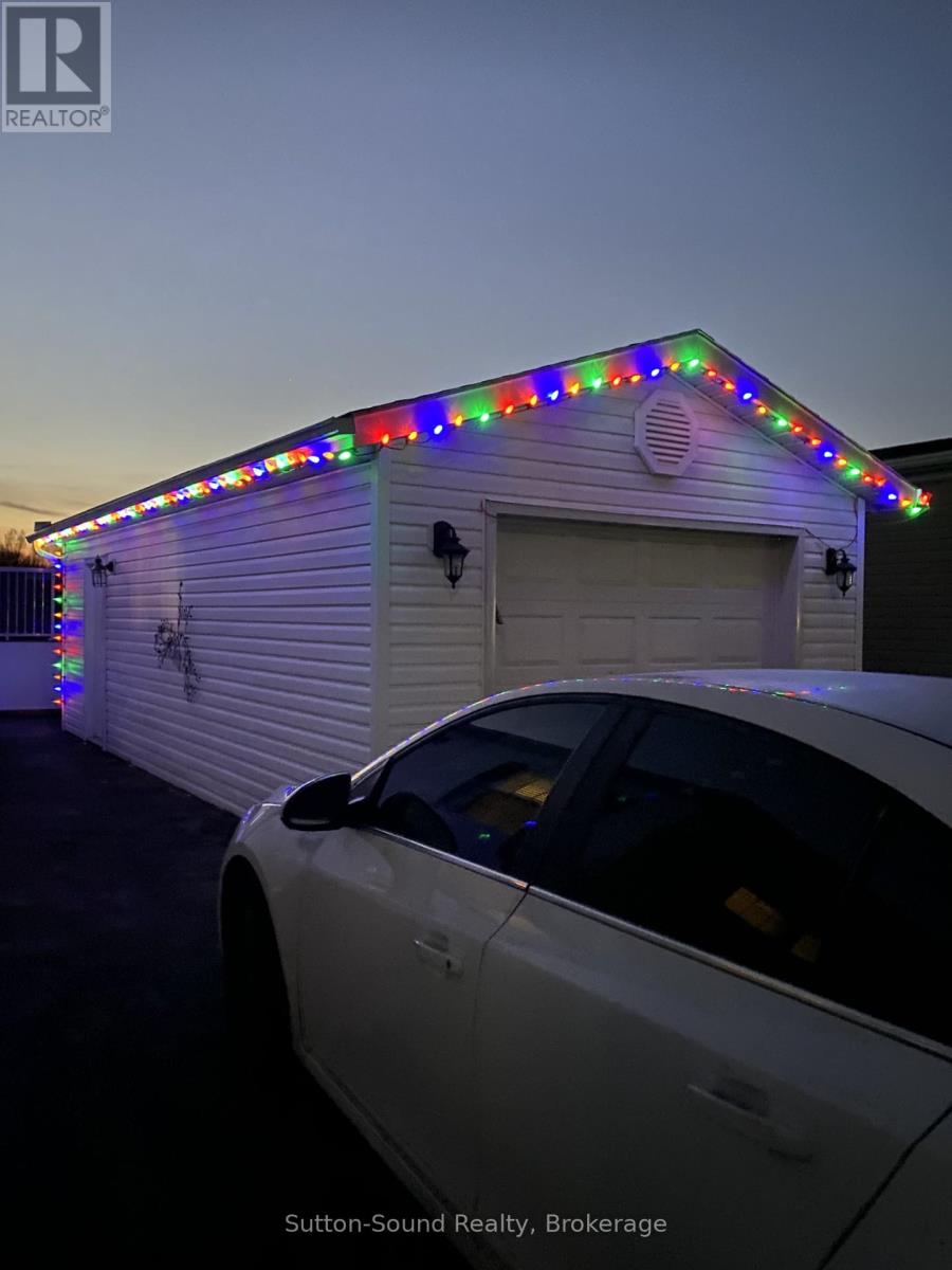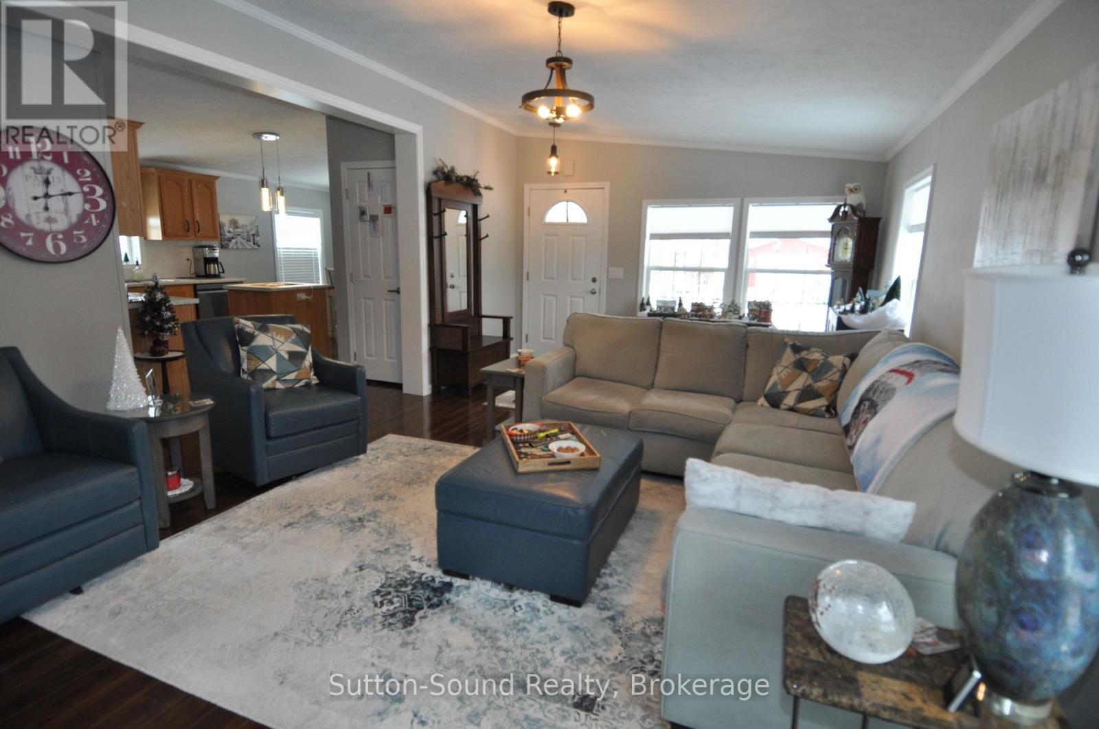 Welcome to 144 Rosewood Drive in the friendly and sought-after North Park Estates, a welcoming community for all offering comfort, convenience, and a relaxed lifestyle. This well-maintained, freshly painted North Park Model bungalow features bright, one-level living with two bedrooms, large closets, and two bathrooms. The open-concept layout is filled with natural light and includes a spacious living room and dining area ideally positioned to enjoy morning sunrises. The large kitchen offers new countertops and backsplash, an island, generous cabinetry, a cozy eating area, a pantry, and all appliances less than two years old, furnace New November 2025, making everyday living both easy and efficient. The generously sized primary bedroom includes a new 3-piece ensuite with a walk-in shower, while a second bedroom, full bath, and newly renovated main-floor laundry room complete the interior. Outside, enjoy the covered composite front porch surrounded by perennial gardens or relax on the new side deck with railing and peaceful open views, perfect for sunsets, birds, and butterflies. The detached, extra-wide garage features a concrete floor and offers both front and rear access. Additional highlights include a paved driveway, natural gas BBQ hookup, central air conditioning, owned water softener, and economical utilities. Residents own their home and lease the lot - no land transfer tax, with park-maintained roads plus water and septic services. Just minutes from Owen Sound with easy access to Georgian Bay and Lake Huron, North Park Estates continues to be a popular choice for people seeking community, comfort, and carefree living. (id:64974)