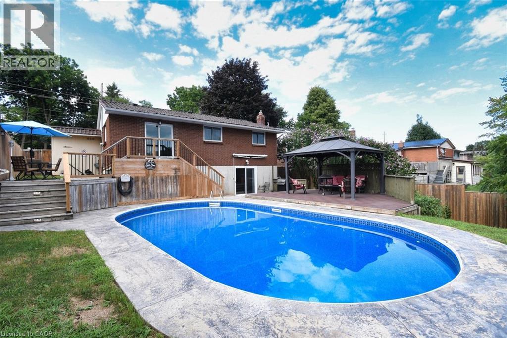 In search of your own backyard oasis? Well you've found it! This stunning brick bungalow boasts a kitchen walkout to an elevated deck, and a basement walkout to a breathtaking in-ground pool and entertainment patio/gazebo ideal for this scorcher of a summer! From your living room look across to the beauty of the Norfolk Golf and Country Club, with an open concept to the updated kitchen, that looks out to the multi tiered deck and backyard. New updates and renovations providing tons of living space for the growing family or those who love to be the lynchpin of family and friends' get-togethers. Create the ideal den for family nights in the oversized rec room downstairs. Extremely convenient location to any amenities you could need downtown. Storage shed providing extra room for your lawnmower, motorcycle or any thing you need! The pool heater, liner, pump and surrounding concrete all updated in 2017. A quick walk to a wonderful walking trail in Simcoe. This home is the next step, or a very magnificent beginning to your real estate journey! (id:64974)