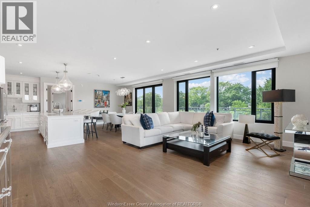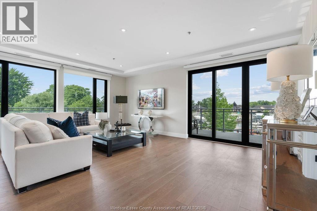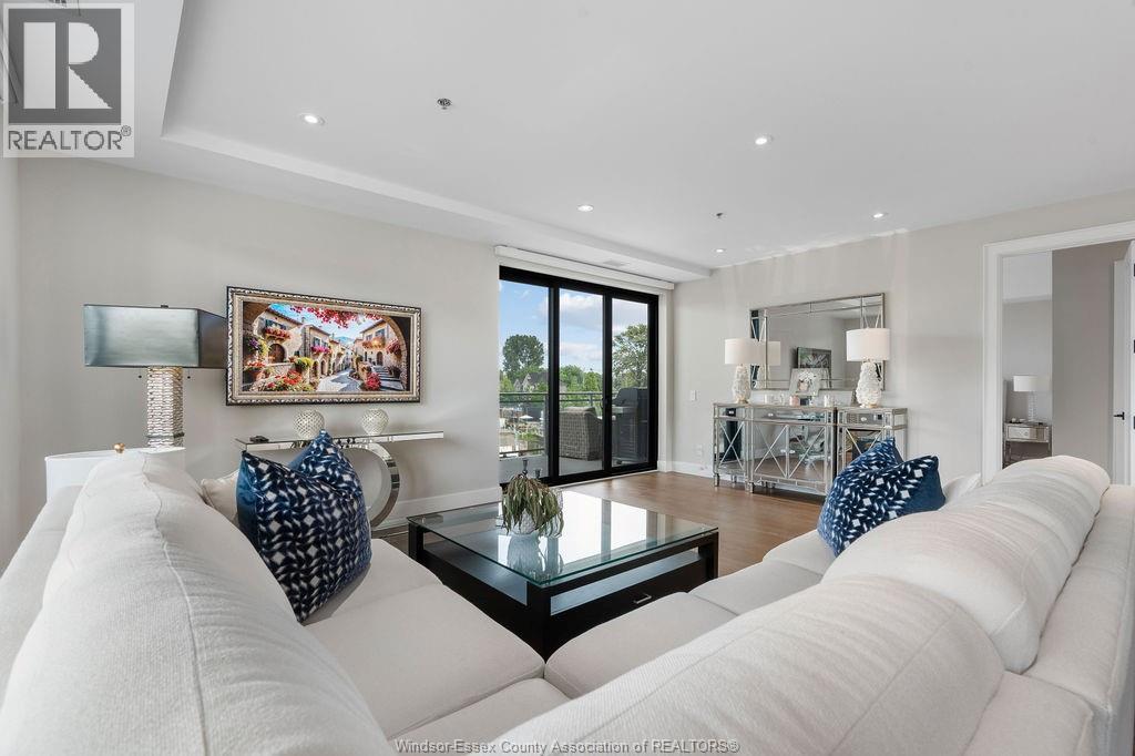 Experience the pinnacle of luxury in this impeccably designed 2-bedroom + den, 3-bath corner suite offering 1,928 sq. ft. of refined living space and a 661 sq. ft. wraparound balcony with stunning north and east water views. The open-concept layout flows into a custom chef’s kitchen with a large island and premium built-in appliances—ideal for daily living and entertaining. The primary suite features a walk-in closet with a California Closets system and a spa-inspired ensuite. The den, complete with electric fireplace, is perfect for a home office or reading nook. Additional features include two underground parking spaces, and a storage locker. Enjoy toptier amenities like a state-of-the-art fitness centre and a stylish residents’ lounge/party room. Located in Tecumseh’s prestigious Harbour Club, this waterfront suite delivers unmatched lifestyle, luxury, and location. Contact the listing agent today to schedule your private tour. (id:64974)