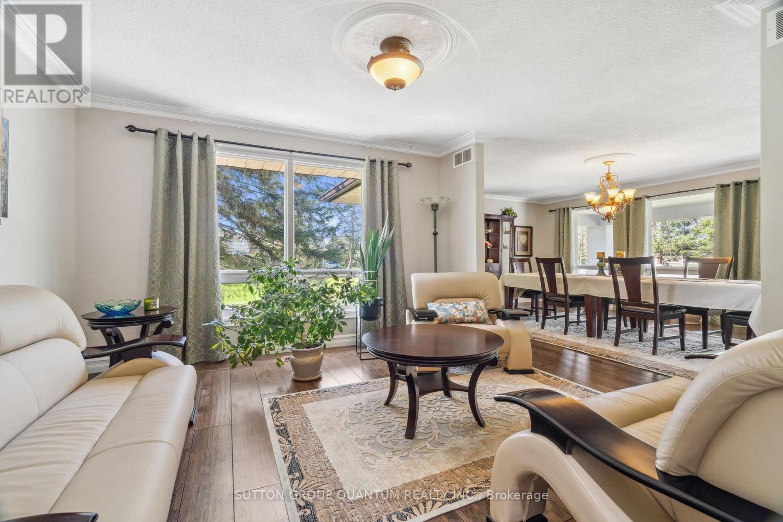 Welcome to true Caledon estate living. Set on a stunning 1-acre lot with parking for 11 vehicles, this fully updated all-brick 5-level backsplit offers approximately 4,500 sq ft of luxurious living space, multiple entrances, and a private backyard oasis backing onto picturesque farmland.14432 Innis Lake Road is a bright and expansive home thoughtfully designed for large or multigenerational families. The main level features an elegant living and dining area ideal for entertaining, flowing seamlessly into a chef's kitchen complete with an oversized island and walkout to a spacious deck. The upper level boasts three generously sized bedrooms, including a primary retreat with private balcony, along with a spa-inspired 5-piece bath featuring a freestanding tub and curbless shower.The walkout level offers a cozy family room with a wood-burning fireplace, an additional bedroom, a modern 3-piece bath, backyard access, and a convenient private side entrance. The two-level basement is an entertainer's dream, showcasing a wet bar, billiards lounge, second fireplace, recreation space, 2-piece bath, second kitchen rough-in, and a separate entrance.Outside, enjoy exceptional amenities including a triple-car garage, expansive 11-car driveway, multiple decks, gazebo, koi pond, and a versatile workshop/coop. Recent upgrades to the roof, furnace, and AC provide peace of mind. Located in sought-after rural Caledon, this remarkable estate offers the perfect blend of luxury, functionality, and privacy. A truly must-see property. (id:64974)