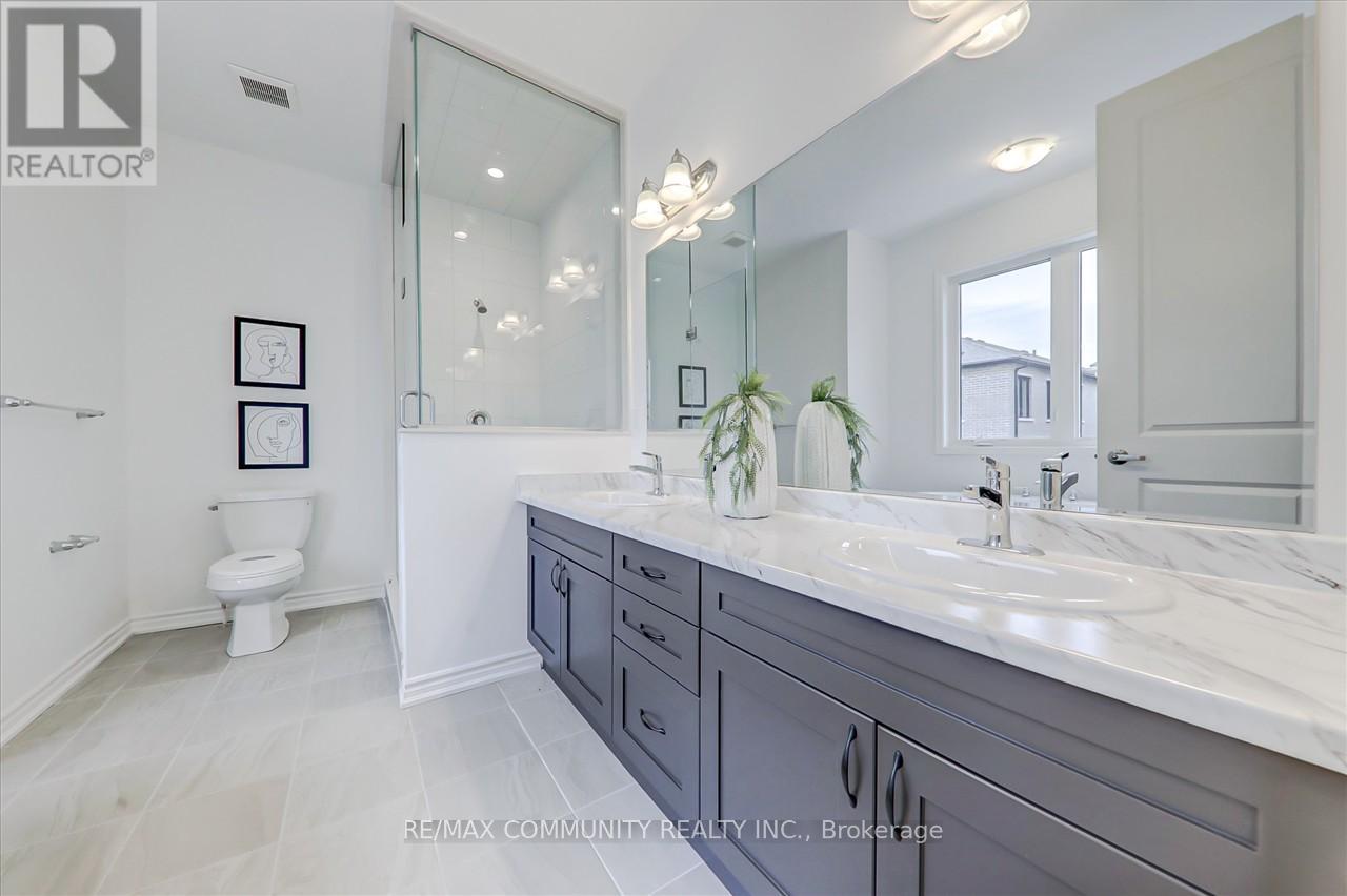 Nestled in the heart of Pickering's most desirable neighborhood, this impeccably upgraded detached home offers a rare blend of modern luxury and functional design. Boasting a double car garage, soaring 9-foot ceilings across all three levels, and premium finishes, this residence is a true standout in the Seaton Mulberry community. Step inside to discover a sunlit main floor designed for effortless living and entertaining. The open-concept layout features a spacious dining area flowing seamlessly into a generous great room, anchored by a sleek electric fireplace and overlooking a serene, private backyard. Culinary enthusiasts will adore the oversized eat-in kitchen, complete with upgraded quartz countertops, while the abundance of natural light and airy 9-foot ceilings enhance the home's inviting ambiance. Upstairs, the second floor impresses with continued 9-foot ceilings and a luxurious primary suite. Retreat to a bedroom adorned with a raised smooth box ceiling, a walk-in closet, and a lavish 4-piece ensuite featuring a standalone shower and deep-soaking oasis tub. Two additional bedrooms, a versatile family room, and three full bathrooms-including a main bath with a frameless glass "super shower"-ensure comfort for family and guests alike. The raised basement adds unparalleled versatility, with 9-foot ceilings, large windows, and a separate entrance. This bright, welcoming space is ideal for an in-law suite, rental unit, or recreational haven. Combining prime location, sophisticated design, and move-in-ready perfection, this home is a rare opportunity in Pickering's sought-after enclave. Don't wait-schedule your private tour today and experience luxury living at its finest! (id:64974)