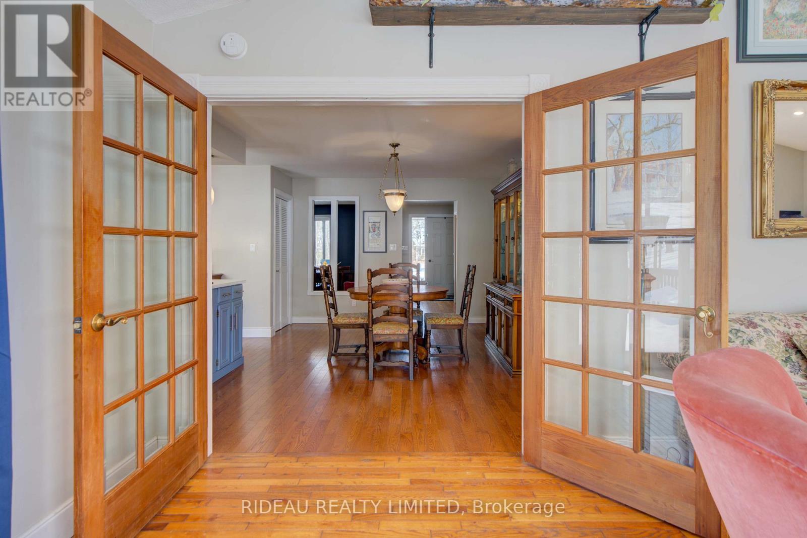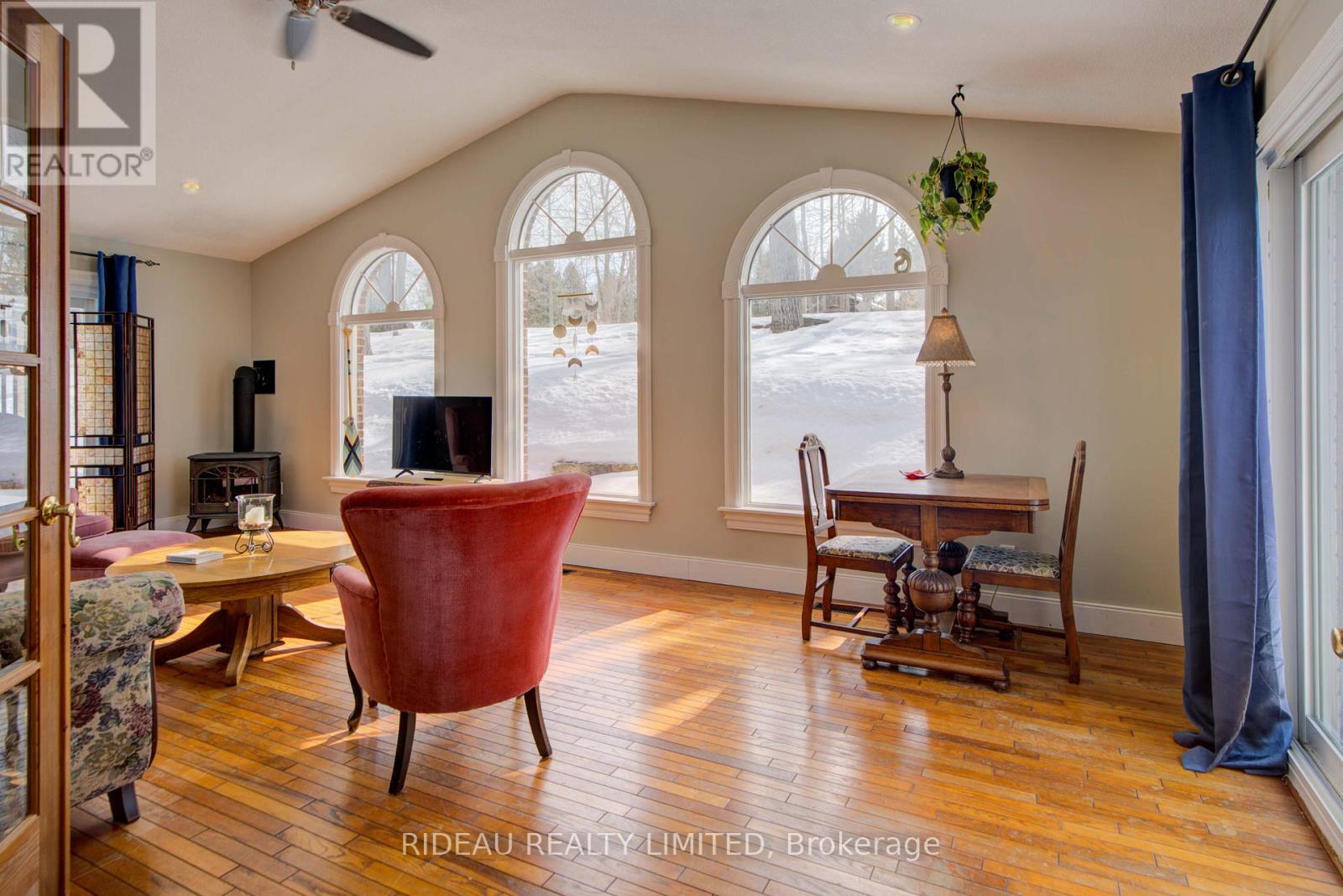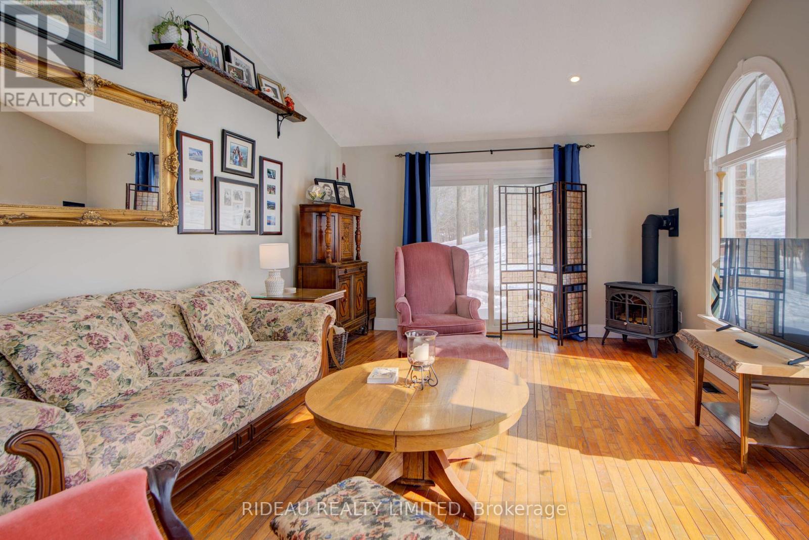 Welcome to 1445 Rickards Road. Homes like this don't come around often. Set on just under an acre of beautifully treed land, this rambling ranch-style bungalow offers approximately 1924 sq ft of main-floor living space, plus a bright finished basement, delivering the perfect blend of comfort, space, and functionality. Thoughtfully designed, the home features three spacious bedrooms and two full bathrooms. The inviting living room is filled with natural light from a beautiful bay window and anchored by a cozy wood-burning fireplace, creating a warm and welcoming space to unwind. It flows seamlessly into the kitchen and dining area, offering an effortless layout for everyday living and entertaining.The kitchen showcases refinished oak cabinetry (2023) and stainless steel appliances. At the back of the home, the family room truly stands out. Vaulted ceilings and floor-to-ceiling windows flood the space with natural light, while a propane fireplace adds warmth and character... a space designed for quiet mornings, relaxed evenings, and everything in between. The finished basement provides approximately 1747ft of additional bright and versatile space, ideal for a family room, home office, gym, or guest retreat. Outside, the two-car attached garage and garden shed provide practical storage and convenience. Surrounded by mature maple trees, the property offers privacy, shade, and a peaceful country setting that feels like a true escape. Ideally located between Inverary and Sydenham on a quiet dead-end road, it delivers the serenity of rural living while remaining just 15 minutes to Kingston and Highway 401. If you've been dreaming of leaving the hustle behind without sacrificing convenience and a home with space, warmth, and a peaceful setting... This is a property that feels right from the moment you arrive. (id:64974)