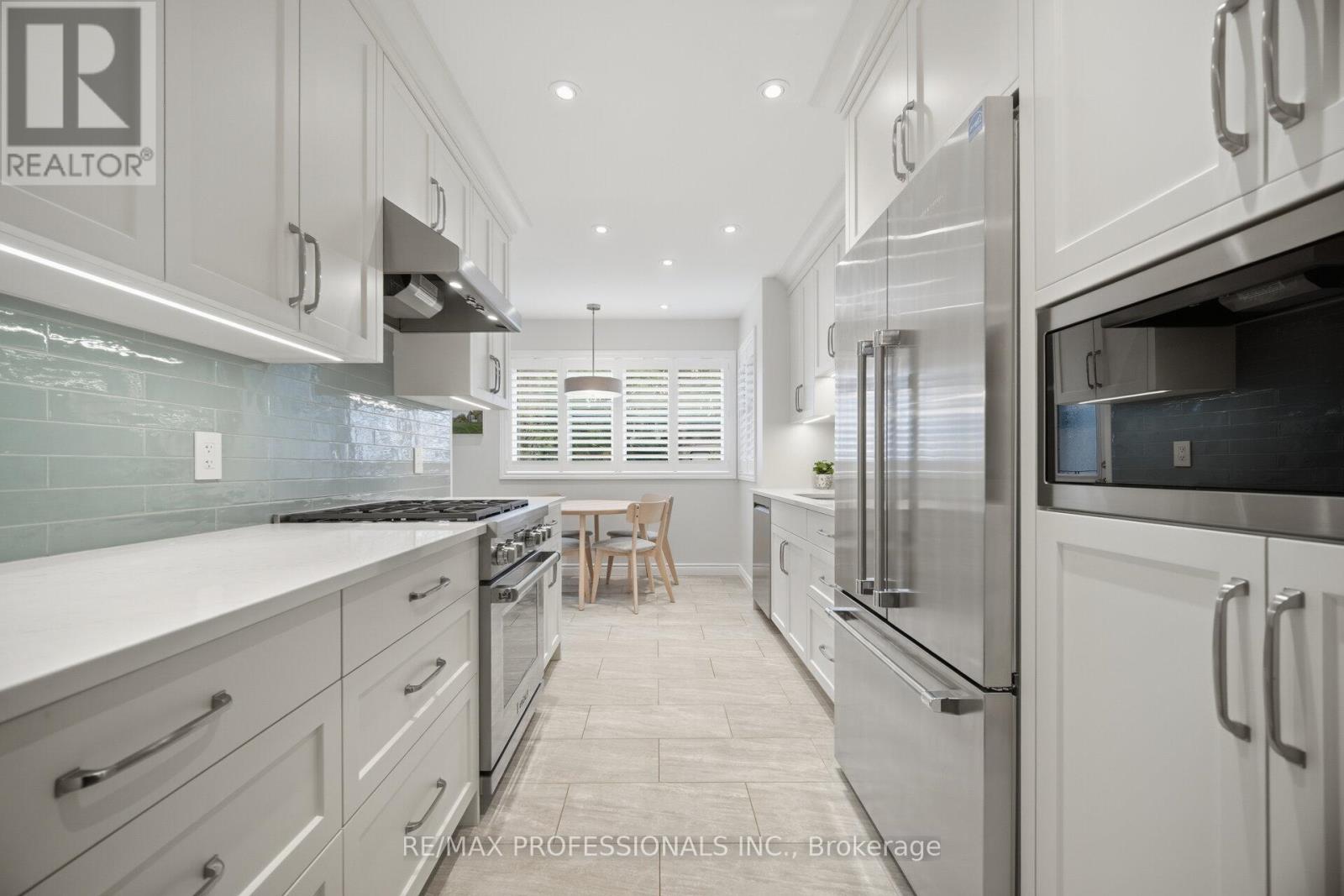 Orchard Heights! Perfect home to accommodate the growing family. Sun-filled & sitting on a large lot framed by towering trees and loads of greenery. A highly sought-after mature neighbourhood on the Toronto/Mississauga border. A small enclave of approx. 430 homes tucked in behind the prestigious Toronto Golf Club. Each floor consists of 1396 sqft. of living space. Meticulously maintained. The main floor boasts pristine hardwood floors, an eat-in kitchen - a chef's sanctuary with custom-built cabinetry, quartz counters, porcelain floor and a Wolf gas range & Fisher & Paykel fridge. The living room has a huge bow window & a gas F/P. The bathroom - the ultimate escape with a sleek soaker tub, frameless glass partition, and hexagon-patterned heated porcelain floor. All three bedrooms are well-proportioned with closets. The lower level has a large rec room that runs the depth of the house, w/floor-to-ceiling brick F/P and wood-burning stove insert. There is a 3 pc bathroom, a hobby/4th bedroom, workshop, laundry room, furnace room and even a cold storage room. The backyard is private with a deck, patio and covered area behind the garage. The property is lush with trees: oak, Japanese maple, beech, locust, spruce and cedars. Orchard Heights has its very own parks - Ron Searle Park that includes a playground for the kids, tennis courts and green space to run around. Orchard Heights Park is located at the Ravine/Etobicoke Creek for nature enthusiasts and dog walkers. This wonderful neighbourhood is supported by a Homeowners Association and an active Neighbourhood Watch Program. Conveniently close to Mississauga Transit, Long Branch GO Train, No Frills, Applewood Plaza (Longo's/Shoppers Drug Mart/Cobb's Bakery/Home Hardware). Schools, Sherway Gardens, Outlet Stores & Trillium Health Centre. A GREAT PLACE TO CALL HOME! (id:64974)