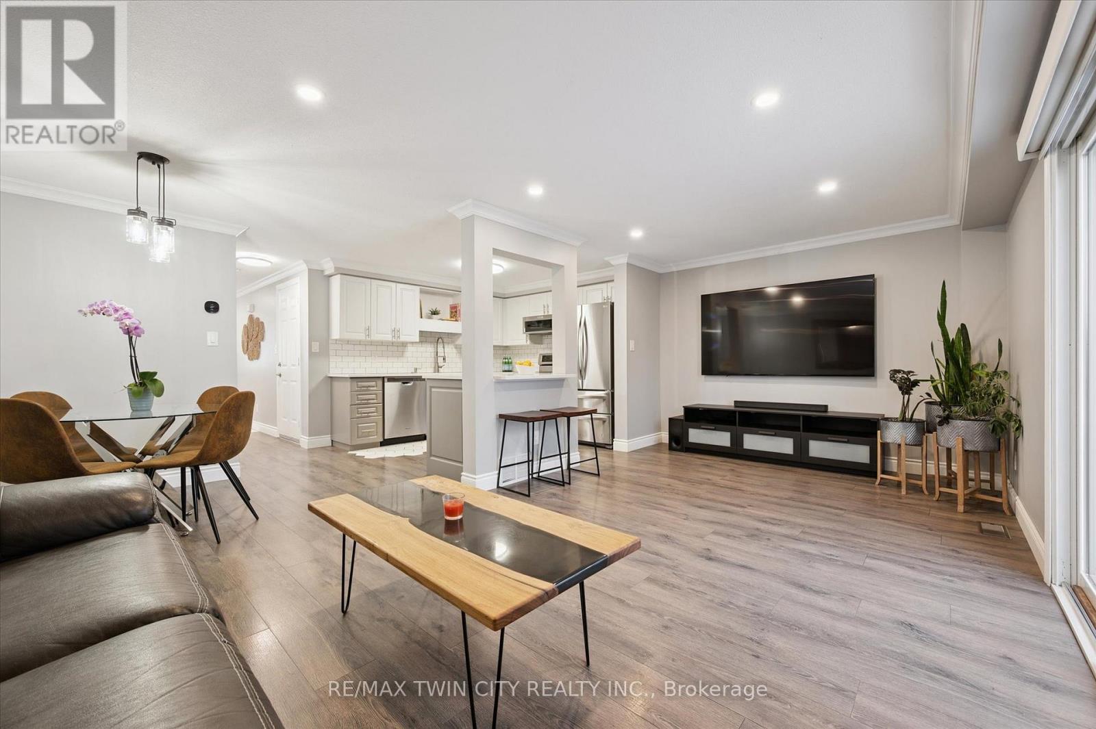 Welcome to this fully updated 3-bedroom, 3-bathroom townhouse that perfectly blends modern upgrades with comfortable living. Thoughtfully renovated throughout, this home offers stylish finishes, functional spaces, and near carpet-free living-ideal for today's lifestyle. The main floor features elegant crown molding and an open, bright layout designed for both everyday living and entertaining. The beautifully renovated kitchen (2021) showcases updated flooring, a stylish backsplash, modern cabinetry, and a breakfast bar that provides additional prep space and seating. From the living room, step outside to enjoy the private deck with no rear neighbours (added in 2020)-perfect for relaxing or hosting summer gatherings. Upstairs, the second floor was extensively updated in 2020, including new flooring, trim, baseboards, and a refreshed bathroom, creating a clean and contemporary feel throughout the bedroom level. The fully finished basement (2025) adds valuable living space and includes a brand-new bathroom along with Rockwool soundproof insulation, making it ideal for a media room, home office, or guest retreat. Additional upgrades include a stamped concrete walkway (2024) that enhances the home's curb appeal. This move-in-ready townhouse combines modern updates, thoughtful improvements, and comfortable living spaces-making it an excellent place to call home. Just minutes from the expressway and all amenities this home offers the perfect balance of style, comfort, and convenience. Don't miss your chance to call this place home, book your showing today! (id:64974)