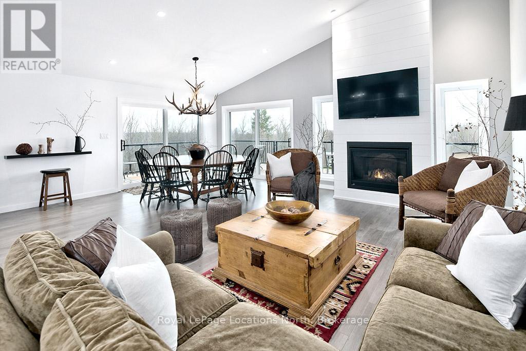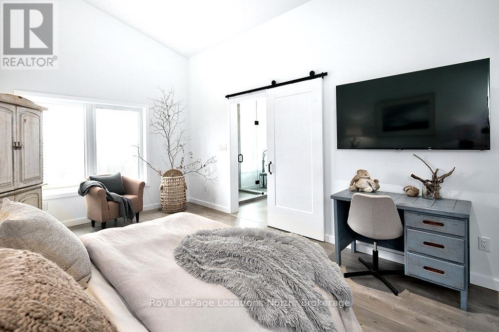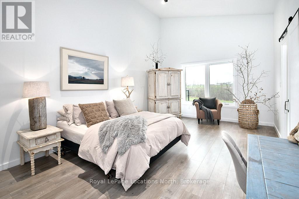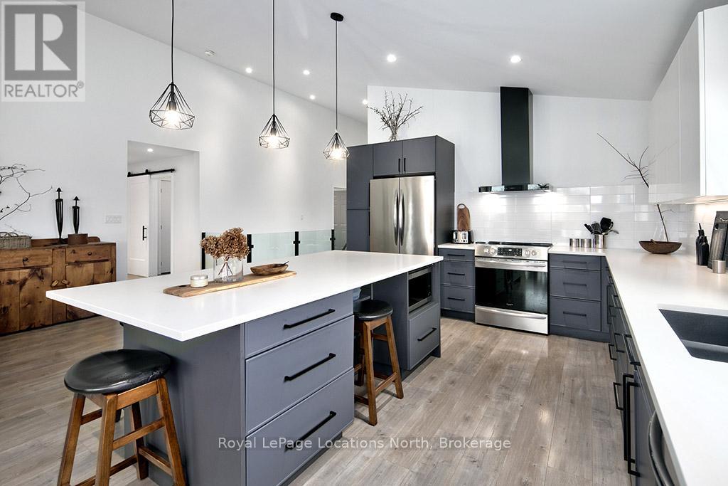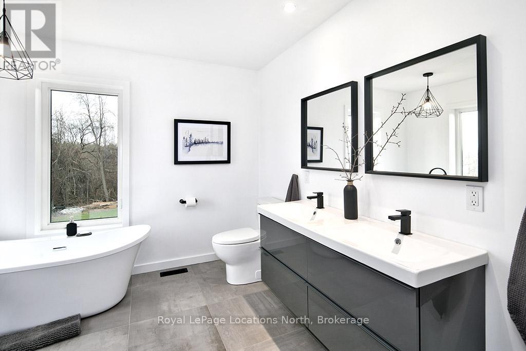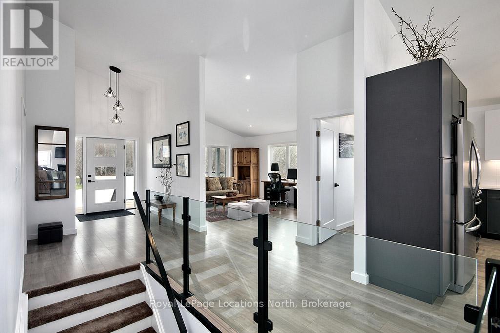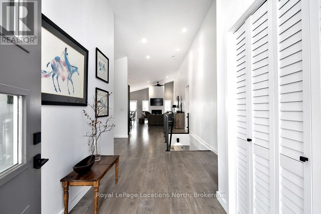 Welcome to 145 St. Vincent Crescent, a custom-built raised bungalow nestled in the heart of Meaford's serene countryside on a picturesque lot bordered by a tranquil creek. This home offers a seamless blend of privacy and functionality, defined by expansive windows that capture the full arc of the day from quiet sunrises to breathtaking, magical sunsets. The main level features large principal rooms that flow onto a stunning wrap-around patio, providing the ultimate stage for entertaining or taking in the surrounding landscape. The upper level includes three spacious bedrooms and two 5-piece bathrooms, highlighted by a serene primary ensuite. Downstairs, the fully finished lower level provides outstanding versatility with two additional bedrooms, two full bathrooms, and two separate walk-outs, making it an ideal setup for an in-law suite, guest quarters, or potential rental income. Complete with a double car garage and ample storage, this peaceful retreat captures the essence of rural living while remaining just minutes from the town of Meaford, Georgian Bay, and local amenities, offering a one-of-a-kind property with unmatched potential. (id:64974)