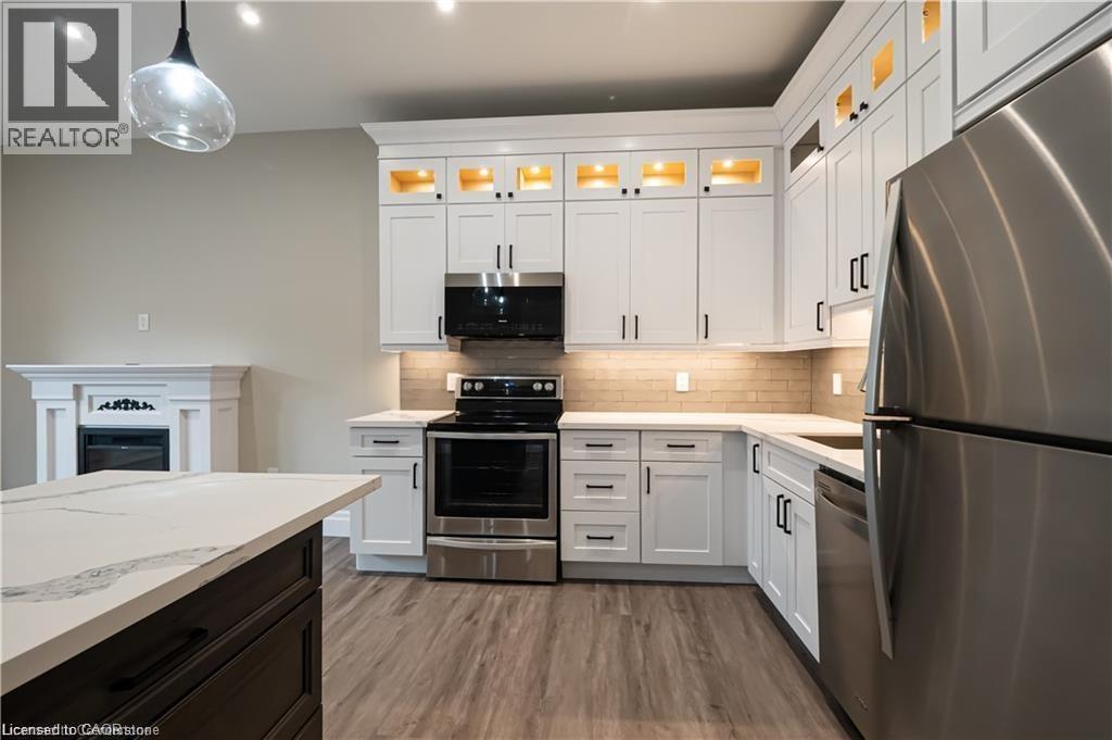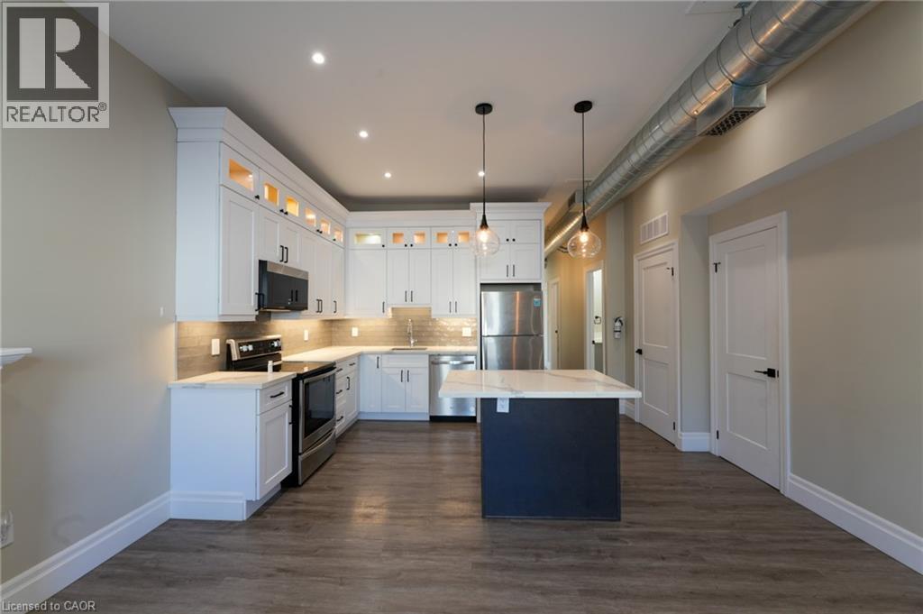 Stunning three bedroom apartment with two parking spaces included!! 145 Wellington Street North is located within walking distance to a wealth of amazing local coffee shops, grocery options, and King William's restaurant row. This thoughtfully configured space features an entertainers kitchen with quartz countertops, a sleek island, under cabinet lighting, and stainless steel appliances including a dishwasher. All three of the bedrooms are sizable, making this unit perfect for a small family, or professionals looking for a home office. Enjoy the convenience of in-suite laundry, the comfort of central air conditioning, and a quaint seating nook by the front window. Tenant to pay heat & hydro. Water is included in the rent price. (id:64974)