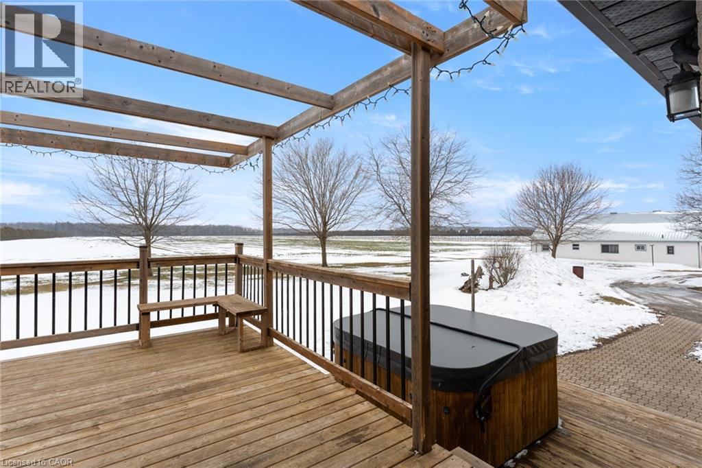 This ranch bungalow is a true escape, nestled against beautiful open farmland for ultimate peace and quiet. The updated kitchen features granite counters, a gas range, and custom cabinetry, flowing into a bright living area that walks out to a private deck. Relax in the serene backyard oasis, complete with a hot tub and scenic views. A massive finished lower level offers endless extra space. Move-in ready and perfectly peaceful. This is the one! (id:64974)