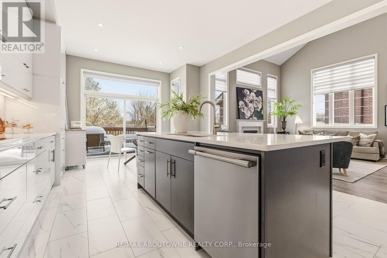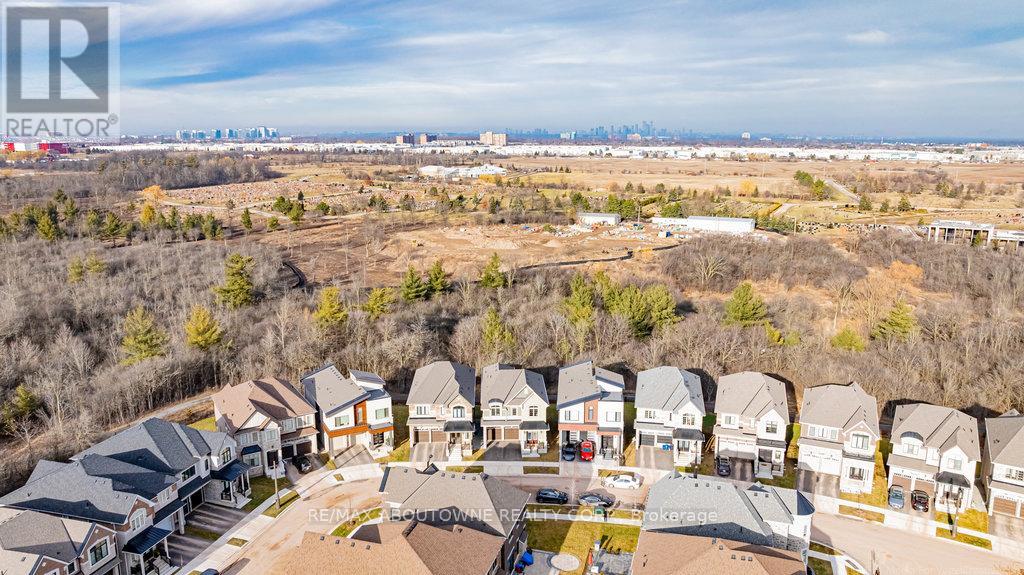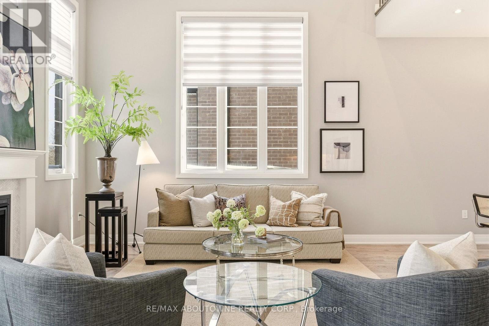 Welcome to 1456 Ford Strathy Cres, an exceptional Mattamy Winfield model situated on a premium ravine lot in Oakville's highly sought-after Upper Joshua Creek community. The seller invested an impressive $255,000 lot premium to secure this rare, private setting with no rear neighbours, creating a truly special backdrop for everyday living. Offering approximately 3,109 sq ft of beautifully finished space and over $150,000 in builder upgrades, this home is tastefully designed and completely move-in ready. Soaring 10' ceilings on the main level and 9' ceilings on the upper and lower levels enhance the home's bright, open feel. White oak engineered hardwood flows throughout, complemented by a vaulted great room ceiling, gas fireplace, triple-glazed windows, and an abundance of natural light with serene ravine views. The modern white kitchen is both stylish and functional, featuring quartz countertops, soft-close cabinetry with pot drawers, and an oversized island with breakfast bar-perfect for everyday living and entertaining. The open-concept great room and dining area provide an inviting space to gather, while the practical mudroom with inside garage access adds everyday convenience. Upstairs, the primary suite offers a tranquil retreat with tray ceiling, walk-in closet, and spa-inspired ensuite with freestanding soaker tub and glass-enclosed shower. Three additional generous bedrooms, two full bathrooms, a laundry room, and an open loft overlooking the great room complete the upper level. The unfinished walkout basement boasts 9' ceilings, oversized sliding doors, bathroom rough-in, and large storage-offering outstanding potential to customize your dream space. Located on a quiet crescent, close to parks, trails, shopping, dining, and major highways, this home blends luxury, privacy, and lifestyle in one remarkable offering. Welcome to your forever home! (id:64974)