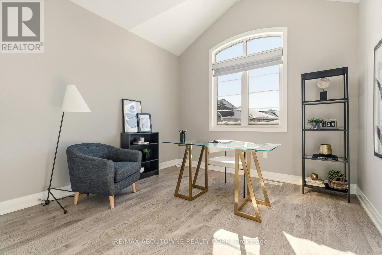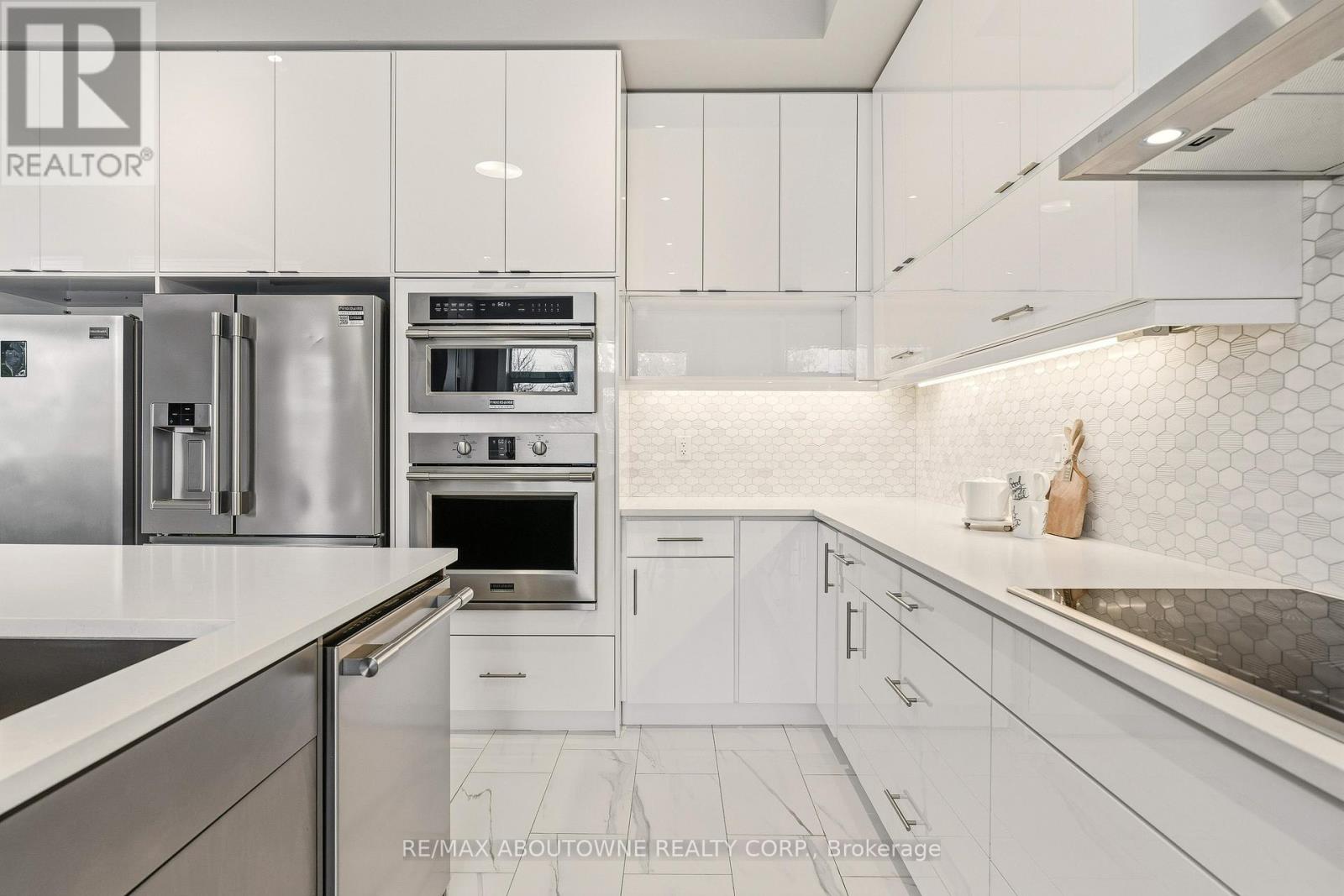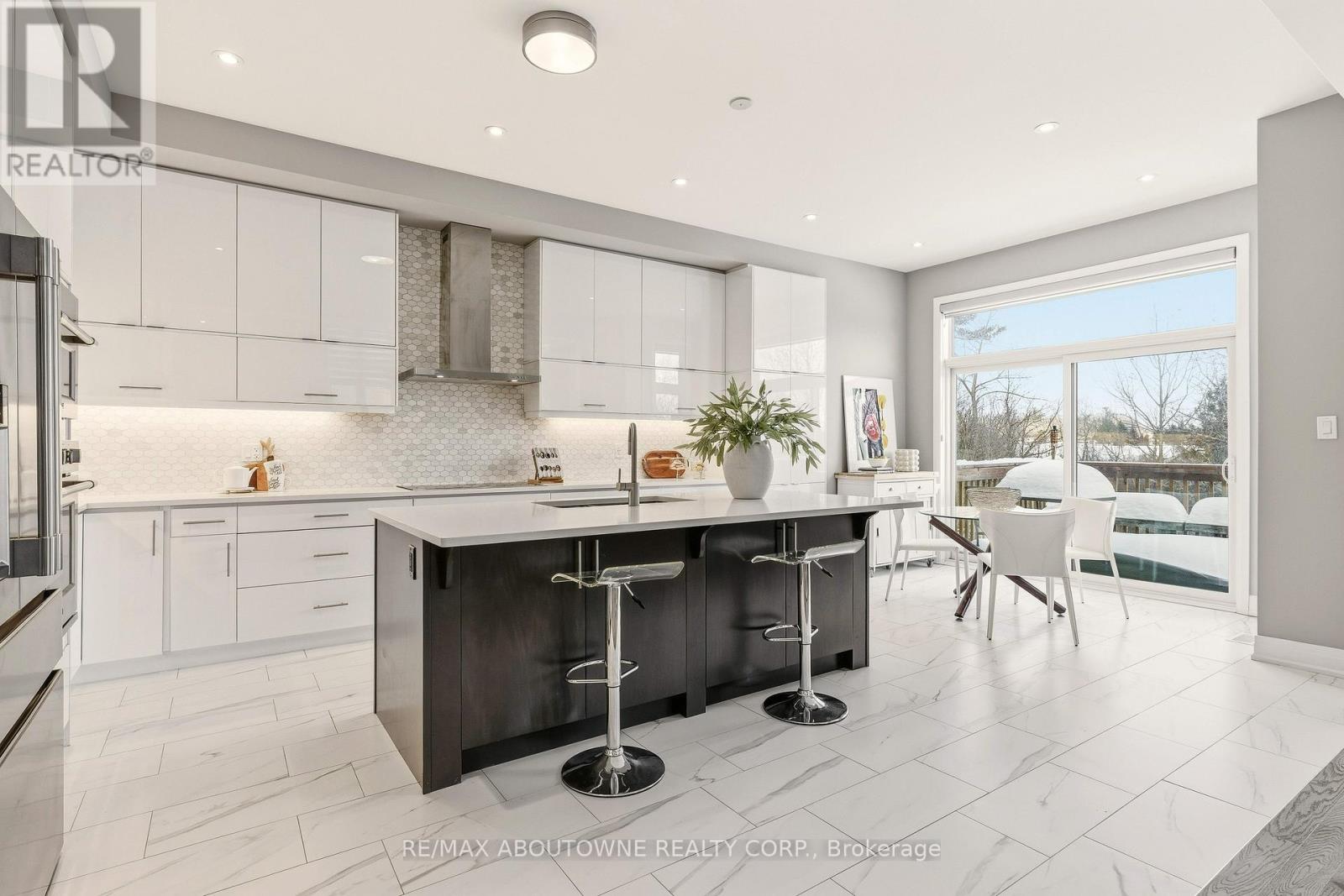 Welcome to 1456 Ford Strathy Cres, an exceptional Mattamy Winfield model situated on a premium ravine lot in Oakville's highly sought-after Upper Joshua Creek community. The seller invested an impressive $255,000 lot premium to secure this rare, private setting with no rear neighbours, creating a truly special backdrop for everyday living. Offering approximately 3,109 sq ft of beautifully finished space and over $150,000 in builder upgrades, this home is tastefully designed and completely move-in ready. Soaring 10' ceilings on the main level and 9' ceilings on the upper and lower levels enhance the home's bright, open feel. White oak engineered hardwood flows throughout, complemented by a vaulted great room ceiling, gas fireplace, triple-glazed windows, and an abundance of natural light with serene ravine views. The modern white kitchen is both stylish and functional, featuring quartz countertops, soft-close cabinetry with pot drawers, and an oversized island with breakfast bar-perfect for everyday living and entertaining. The open-concept great room and dining area provide an inviting space to gather, while the practical mudroom with inside garage access adds everyday convenience. Upstairs, the primary suite offers a tranquil retreat with tray ceiling, walk-in closet, and spa-inspired ensuite with freestanding soaker tub and glass-enclosed shower. Three additional generous bedrooms, two full bathrooms, a laundry room, and an open loft overlooking the great room complete the upper level. The unfinished walkout basement boasts 9' ceilings, oversized sliding doors, bathroom rough-in, and large storage-offering outstanding potential to customize your dream space. Located on a quiet crescent, close to parks, trails, shopping, dining, and major highways, this home blends luxury, privacy, and lifestyle in one remarkable offering. Welcome to your forever home! (id:64974)