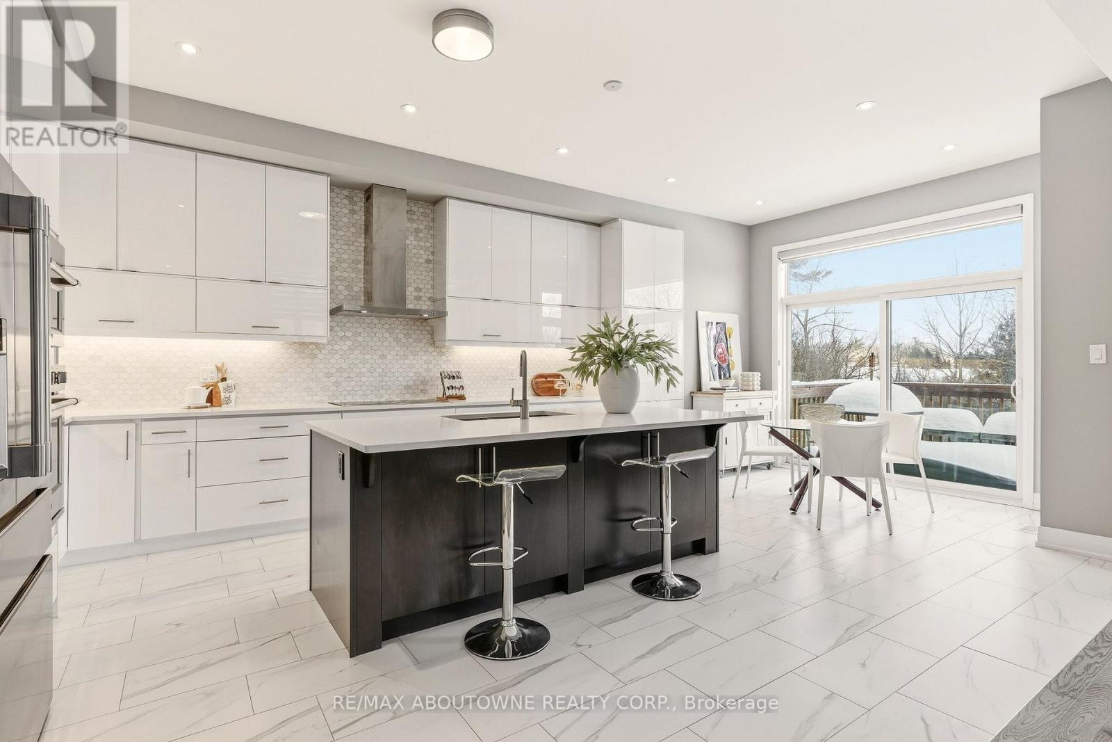 For those seeking privacy, nature & a setting that's exceptional, this is a rare opportunity in Upper Joshua Creek. Offering the only ravine lot in the area under $2M, this home delivers exceptional value for buyers who prioritize space, serenity & a connection to green surroundings. Welcome to 1456 Ford Strathy Cres, a Mattamy Winfield model set on a premium ravine lot with no rear neighbours. The seller invested in a lot premium to secure this secluded, picturesque setting-creating a truly special backdrop for everyday living. Offering over 3,100 sq ft of beautifully finished space & over $150,000 in builder upgrades, this home is tastefully designed & completely move-in ready. Soaring 10' ceilings on the main level & 9' ceilings on the upper & lower levels enhance the home's bright, open feel. White oak engineered hardwood flows throughout, complemented by a vaulted great room ceiling, gas fireplace, triple-glazed windows & an abundance of natural light with serene ravine views. The modern white kitchen is stylish & functional, featuring quartz countertops, soft-close cabinetry with pot drawers & an oversized island with breakfast bar-perfect for everyday living & entertaining. The open-concept great room & dining area provide an inviting space to gather, while the practical mudroom with inside garage access adds everyday convenience. Upstairs, the primary suite offers a tranquil retreat with tray ceiling, walk-in closet & spa-inspired ensuite with freestanding soaker tub & glass-enclosed shower. Three additional bedrooms, two full bathrooms, a laundry room & an open loft overlooking the great room complete the upper level. The unfinished walkout basement boasts upgraded 9' ceilings, oversized sliding doors, bathroom rough-in & large storage-offering outstanding potential to customize your dream space. Located on a quiet crescent, close to parks, trails, shopping, dining, and major highways, this home blends luxury, privacy &lifestyle in one remarkable offering (id:64974)