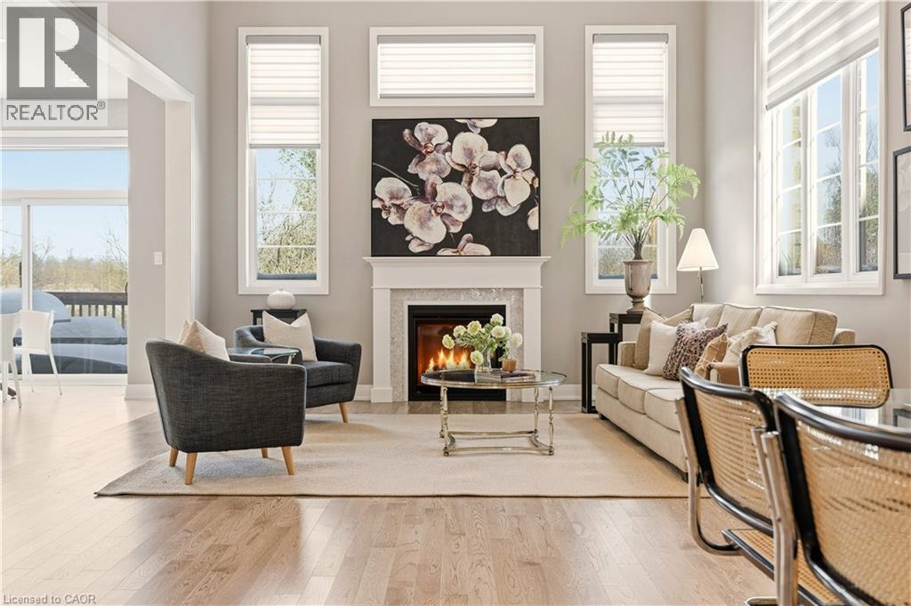Welcome to 1456 Ford Strathy Cres, an exceptional Mattamy Winfield model situated on a premium ravine lot in Oakville’s highly sought-after Upper Joshua Creek community. The seller invested an impressive $255,000 lot premium to secure this rare, private setting with no rear neighbours, creating a truly special backdrop for everyday living. Offering approximately 3,109 sq ft of beautifully finished space and over $150,000 in builder upgrades, this home is tastefully designed and completely move-in ready. Soaring 10’ ceilings on the main level and 9’ ceilings on the upper and lower levels enhance the home’s bright, open feel. White oak engineered hardwood flows throughout, complemented by a vaulted great room ceiling, gas fireplace, triple-glazed windows, and an abundance of natural light with serene ravine views. The modern white kitchen is both stylish and functional, featuring quartz countertops, soft-close cabinetry with pot drawers, and an oversized island with breakfast bar—perfect for everyday living and entertaining. The open-concept great room and dining area provide an inviting space to gather, while the practical mudroom with inside garage access adds everyday convenience. Upstairs, the primary suite offers a tranquil retreat with tray ceiling, walk-in closet, and spa-inspired ensuite with freestanding soaker tub and glass-enclosed shower. Three additional generous bedrooms, two full bathrooms, a laundry room, and an open loft overlooking the great room complete the upper level. The unfinished walkout basement boasts 9’ ceilings, oversized sliding doors, bathroom rough-in, and large storage—offering outstanding potential to customize your dream space. Located on a quiet crescent, close to parks, trails, shopping, dining, and major highways, this home blends luxury, privacy, and lifestyle in one remarkable offering. Welcome to your forever home! (id:64974)