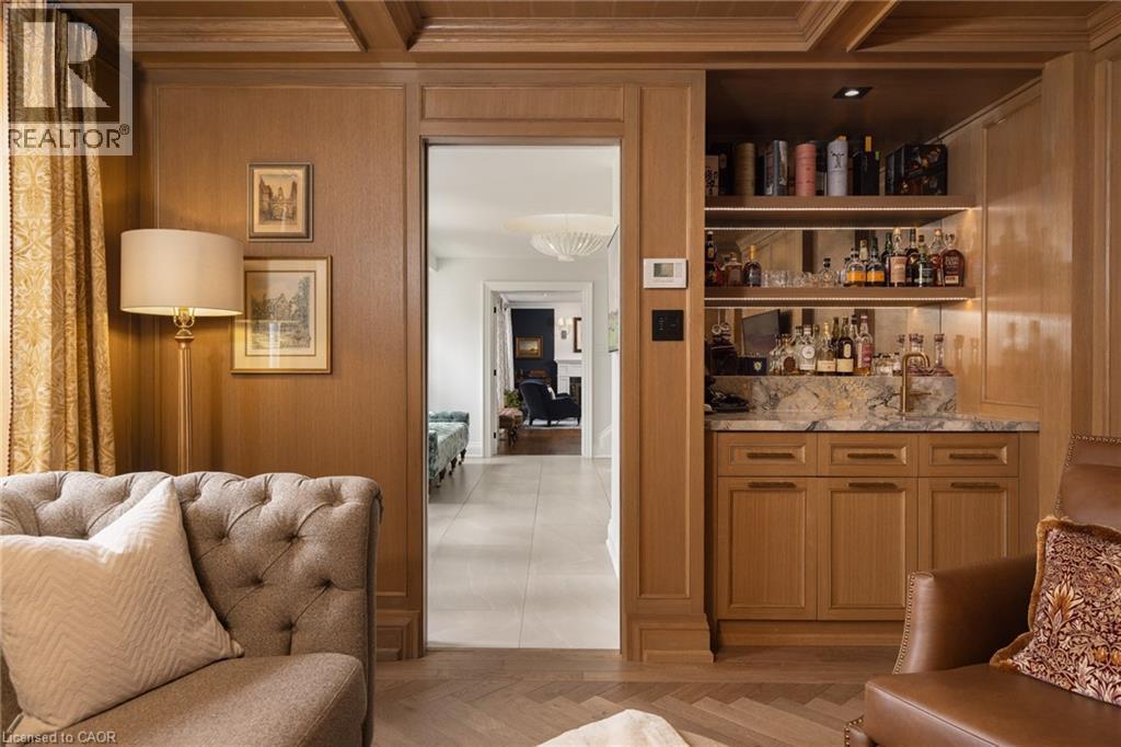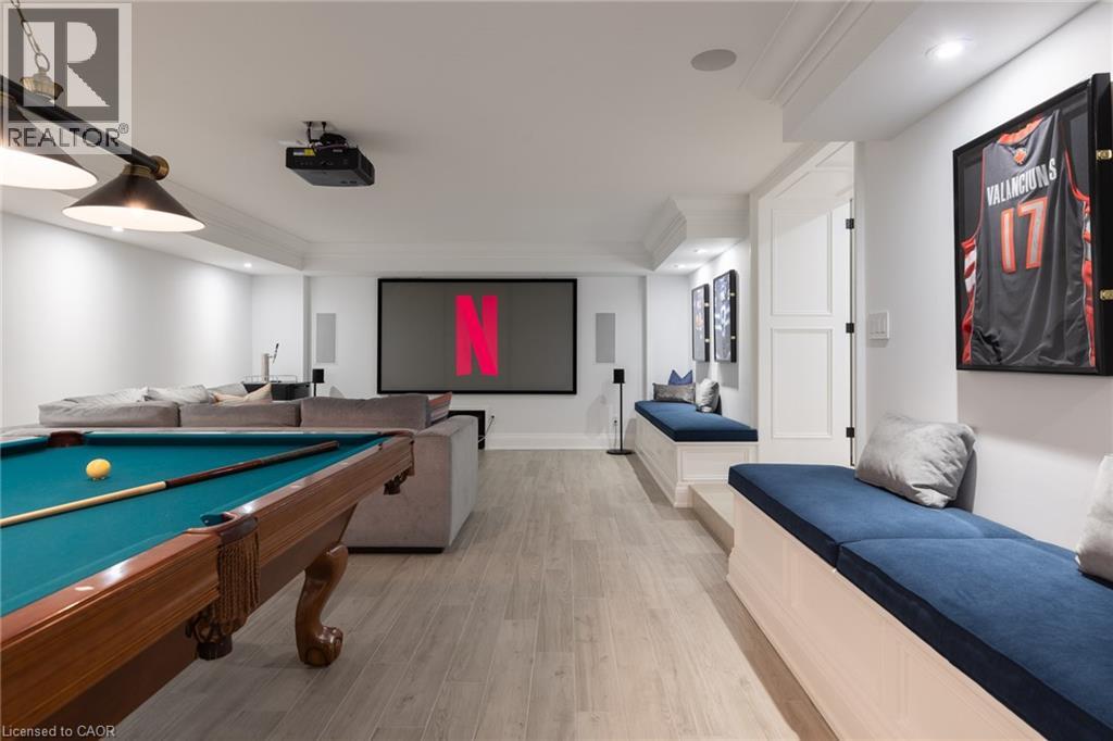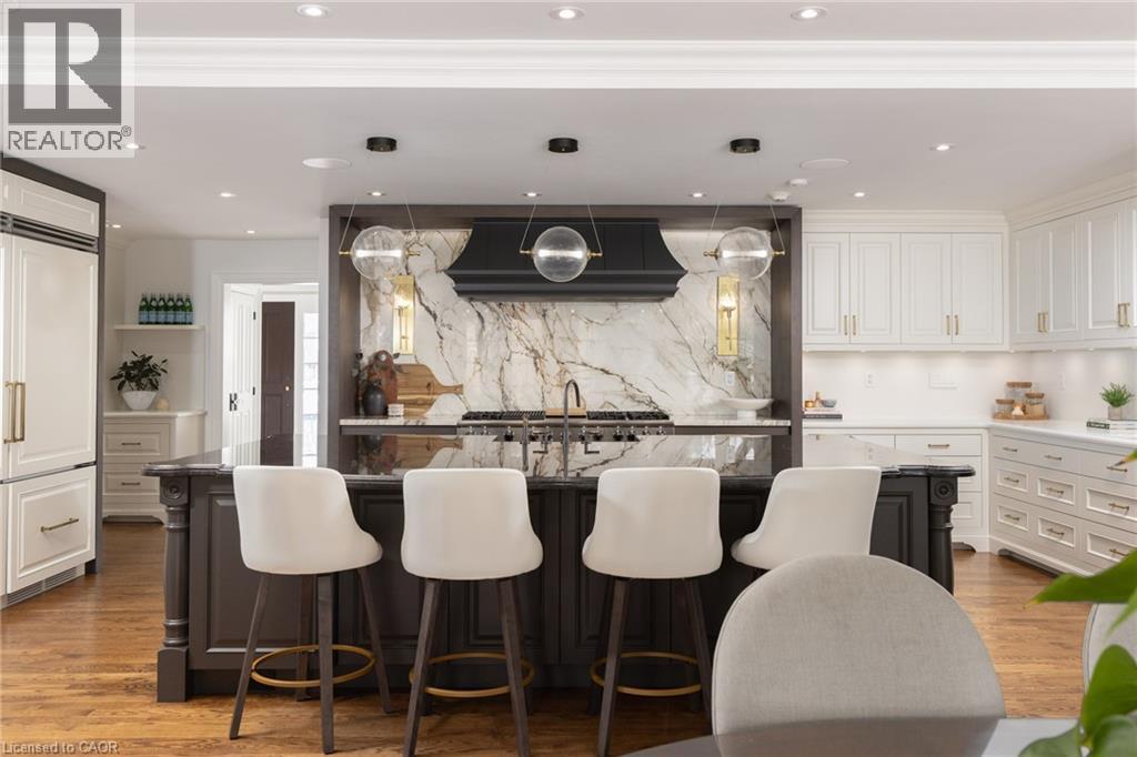 Nestled on an exclusive court in prestigious Ennisclare Park neighbourhood,146 Abbey Ct is a masterfully renovated Georgian-style residence steps from the lake & Gairloch Gardens.A comprehensive $2M renovation by Haugrud Homes and Narratif Design(2022)has elevated this exceptional property to an unrivalled standard of living. Spanning 5,444 sq ft above grade w/an addt’l 2,404 sq ft below,this 5+1 bdrm,6+1 bath home delivers an extraordinary space across every level.The main floor impresses w/ a heated-floor foyer,leading to a cozy den w/extensive millwork,wet bar,herringbone floors & wood f/p.An oversized LR with wood f/p & french doors that lead to an impressive DR w/gas f/p for family & friend celebrations. The gourmet kitchen is a dream come true & truly the main hub for family living.Top of the line Viking appliances.Braam’s custom kitchen cabinetry.A large breakfast area accommodates family meals along with 3 french doors to the backyard and access to the B/I BBQ.The FR open to the kitchen allows conversation to flow while curling up in front of the f/p for movie time. A large mudroom/laundry area with plenty of storage & pantry,coffee station,B/I wine fridge providing access to the backyard,garage & driveway. Tranquillity awaits in the principal bdrm w/12’ vaulted beam ceiling,gas f/p,separate walk-in closets,B/I storage cabinetry & 5 pc marble ensuite w/heated floors.4 generous sized addt’l bdrms all w/ensuite access.Conveniently located on this level is a gym & for the golf enthusiast a golf simulator! The LL provides heated floors,home theatre,billiards room,rec space & guest suite. Outside,a resort-calibre backyard of inground pool w/waterfall,spa,B/I BBQ, multiple entertaining patios & putting green. Situated in a great school district,minutes to GO Station,highways & everyday conveniences,this is a residence where extraordinary craftsmanship, community & location converge — an irreplaceable opportunity for the most discerning of buyers.LUXURY CERTIFIED (id:64974)