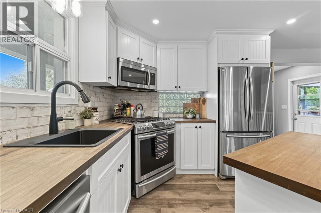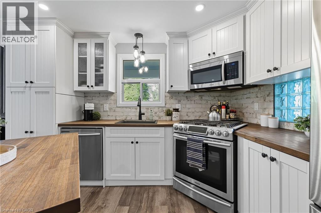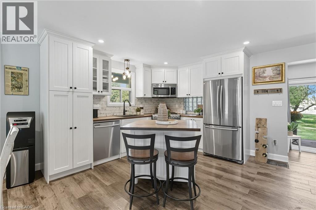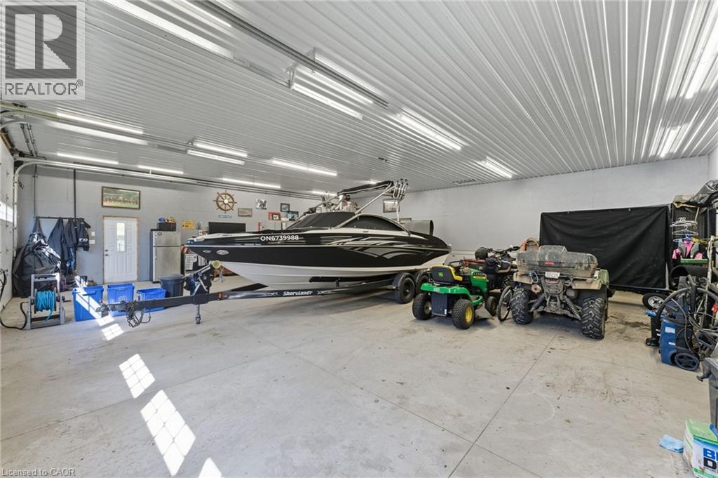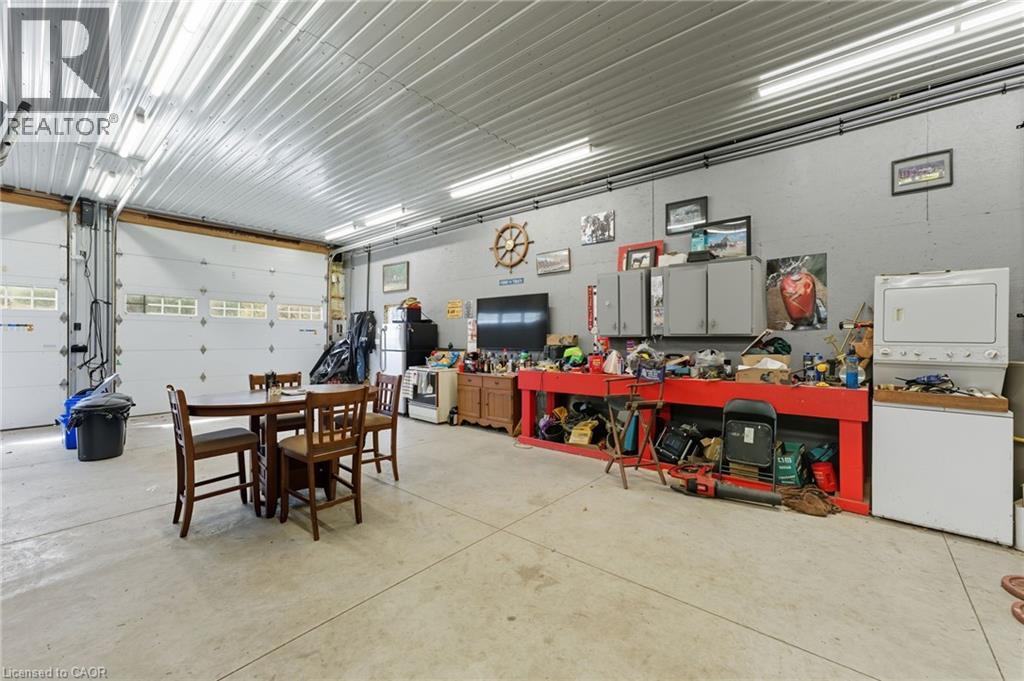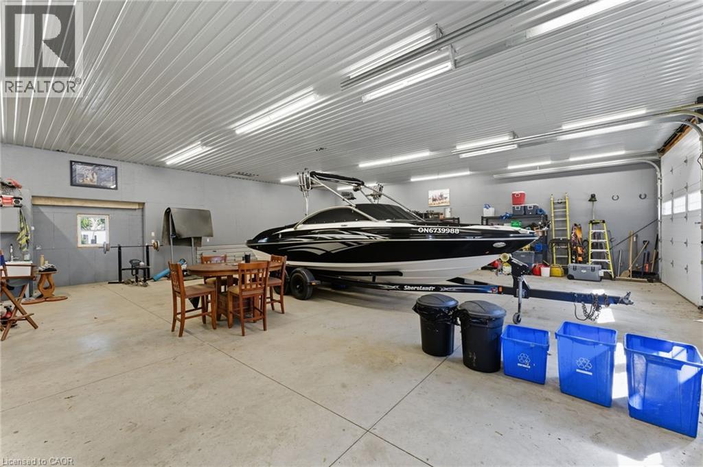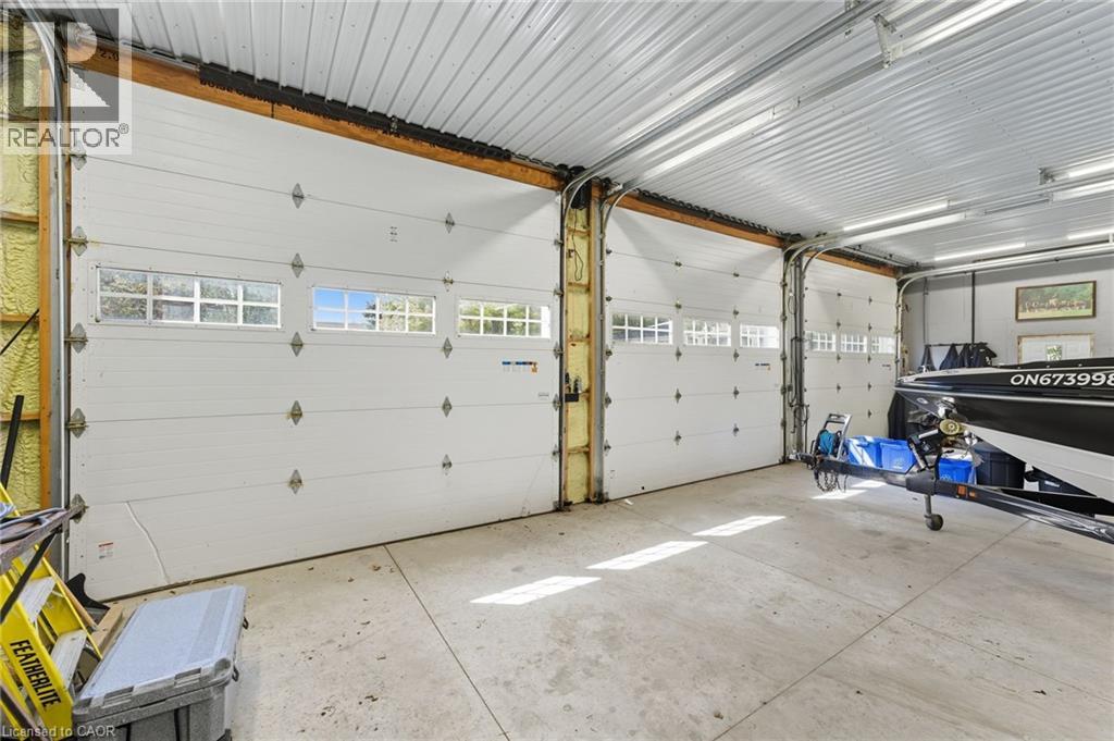 Discover the perfect blend of country living and unmatched workspace at this beautifully updated bungalow in the charming village of Lynden. This property is truly designed for those who need more than just a home. The standout feature is the fully winterized 3-bay shop, complete with oversized 11’ x 12’ doors, 12’ ceilings, and space to accommodate up to six vehicles. Designed with functionality in mind, the shop also includes camper plugs and receptacles on both sides, making it ideal for RVs, trailers, or equipment. Whether you’re a contractor, car enthusiast, hobbyist, or need room for your business, this is a rare opportunity to own a property that delivers both lifestyle and functionality. Inside, the home offers a bright, open-concept main floor with a seamless flow between the living, dining, and kitchen areas making it ideal for everyday living and entertaining. Two comfortable bedrooms and a modernized 4-piece bathroom complete the main level. The fully finished basement provides exceptional flexibility, currently set up as a spacious primary retreat with a 3-piece ensuite and walk-in closet, but easily adaptable to suit your needs, whether as a recreation space, guest suite, or additional living area. Step outside to enjoy the expansive wrap-around porch, perfect for relaxing or hosting, along with a fully fenced dog run and ample parking for vehicles, trailers, or equipment. Extensively renovated in 2019, including roof, flooring, plumbing, appliances, finished basement, and construction of the shop, this property is move-in ready with nothing left to do. Located just minutes from Cambridge, Ancaster, Dundas, and Hamilton, Lynden offers a peaceful rural setting with convenient access to nearby amenities. A rare opportunity to own a property that truly supports your lifestyle, both at home and in the shop. (id:64974)