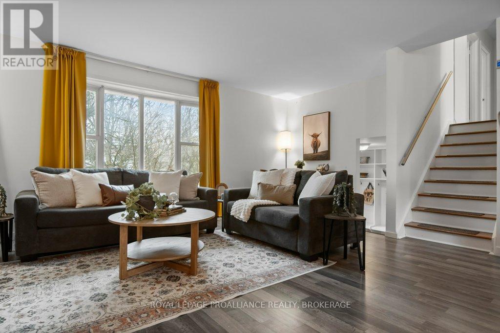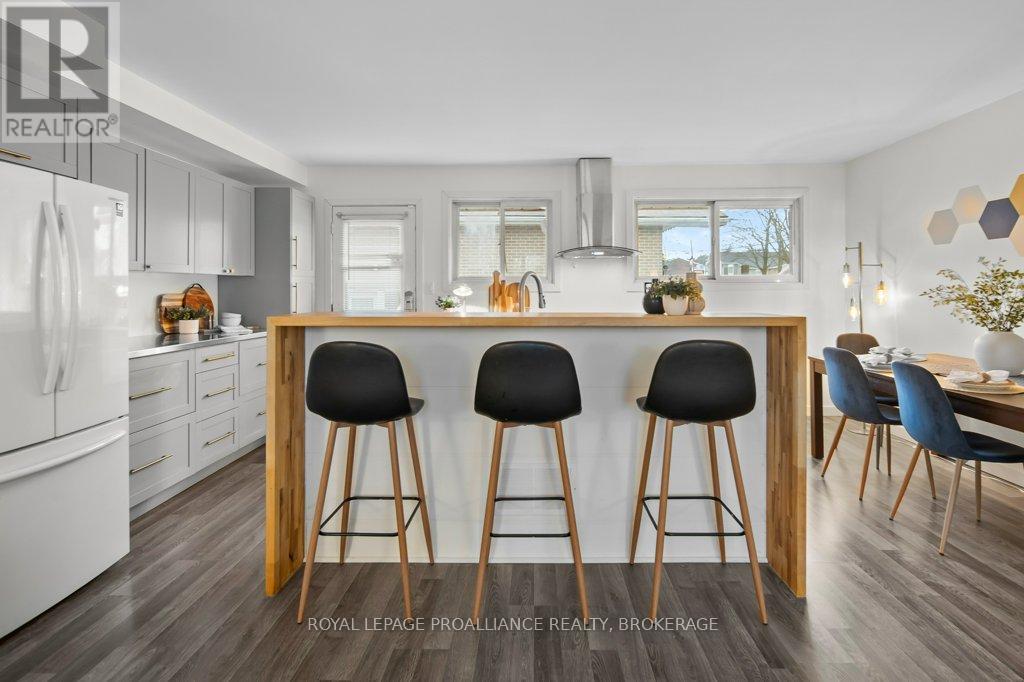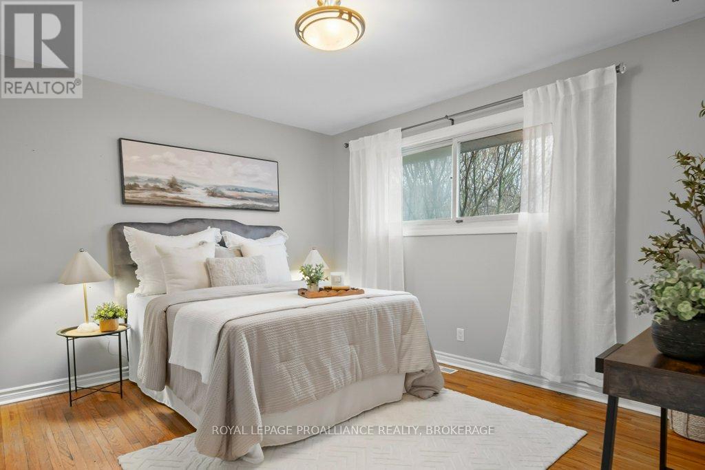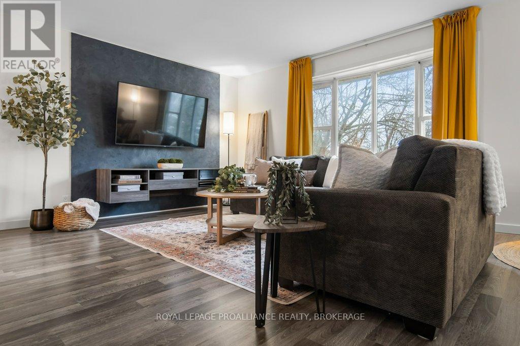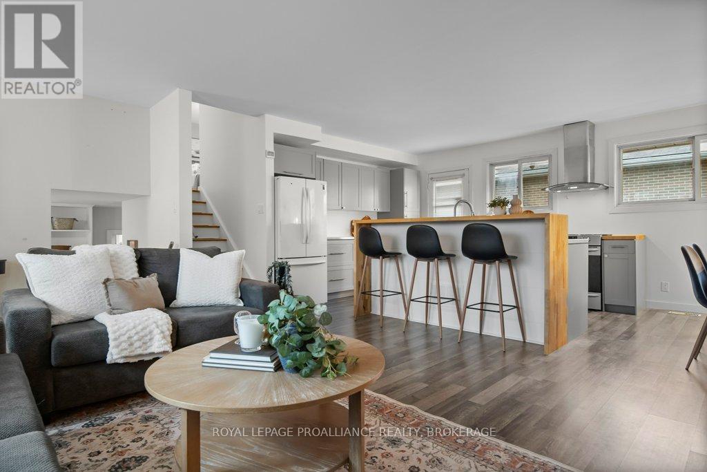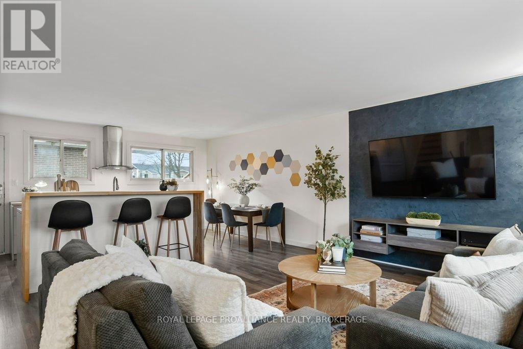 This spacious 4 bedroom, 2 bathroom side-split offers a practical layout and great functionality for everyday living. The main level features an open concept design with an updated kitchen that flows into the living and dining areas, creating a comfortable and connected space. There is also a partially finished basement, providing additional room for storage, recreation, or future customization. A durable steel roof adds long term value and peace of mind. One of the standout features of this property is the oversized double car garage with 11 foot ceilings - ideal for hobbyists, automotive work, or boat storage. Conveniently located with quick access to Highway 401, CFB Kingston, and downtown Kingston this home presents a solid opportunity for buyers seeking space, functionality, and value. Central Air Conditioning and appliances are included. (id:64974)