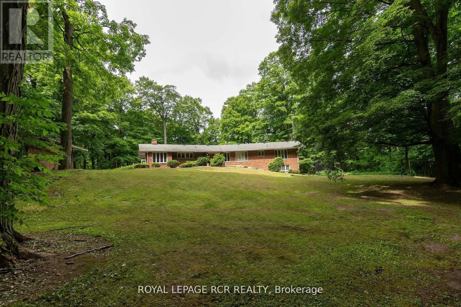 Hilltop bungalow on a prime 10 acre estate property - renovate or build new in complete privacy. Rare opportunity in one of King Township's most sought after locations. 4877 sq. ft. total living space, 3+2 bedrooms, 4 bathrooms, 4 fireplaces. Oversized detached 2-car garage. Driveway winds through the woods to a hilltop clearing surrounded by mature maples. Situated among country estates and horse farms. Home needs full renovation or is an excellent site for a new build....privacy assured. (id:64974)