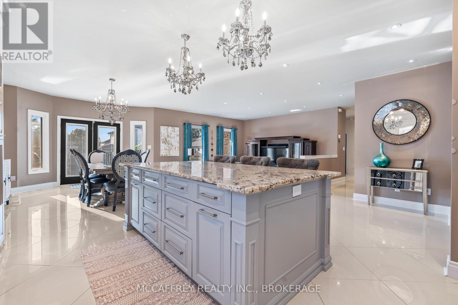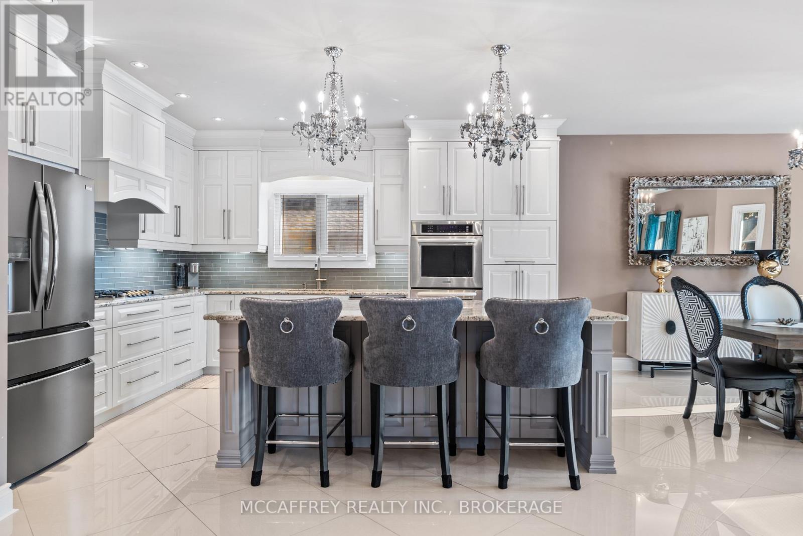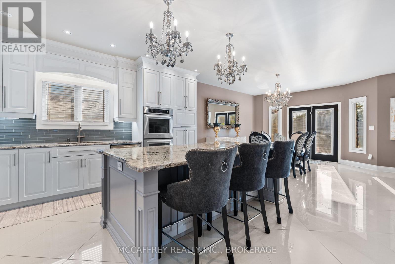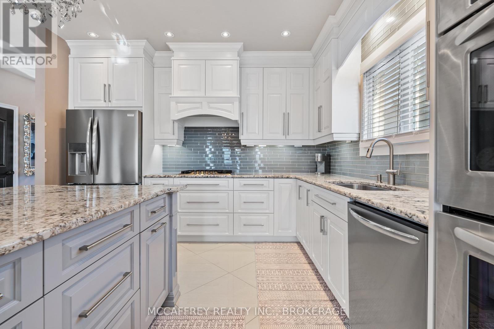 Luxurious, high-end all-brick bungalow nestled at the end of a quiet cul-de-sac is the epitome of elegance and modernity. Beautifully landscaped outdoor space along with a double wide paved driveway and a two-car attached garage offers ample space. The front yard also features an irrigation system, maintaining the greenery with pristine care. Step inside to be instantly captivated by the bright and airy open floor layout accentuated by inviting 9ft ceilings. Admire the exquisite, large white tile flooring that runs throughout this renovated beauty, giving it a fresh and contemporary feel. The home boasts an office and a spacious bedroom, both adorned with high-quality hardwood floors. The grand, chef-inspired kitchen steals the show with an enormous center island topped with stunning Granite countertops. Also featuring ultra-modern built-in appliances, sliding cupboard drawers, and a hideaway microwave - a blend of style and functionality. The adjacent dining room, equipped with patio doors, offers an irresistible view of the fully-fenced backyard. The sunken living room offers plenty of extra space for gatherings. The main floor further features a gold accented 3pc bath, convenient laundry space, large Primary bedroom with a walk-in closet, 4pc ensuite, and an additional bedroom. As you venture downstairs, you'll discover a fully finished rec room, ample storage space, the potential for a wet bar, an additional bedroom with an extra-large closet and an accessible utility room. The lower level also houses a separate in-law suite. This suite is immaculately finished and equipped with Quartz countertops in the kitchen, 4pc bath, designated laundry space, and double doors for privacy and convenience. This suite comes with its own exterior entry via a side pathway, offering easy access and Independent living options. 3pc bath' 25, In-law Suite' 23, Kitchen remodel '18, Main floor remodel '17 and much more! (id:64974)