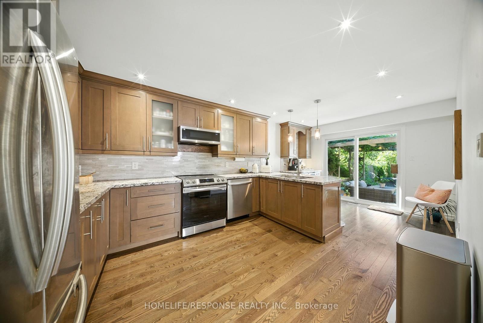 Rare "Golden Triangle" Gem in "Peaceful and family oriented Falgarwood" community in Oakville! This beautiful 3-level backsplit offers 2,300 sq. ft. of modern living space on the one of Oakville's most coveted nature lots. Upon entry, home is welcoming you with an expansive living room and a formal dining room. Unique to this home is the private, self-contained guest room located just steps from the kitchen with direct exterior access and an adjacent full bathroom, perfectly positioned for a quiet home office, or a comfortable guest retreat, minimizing disruption to the main household. Upstairs, the primary bedroom features a sleek semi-ensuite and two more great size bedrooms. Enjoy additional living space i the professionally executed basement, offerings a seamless finish and the rare benefit of being fully permitted for total buyer confidence, rare 9 ft. ceilings in its sitting area, one additional bedroom, 3 pc bathroom and a bonus 6.4 ft ceiling height crawl space which currently utilized as an inspired art studio. Enjoy the south-facing backyard which provides maximum natural light. Outdoor Oasis: Step into a massive, tree-lined, south facing backyard designed for entertaining. complete with a natural wood-burning pizza oven. Located in a "Garden Suburb" pocket that is completely walkable to major shopping and second from the QEW/403/Go Station. A rare balance of privacy and total connectivity. See it today! ** This is a linked property.** (id:64974)