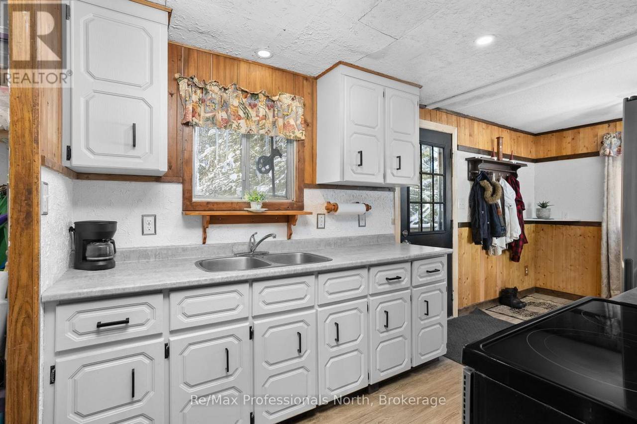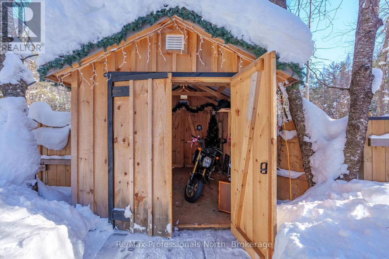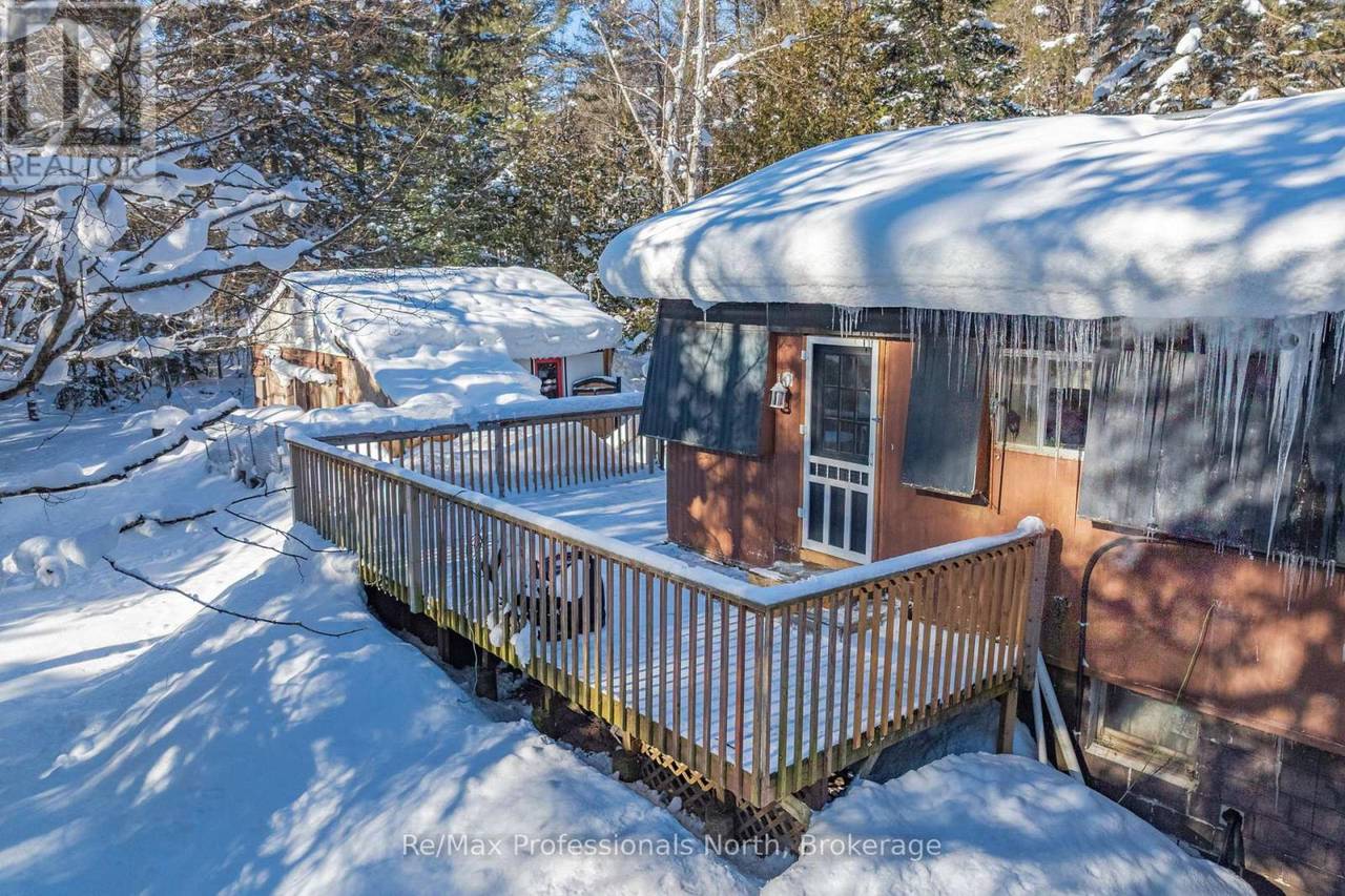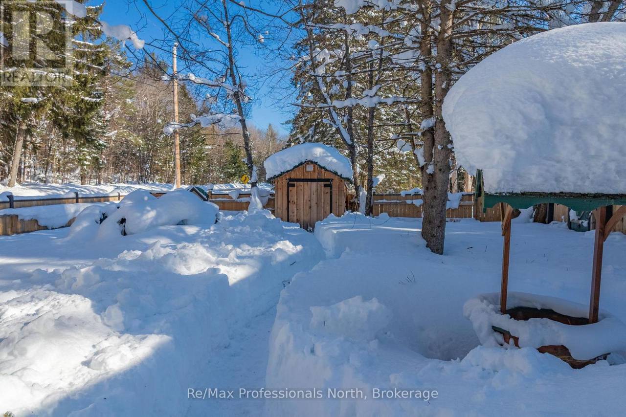 Set on a private and beautifully treed 2-acre parcel of land, this 3-bedroom bungalow offers an excellent entry-level opportunity for buyers looking to create value in a peaceful Muskoka setting, just 15 minutes from downtown Bracebridge. The property is surrounded by mature forest and features a fenced area ideal for pets, established gardens, two storage sheds, and a detached garage with workshop space. Inside, the home is fully livable and functional, with a practical layout, one full bath, and a primary bedroom with a walkout to a future deck or patio area. The unfinished walkout basement offers significant future potential for additional living space; buyers should note that water intrusion has occurred during snowmelt and periods of heavy rain and will require remediation, presenting a clear opportunity for improvement and customization. Heated by a newer propane forced-air furnace and priced well below comparable properties, this home is well suited for buyers seeking privacy, land, and the chance to improve and personalize a property over time. (id:64974)