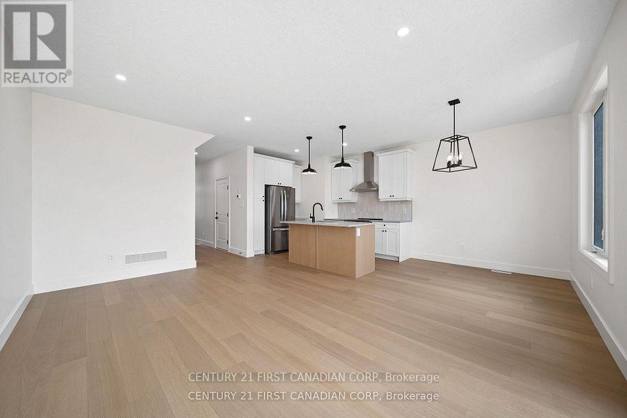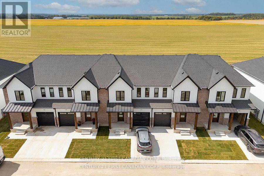 Welcome to 147 Scotts Drive Unit 31(Municipal Unit #21) in Phase 2 of the Ausable Fields development by the Van Geel Building Co, which is just steps away from the Lucan Community Centre that is home to the hockey arena, YMCA daycare, public pool, baseball diamonds, soccer fields and off the leash dog park. The Harper plan (1589 sqft) is a red brick two story freehold townhouse that features an attached one car garage, concrete laneway, open concept kitchen and living room plus a 2pc powder room. The second floor includes a spacious primary bedroom with large walk-in closet, ensuite with double vanity and tile shower, two additional bedrooms, 4pc main bath and laundry room. All bathrooms and kitchen include quartz countertops and hardwood floors on the main and upstairs hallway, with two colour/design packages to pick from. This unit comes with KitchenAid appliances. This is an interior unit, with the Willow Package and is ready for a quick possession. Note- Listing prices vary due to the location within the development. (id:64974)