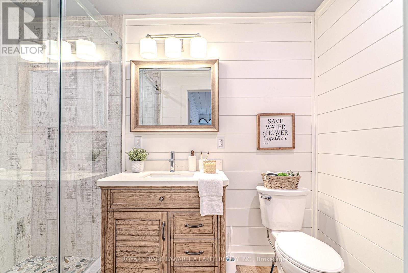 Experience the ultimate waterfront lifestyle on sought-after Balsam Lake with over 90 feet of pristine shoreline and a property designed for both relaxation and entertaining. This year-round retreat offers a rare blend of comfort, versatility, and resort-style amenities. The main home welcomes you with a bright, functional layout featuring a kitchen with walkout to the yard, a dining area with access to the deck, and a cozy living room anchored by a wood stove. Two main floor bedrooms include one with its own walkout to the deck, while the 4-piece bath offers in-floor heating for added comfort. The finished walkout lower level expands your living space with a spacious rec room, two additional bedrooms, a 3-piece bath, and a walkout to the inviting three-season sunroom , the perfect place to unwind after a day on the water. Designed with hosting in mind, the converted detached garage has been transformed into a fully functional guest retreat that sleeps 18, complete with a kitchenette, open-concept living and dining area with fireplace, and an impressive bunkroom with built-in beds to accommodate family and friends. A separate bunkie (2.3m x 3.53m) sleeps 4 with hydro provides even more flexible space for guests. Outdoors, the property truly shines with a private dock, hardscaped patio, waterside bar, and firepit - creating the perfect setting for summer days and evenings by the lake. Whether you're looking for a family getaway or a place to gather and entertain, this exceptional Balsam Lake property delivers the complete waterfront experience. (id:64974)