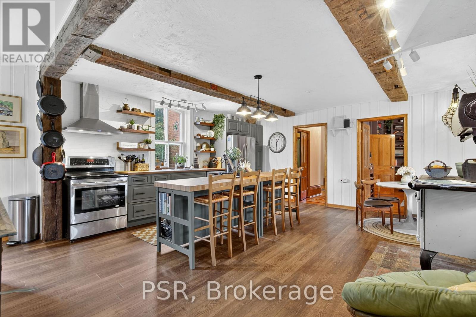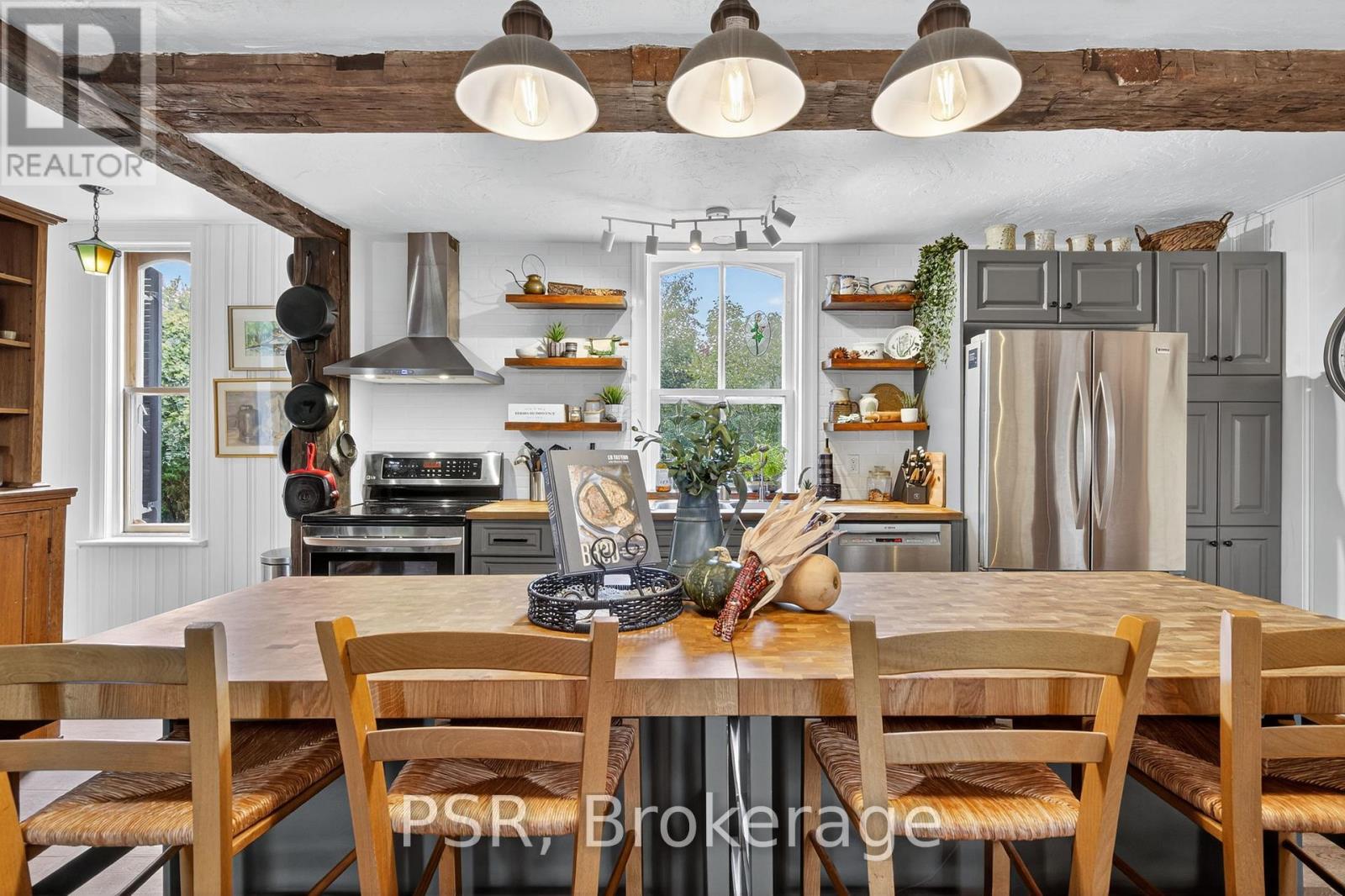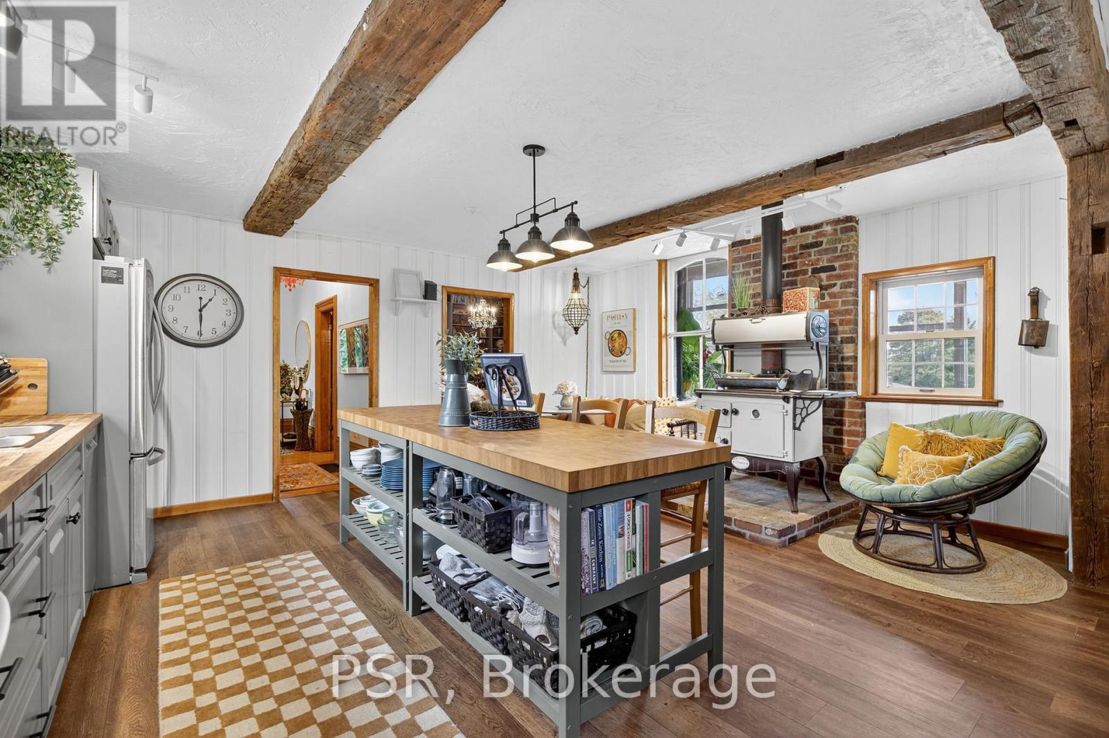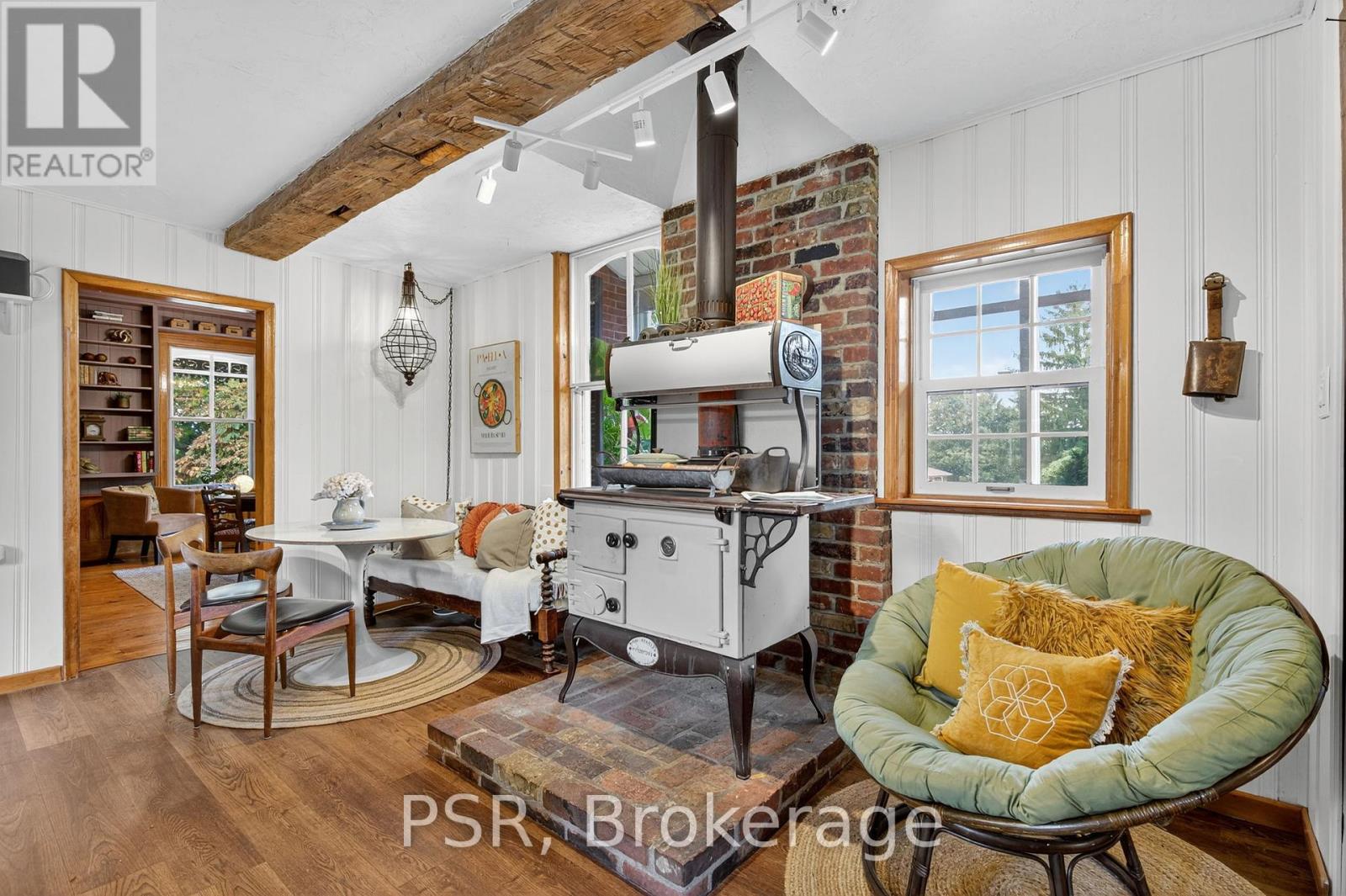 Discover a rare historic estate in the charming village of Cheltenham. Set on 1.4 private acres with approximately 200 feet of frontage this 1862 residence blends timeless character with thoughtful modern updates. Enjoy walking proximity to the General Store, Credit River, Caledon Trail way, and the Badlands, with Pulpit Golf Club, Caledon Ski Club, cafes, and breweries only minutes away. Pearson Airport is a quick 30-minute drive. A stately tree-lined drive leads to over 3,700 square feet of bright, inviting living space. Tall windows, high ceilings, and generous principal rooms create an open, airy feel throughout. The flexible layout includes four bedrooms, three bathrooms, a family room, dining room/library, office/living room, and a versatile loft ideal for studio, fitness, or creative use. Utilize this fantastic property as a family home, weekend retreat from the city or unlock the potential of the property by exploring the possibility of lot severance. Modern geothermal heating and cooling- along with radiant heat on all tiled floors- provide efficient, ecofriendly comfort year-round. Outdoors, enjoy multiple patios, a sunlit solarium, a landscaped pond, and mature trees offering complete privacy. The wide frontage also offers A one-of-a kind heritage offering in one of Caledon's most beloved villages, where historic charm meets modern living.. (id:64974)