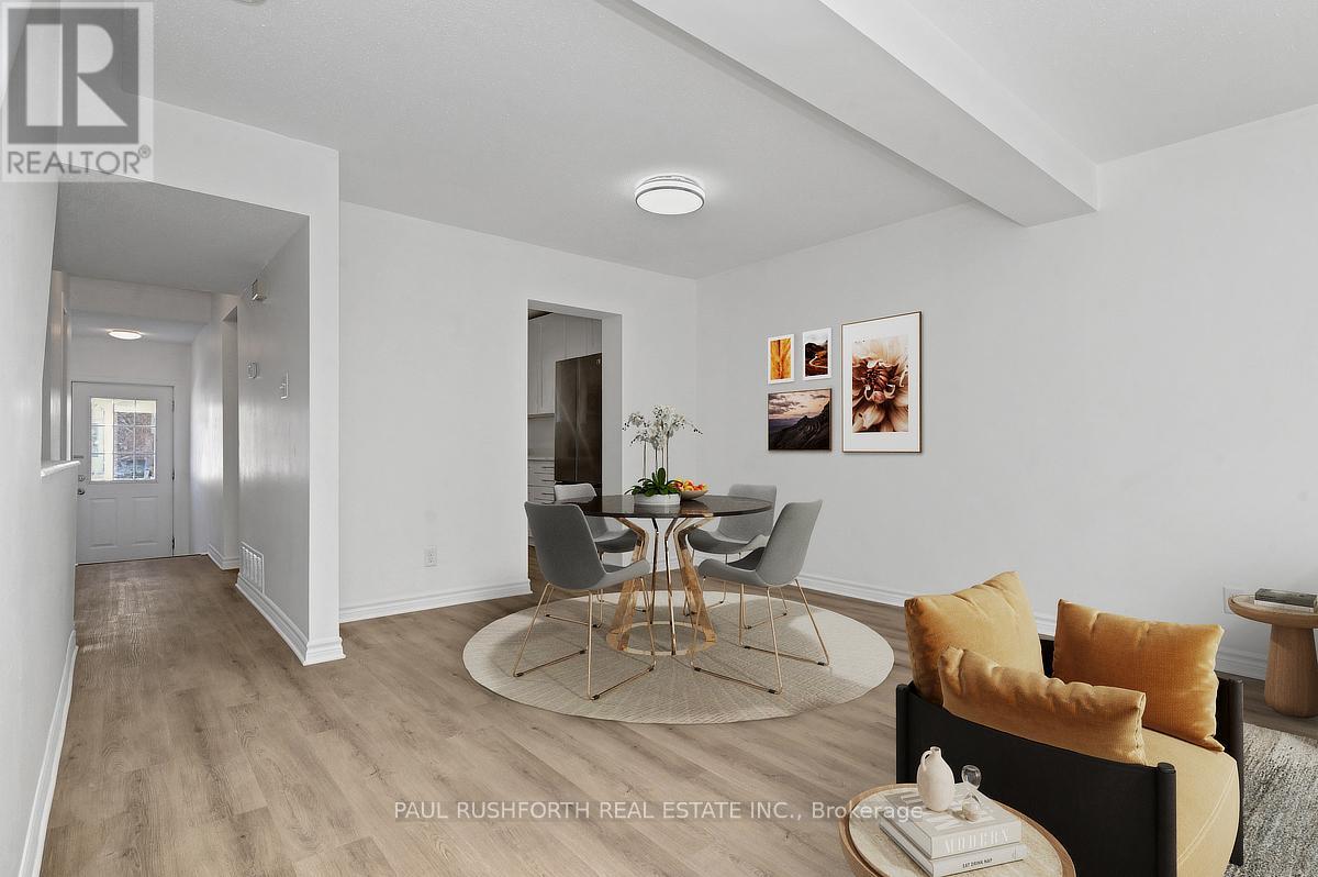 Everything feels fresh the moment you step inside this charming 3 bedroom, 1.5 bath home with carport parking, ideally located in a sought after, family friendly neighborhood just steps to parks, shopping, restaurants, a movie theatre, and everyday amenities. The main level showcases new vinyl plank flooring (2026) and a bright, spacious living and dining area framed by large windows. Sliding patio doors lead directly to the private rear yard, perfect for summer evenings, weekend barbecues, or a quiet outdoor retreat. The updated kitchen, and brand new appliances (2026) offers excellent cupboard space and practical flow designed for real life. Upstairs, you'll find a generous primary bedroom along with two additional bedrooms, all featuring new carpet (2026) for added comfort. The full bathroom and powder room were both updated in 2026, and convenient linen storage keeps everything organized. The finished lower level extends your living space with a large family room anchored by a cozy wood-burning fireplace, an inviting setting for movie nights or relaxed gatherings, also finished with new carpet (2026). Laundry and abundant storage complete the space. Additional improvements include fresh paint throughout (2026) and new interior doors (2026), making this home truly move in ready. An excellent opportunity for first-time buyers, investors, or downsizers seeking comfort, updates, and unbeatable convenience. Some photos have been virtually staged. (id:64974)