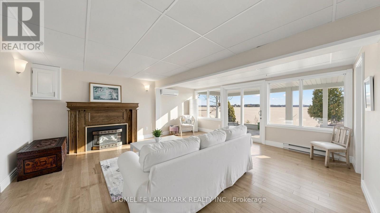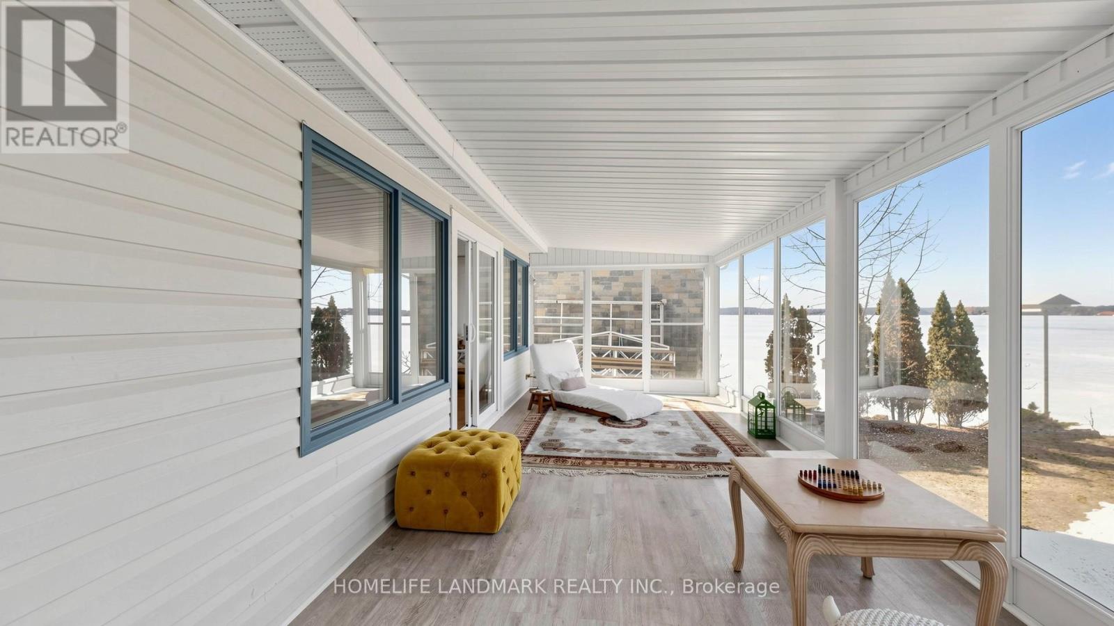 Discover the perfect blend of serenity and convenience in this charming 1.5-storey detached home, located in the quiet waterfront community of Janetville, a terrific little pocket bordering Durham Region and the Kawarthas, just a little over an hour from Toronto. Nestled along the southern shore of Lake Scugog and situated on the Trent-Severn Waterway, this scenic four-season property, accessible by public road, offers breathtaking panoramic views and vibrant western sunsets. The home has been thoughtfully updated and features a large porch area, an open-concept main floor that seamlessly connects the kitchen, dining, and living areas, ideal for relaxed lakeside living or entertaining. A bright, all-season sunroom with floor-to-ceiling windows that bring in stunning lake views and sunsets year-round. A cozy gas fireplace adds warmth and charm during cooler months. Enjoy the great outdoors with two private docks, perfect for swimming, kayaking, fishing, or boating. A separate, finished, adorable bunkie provides extra space for a home office, a children's playhouse, or a creative studio complete with sliding glass doors to a private deck. Whether you're searching for a weekend retreat or a year-round escape from city life, this character-filled home delivers a peaceful lifestyle with access to nature and nearby amenities like golf, swimming and most watersports, biking, hiking, and more. (id:64974)