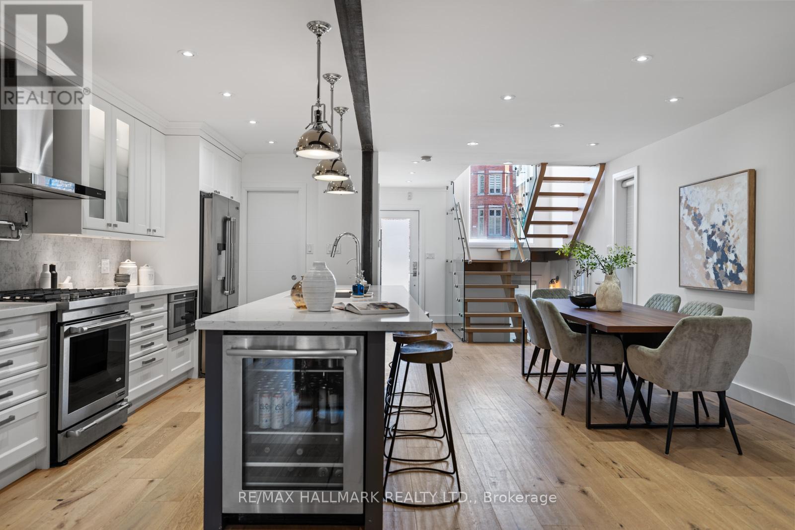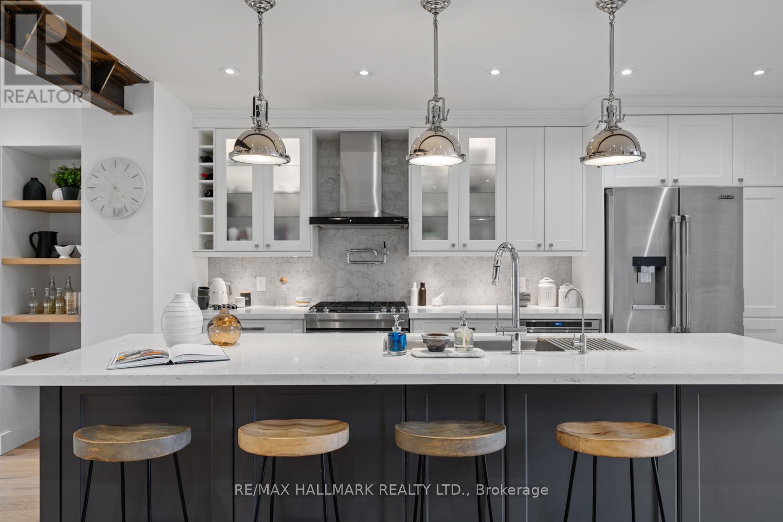 Set in the heart of Lawrence Park North, one of Toronto's most coveted family neighbourhoods, this beautifully renovated home offers a rare blend of refined design and exceptional lifestyle. On a quiet, tree-lined street where neighbours connect and children walk to school, this residence truly captures the essence of community living. Just a short 5-minute walk to both John Wanless Public School and Lawrence Park Collegiate Institute, with convenient access to the subway and Highway 401, the location is as impressive as the home itself. Thoughtfully reimagined, the interior unfolds into a bright, open-concept main floor designed for both everyday living and sophisticated entertaining. The chef's kitchen is the heart of the home, anchored by a generous centre island with integrated beverage fridge, Caesarstone countertops, premium stainless steel appliances with gas range, and a walk-in pantry. A seamless transition leads to the expansive rear family room, where exposed steel beams introduce a subtle industrial edge, and floor-to-ceiling glass sliding doors open onto a private deck-creating a true indoor-outdoor experience, ideal for year-round enjoyment. Upstairs, three well-proportioned bedrooms offer comfort and tranquility, including a beautifully appointed primary retreat featuring an oversized custom closet, sliding glass doors to a private balcony, and a spa-inspired ensuite with double sinks, a spacious glass shower, and a deep soaker tub. Two full bathrooms and a main floor powder room provide both function and ease for family living. The finished lower level adds exceptional versatility, with exposed brick, a large recreation space (or optional extra bedroom), a dedicated home office area, a 3-piece bath and laundry room. Complete with license pad parking, extensive built-ins, and abundant storage throughout, this home delivers both style and substance in one of North Toronto's most desirable communities. (id:64974)