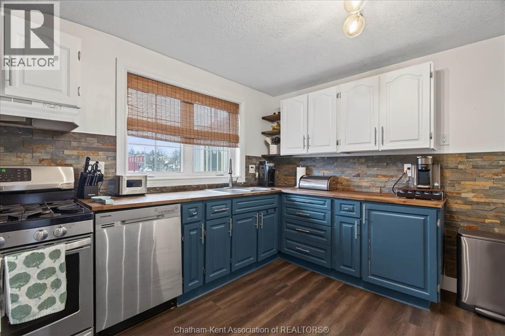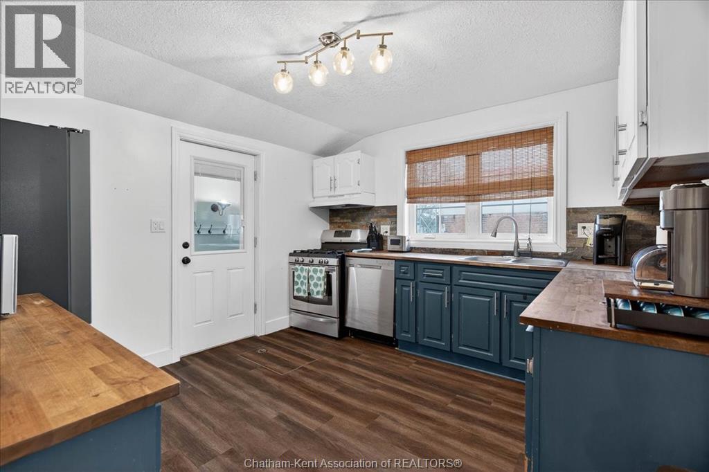 Welcome to the heart of West Lorne - just steps to the fire hall, local shops, restaurants, parks, and walking trails, with quick access to Highway 401 for an easy commute. Situated on a generous 66 x 132 ft lot, this charming 3-bedroom, 1-bath bungalow offers comfortable single-floor living - ideal for first-time buyers or downsizers seeking small-town charm and everyday convenience. Inside, you'll find a spacious living room filled with natural light and a dedicated space for a dining room, creating a functional layout for both everyday living and entertaining. A bright 3-season sunroom adds bonus square footage and is perfect for morning coffee or relaxing evenings in spring and fall. An attached garage - a rare find in this price point - adds valuable storage, parking, and functionality, with convenient interior access. From the garage, patio doors lead to the fully fenced backyard (2021), offering a private space ideal for kids, pets, or summer gatherings. The adorable blue kitchen features stainless steel appliances, a gas stove, dishwasher (2023), and a brand-new fridge (2025). The thoughtful layout places the primary bedroom near the bathroom, with two additional bedrooms perfect for children, guests, or a home office. A cozy alcove offers flexible space for a reading nook or desk. With the entry and utility area located beside the existing bathroom, there may also be potential to add a convenient powder room for added functionality (buyer to verify). Key updates include windows (2020), roof (2019), insulated and sealed crawl space (2021), washer and dryer (2024), owned hot water tank (2025), and furnace & A/C (2024, currently rentals). Gas BBQ hookup included. West Lorne offers friendly small-town living just 35 minutes to London and Chatham - the perfect balance of peace and accessibility. (id:64974)