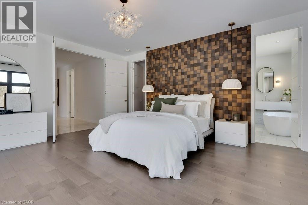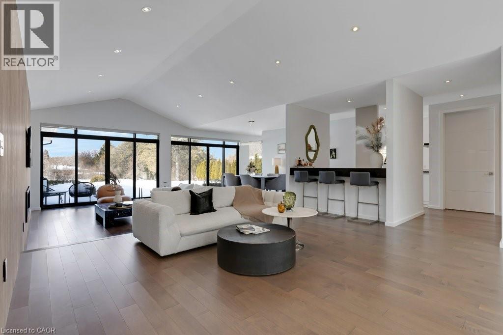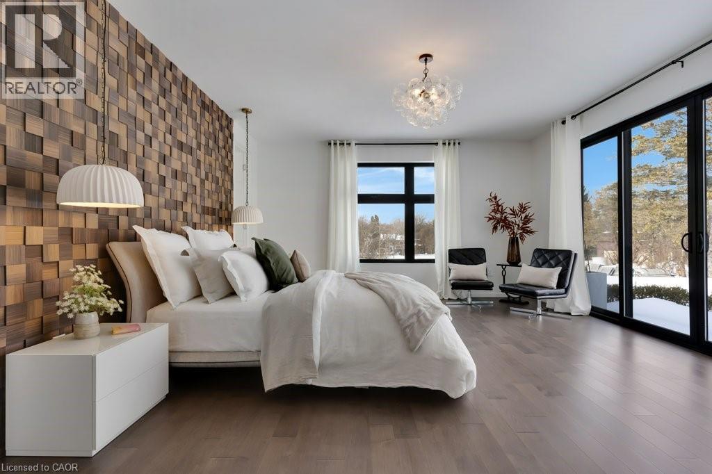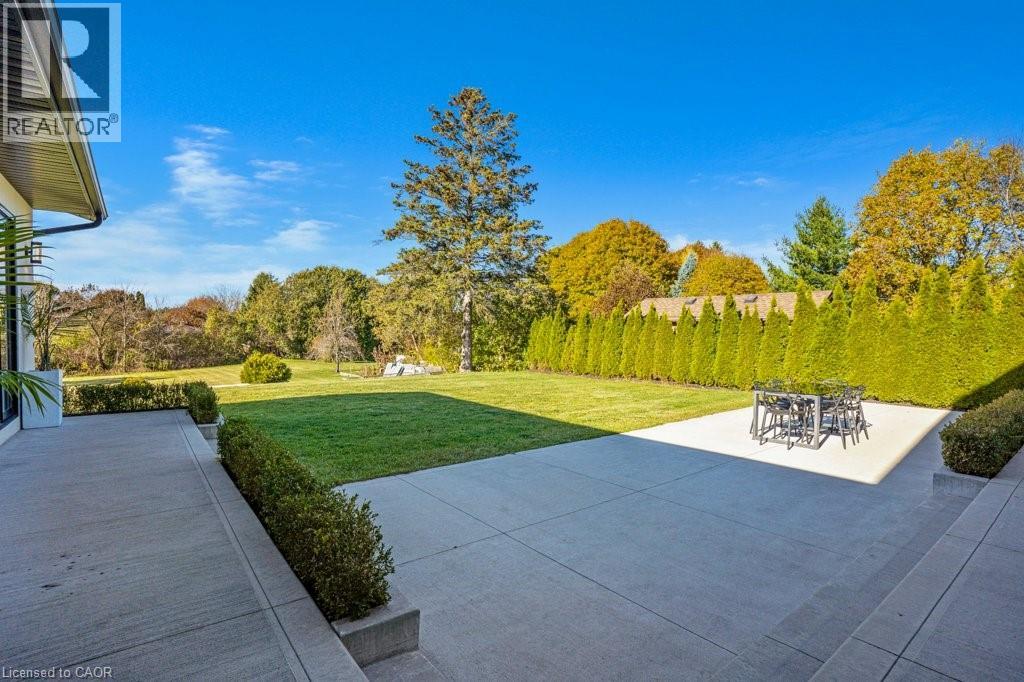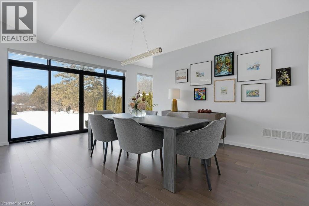 This almost-new custom built bungalow sprawls across 3,551 square feet of high quality craftsmanship. At the front door, you'll feel lured into the spacious great room and conversation pit area, focussing on a cozy gas fireplace mounted on the acoustic wood slat accent wall. Many floor to ceiling windows & large patio doors provide an abundance of sunlight throughout this space. If you love to cook you'll love this amazing kitchen, featuring natural stone counter tops and backsplash, stainless steel appliances, wall to wall pantry storage, and pot lighting overhead. A spacious breakfast area overlooks rear yard. For more formal entertaining, a sizeable dining room is open to the main great room. Adjacent to the kitchen is a spacious laundry room with a combination washer/dryer unit, plenty of storage and drying rack space, and a walk down to a fantastic crawl space below the house for all of your storage needs, approx 5' high. A mud room w/ access to the garage completes this area. The bedroom wing offers four spacious bedrooms: one with an ensuite bath and walk-through closet, and two that share a walk-through closet & 3pc bath. One of these two bedrooms would work well as a quiet den or office space. Lastly, the primary bedroom includes a walk-in closet w/ organizers, a wood-texture accent wall, a walk out to the patio, & a luxurious ensuite bath featuring a soaker tub and glass walk-in shower. A 3pc bath is located off the bedroom corridor which also leads to the patio; perfect for outdoor guests. Finishing off, are two very large walk-in storage rooms. One of these could easily become an office or craft room. Engineered maple flooring is featured in the main living spaces and bedroom areas. A gas connection is located on the patio for a BBQ, and a future pool or hot tub. Floor to ceiling windows throughout are a magnificent feature of this lovely home. Be sure to visit this stunning property, situated on 3/4 of an acre in the quiet village setting of Mannheim. (id:64974)