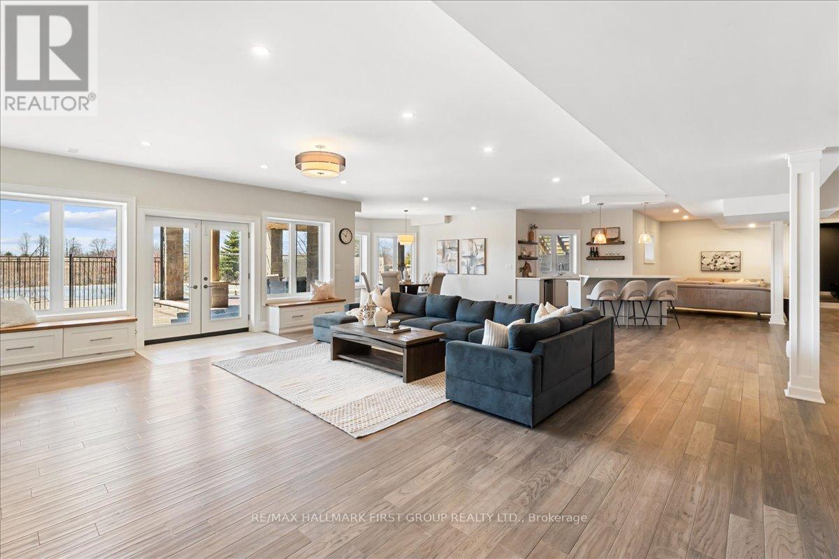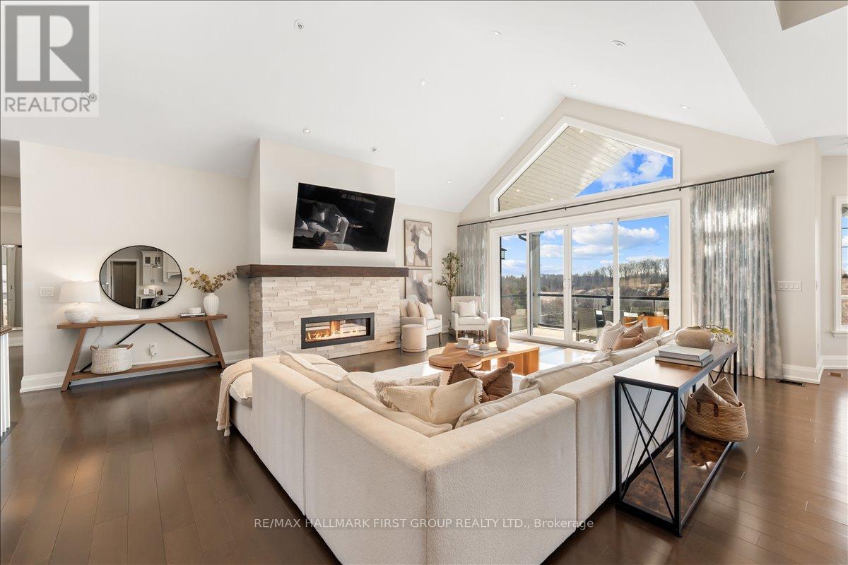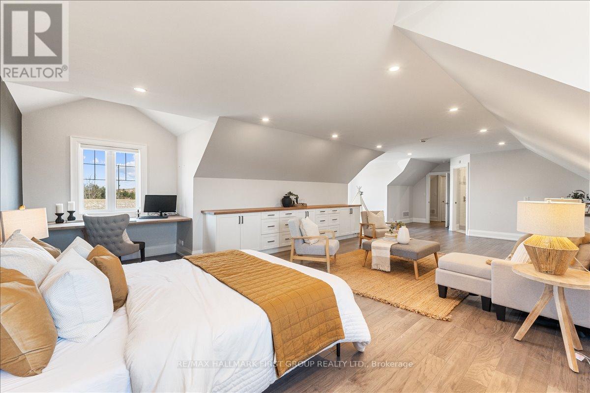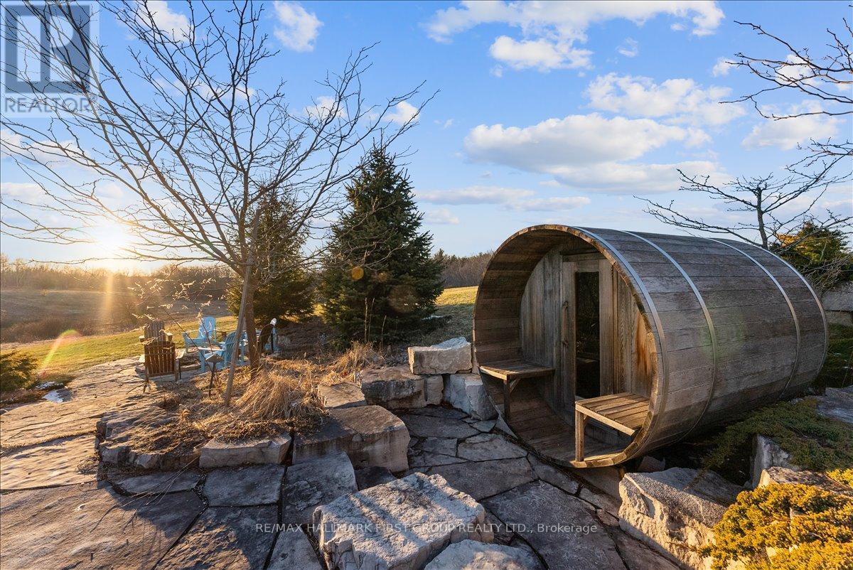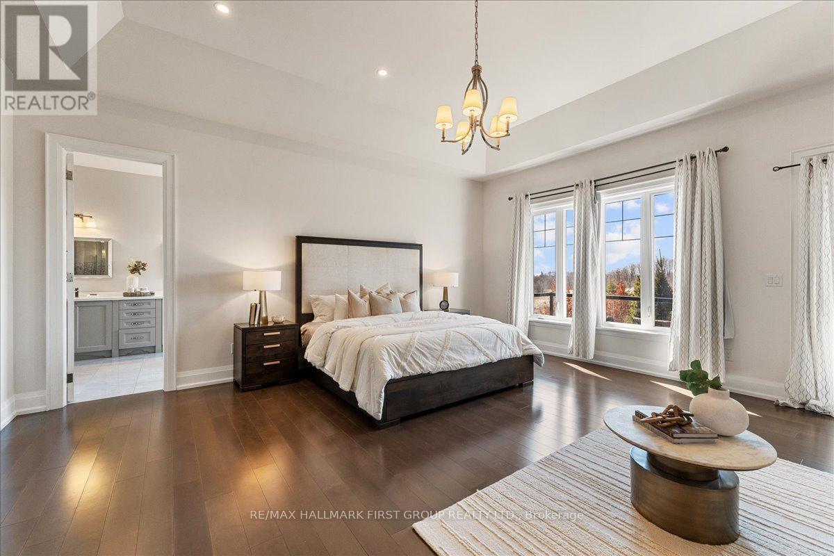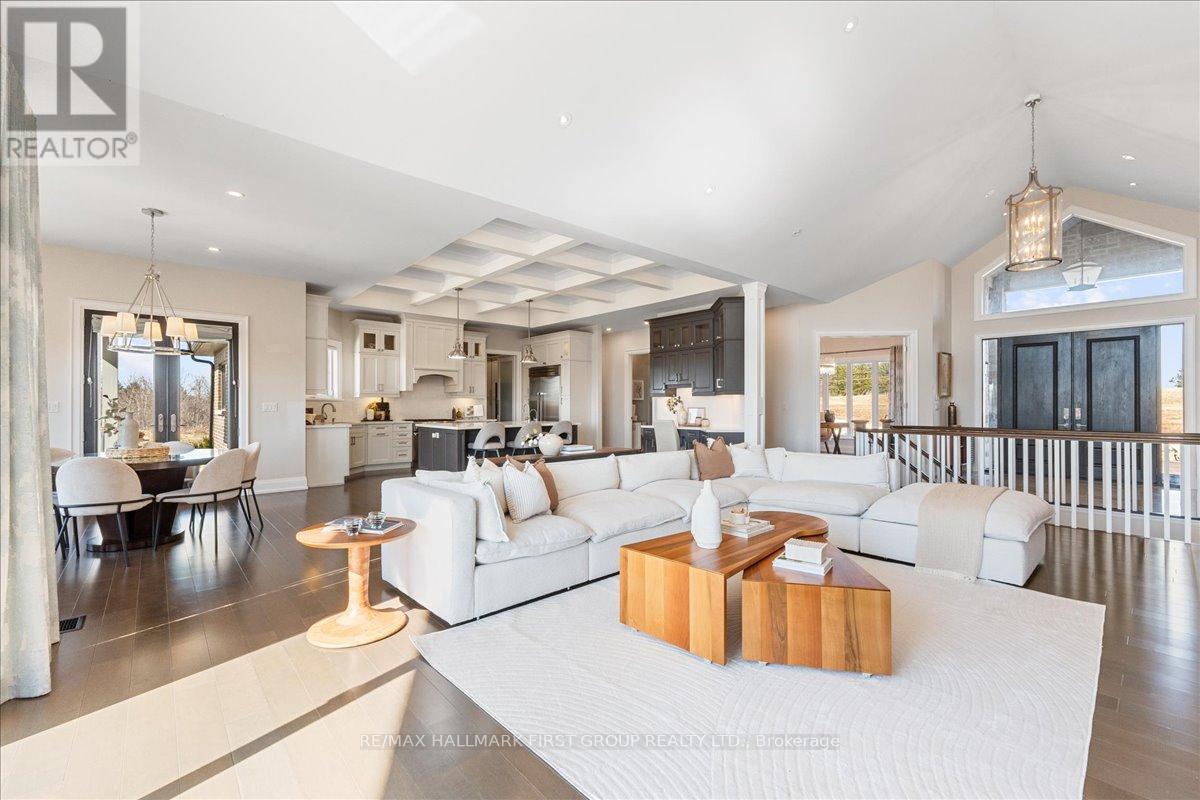 Welcome to 14806 York Durham Line-an extraordinary custom-built stone & brick estate set on a breathtaking 11.3-acre private retreat in Whitchurch-Stouffville. Offering nearly 8,000 sq ft of refined living space, this home showcases exceptional craftsmanship, upscale finishes, and a layout designed for both everyday comfort and grand entertaining. The open-concept great room impresses with soaring vaulted ceilings and a striking 4-ft linear fireplace, while the chef-inspired kitchen features maple cabinetry, stone countertops, a large centre island, premium Thermador professional appliances, and a well-appointed butler's pantry with abundant storage, an additional fridge, and prep sink-perfect for seamless entertaining. The luxurious primary suite is a true sanctuary, complete with coffered ceilings, a spa-like 5-piece ensuite, custom walk-in closet, and a private balcony overlooking the serene grounds. Each additional bedroom is generously sized with its own private ensuite and large closet, offering comfort and privacy for family and guests alike. A versatile loft provides extended living space with potential for multi-generational use, while the walk-out lower level is fully equipped with a theatre room, gym, and bar-perfect for entertaining.Step outside to your own resort-style oasis featuring a saltwater pool, sauna, hot tub, and expansive outdoor living spaces surrounded by nature and complete privacy. Located minutes to Musselman's Lake, Stouffville, Ballantrae, Aurora, Markham, Hwy 404, York Regional Forest, and approximately 40 minutes to Toronto, this property offers the perfect balance of luxury living and convenient access. A professional feasibility report has been completed and will be provided, outlining that the property supports continued use as a luxury estate with potential for additional accessory structures (such as a cabana or pool house), while preserving its natural surroundings and long-term privacy. (id:64974)