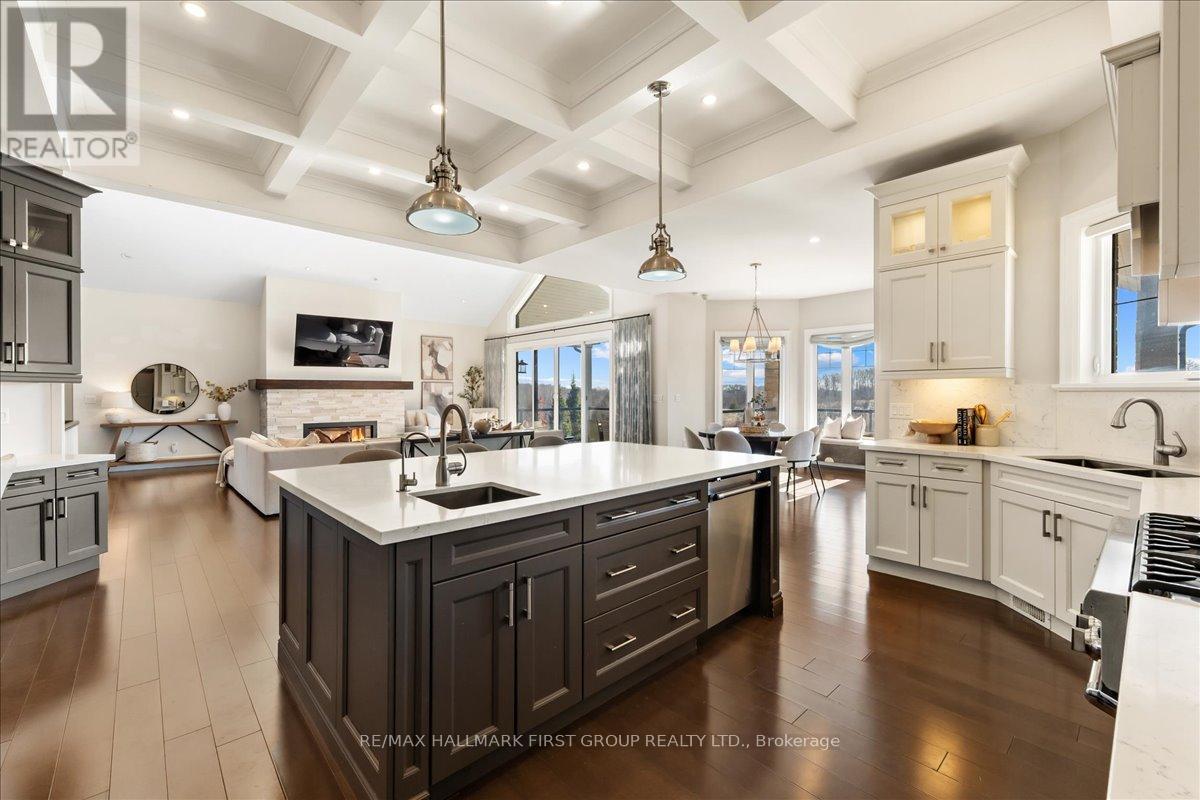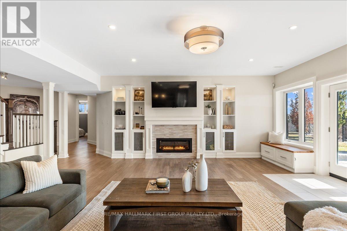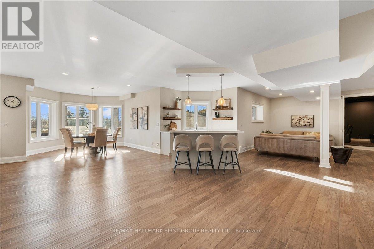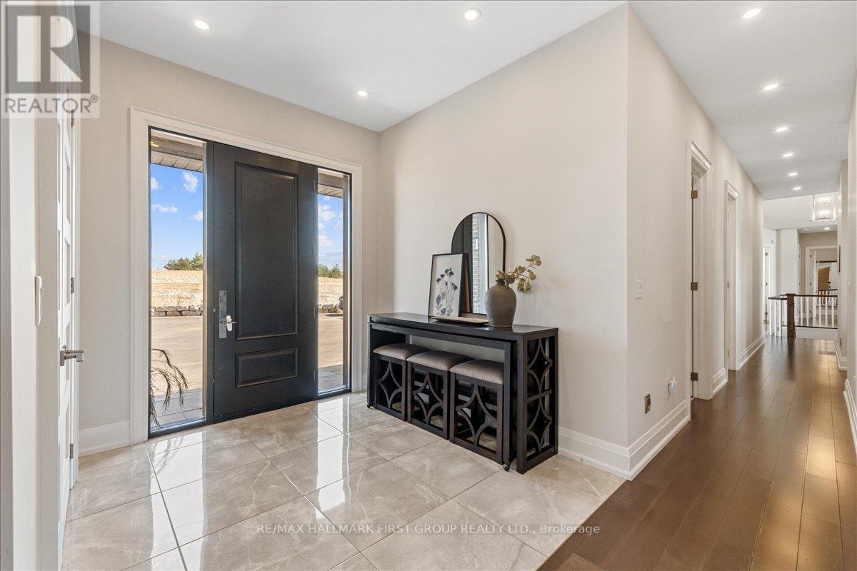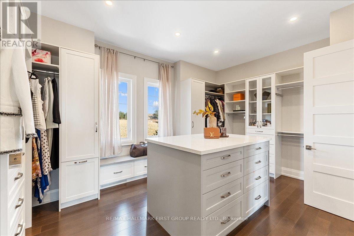 Welcome to 14806 York Durham Line-an extraordinary custom-built stone & brick estate set on a breathtaking 11.3-acre private retreat in Whitchurch-Stouffville. Offering nearly 8,000 sq ft of refined living space, this home showcases exceptional craftsmanship, upscale finishes, and a layout designed for both everyday comfort and grand entertaining. The open-concept great room impresses with soaring vaulted ceilings and a striking 4-ft linear fireplace, while the chef-inspired kitchen features maple cabinetry, stone countertops, a large centre island, premium Thermador professional appliances, and a well-appointed butler's pantry with abundant storage, an additional fridge, and prep sink-perfect for seamless entertaining. The luxurious primary suite is a true sanctuary, complete with coffered ceilings, a spa-like 5-piece ensuite, custom walk-in closet, and a private balcony overlooking the serene grounds. Each additional bedroom is generously sized with its own private ensuite and large closet, offering comfort and privacy for family and guests alike. A versatile loft provides extended living space with potential for multi-generational use, while the walk-out lower level is fully equipped with a theatre room, gym, and bar-perfect for entertaining.Step outside to your own resort-style oasis featuring a saltwater pool, sauna, hot tub, and expansive outdoor living spaces surrounded by nature and complete privacy. Located minutes to Musselman's Lake, Stouffville, Ballantrae, Aurora, Markham, Hwy 404, York Regional Forest, and approximately 40 minutes to Toronto, this property offers the perfect balance of luxury living and convenient access. A professional feasibility report has been completed and will be provided, outlining that the property supports continued use as a luxury estate with potential for additional accessory structures (such as a cabana or pool house), while preserving its natural surroundings and long-term privacy. (id:64974)