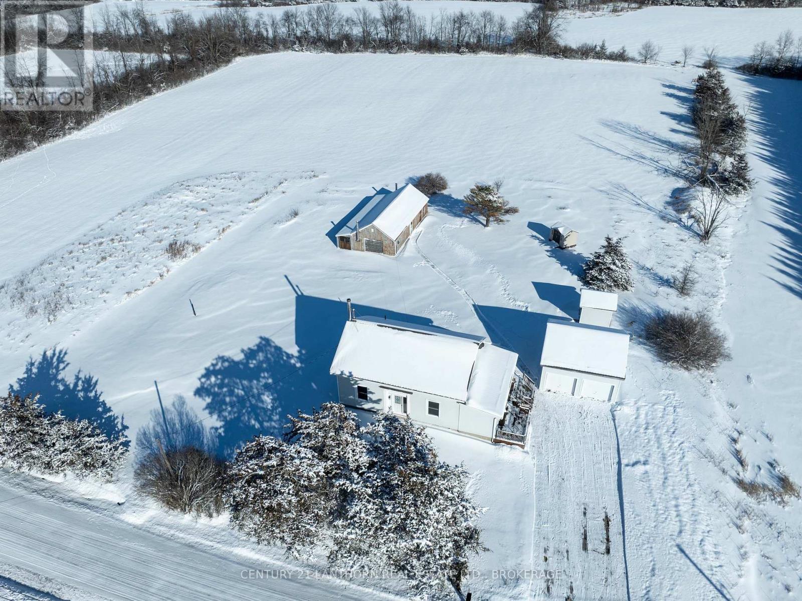 Impeccable condition for its 200-year age! This charming rural home near Odessa has undergone numerous updates while preserving much of its original woodwork and window framing. It features a spacious eat-in kitchen with ample counter and cupboard space, a separate dining room, and a generous living room with hardwood floors. The main level also includes a laundry area and a four-piece bathroom. Upstairs, you'll find a massive primary bedroom, two additional well-sized bedrooms, and a large hallway with ample closet space. The dry, insulated basement offers plenty of storage. Updates include wood & propane furnaces, air cleaner, water treatment system, thermal windows finished and much more. Outside, the property includes a detached double garage with an upper level, two garden sheds, and a sizable workshop-perfect for hobbies or extra storage. All of this sits on approximately 3 acres, with convenient access to nearby city centers. (id:64974)