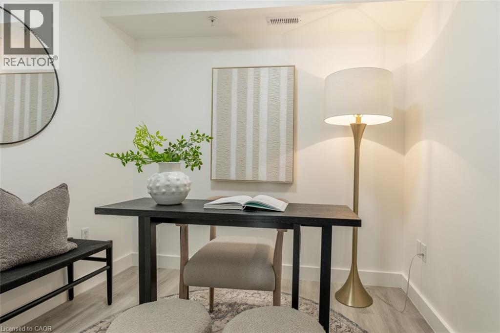 Welcome to one of Milton’s most popular mid-rise condo communities in the highly connected Dempsey neighbourhood. This freshly painted 1-bedroom plus den condo offers 715 sq ft of bright, functional living space with vinyl plank flooring, new semi-flush-mount and LED lighting, and a well-laid-out floor plan that makes everyday life easy. The kitchen is both practical and stylish, featuring a subway tile backsplash, under-cabinet lighting, a peninsula with a breakfast bar, and a convenient microwave shelf. The included GE appliance package includes a refrigerator, built-in dishwasher, and glass top electric range. The bathroom has been upgraded with a new vanity, and the laundry and mechanical closet includes the washer and dryer. Enjoy double glass doors leading to a covered balcony, perfect for year-round barbecuing, plus a storage room for all your seasonal items. A standout feature for this unit is the parking: one owned underground space plus one exclusive surface space, a rare find. Also included is a convenient parking-level locker. Maple Crossing offers a friendly community atmosphere with excellent amenities, including a full gym, party room, visitor parking, an elevator, and a car wash bay in the underground garage. Condo fees include water, building insurance, and amenities. The location is hard to beat: literally 2 minutes to the Highway 401 entrance, close to Milton GO, and surrounded by coffee shops, restaurants, grocery stores, parks and everyday essentials. Whether you’re a first-time buyer, downsizer, or investor, this is one of the best, most convenient condo locations in town. (id:64974)