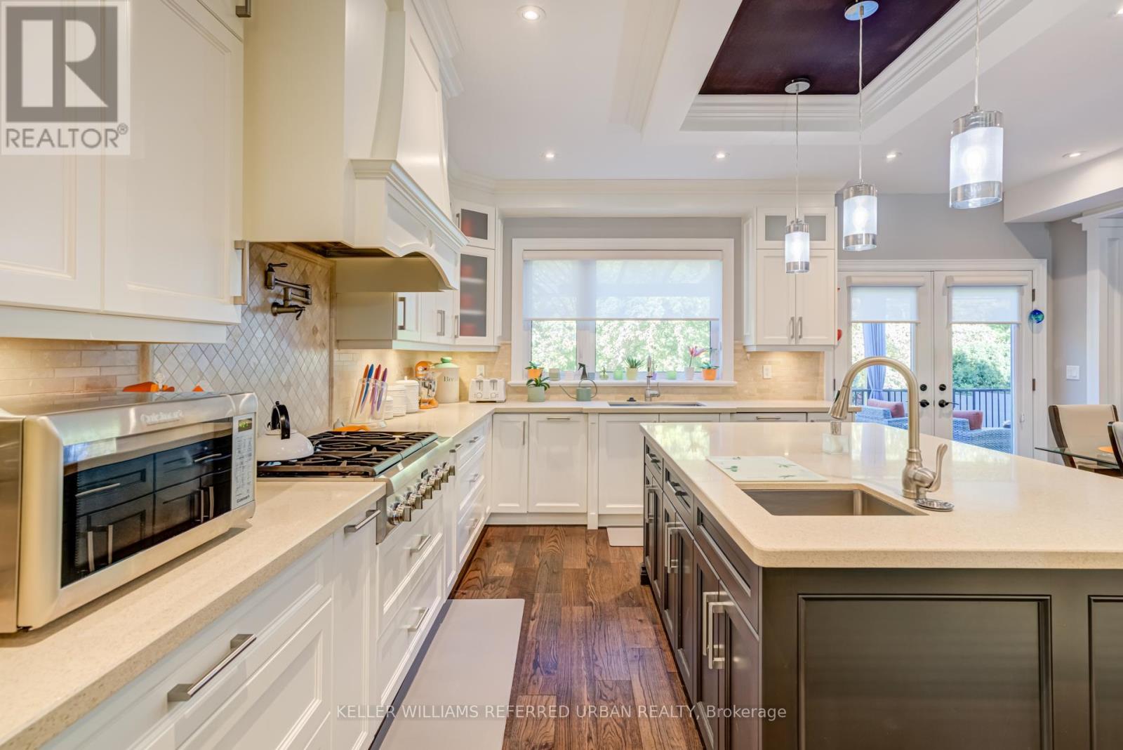 Step into the rare charm of 1487 Myron Drive, a beautifully updated 2-storey family home set on a remarkable 51 x 265 ft lot backing directly onto Lakeview Golf Course, offering sweeping green views, privacy, and a sense of escape without leaving the city. With timeless curb appeal, the exterior blends stone and stucco finishes, an extended driveway for up to six cars, and landscaped gardens that set the tone for what's inside. The main level features bright, open-concept living and dining spaces with hardwood floors, large windows, and walk-out access to the backyard oasis. The renovated kitchen includes stone counters, stainless-steel appliances, a breakfast area, and sightlines to the yard, perfect for everyday family life and entertaining. Upstairs, the spacious primary suite with 6 piece ensuite includes double closets and a private balcony overlooking the treetops and golf course. With three additional bedrooms all with their own ensuite bathrooms. The finished lower level offers a recreation room, guest space, home gym or office potential, plus ample storage. The true luxury is outside: a deep, park-like backyard with mature trees, multiple seating zones, space for a pool, sports court, garden suite, or future expansion. This is the kind of lot you simply can't recreate. Located in one of Mississauga's most desirable pockets, Lakeview, steps to top schools, walking trails, the soon-to-be revitalized Lakeview Village waterfront, Port Credit, transit, golf, and quick highway access. (id:64974)