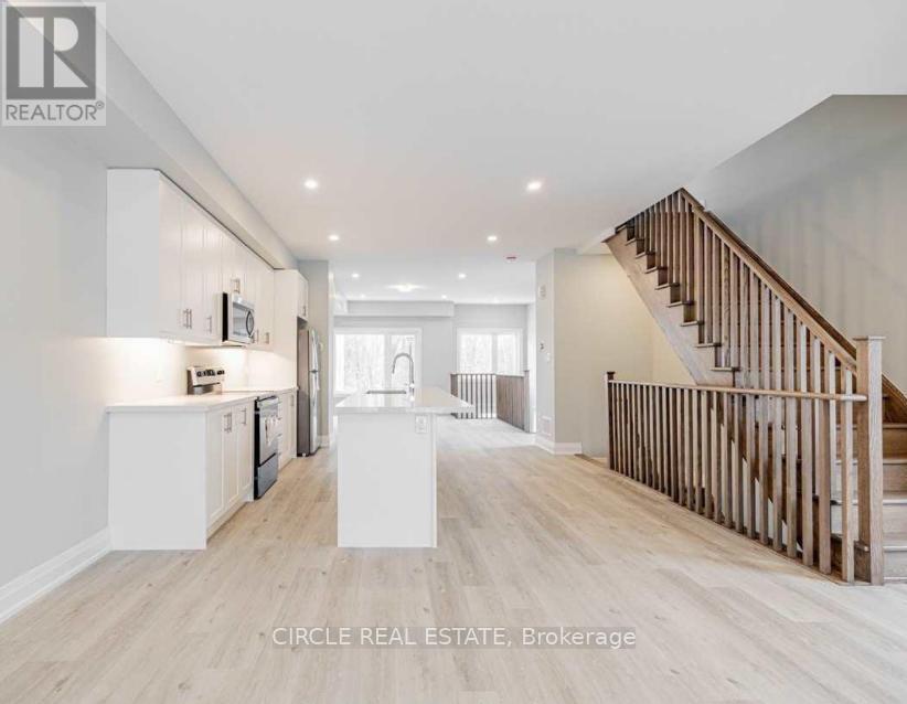 Modern 3-storey freehold townhome available from April 1st. Bright open-concept layout with an upgraded kitchen featuring quartz countertops, large island, and stainless steel appliances. No carpet throughout. Offers 3 spacious bedrooms, 3 bathrooms, and a finished walkout basement with large rec room and direct garage access. Convenient inside entry from garage and driveway parking. Located in the desirable Lefroy community, minutes to schools, parks, waterfront, GO Train, local amenities, and quick access to Hwy 400. Tenant will pay all utilities. ****The photos depict an earlier time, and the furniture and decorations may have changed since then*** (id:64974)