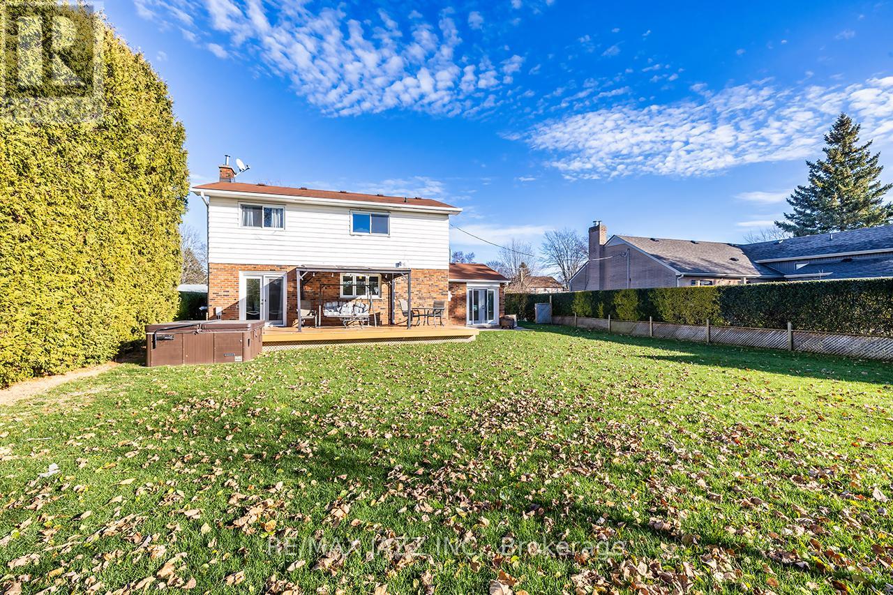 Welcome to this beautifully renovated 4-bedroom, 2-bath, two-storey home, offering nearly 2,000 sq. ft. of bright, functional and above-grade living space on an impressive 66x130 lot. Nestled on a quiet, premium street just a short walk to the water, this home delivers the perfect blend of space, style, and lakeside living. The open-concept main floor is ideal for today's lifestyle, featuring a spacious living and dining area with renovated finishes, updated flooring, and large windows that fill the home with natural light. The modern kitchen offers solid countertops, ample prep space, and direct walk-out access to your backyard retreat. The garage was converted, with permits, to a HUGE family room with in-floor heating adding extra space for family, hobbies, or a massive workspace. Step outside to a truly exceptional outdoor living space-complete with a large deck, relaxing hot tub, and a charming gazebo perfect for dining, lounging, or year-round enjoyment. The deep 66x130 lot provides privacy and endless possibilities, with plenty of space for kids, pets, gardening, or even a future pool or garden suite (buyer to verify). A large storage shed adds even more convenience. Upstairs, you'll find four generous bedrooms and an updated 4-piece bathroom, giving the whole family room to grow. The partially finished basement offers additional flexibility-whether you need a rec room, home gym, playroom, or music room (as it's used now), as well as room for tones of storage. With the lake just moments away, a large backyard and a beautifully finished space - enjoy morning walks, afternoon BBQs, and evening hot tubs in a quiet, private, and premium location. This is a rare opportunity to secure a renovated family home in one of the area's most desirable pockets. Don't miss it. (id:64974)