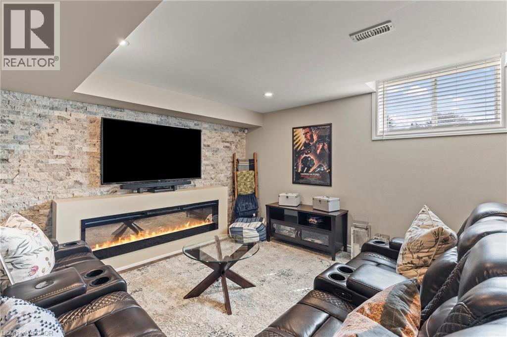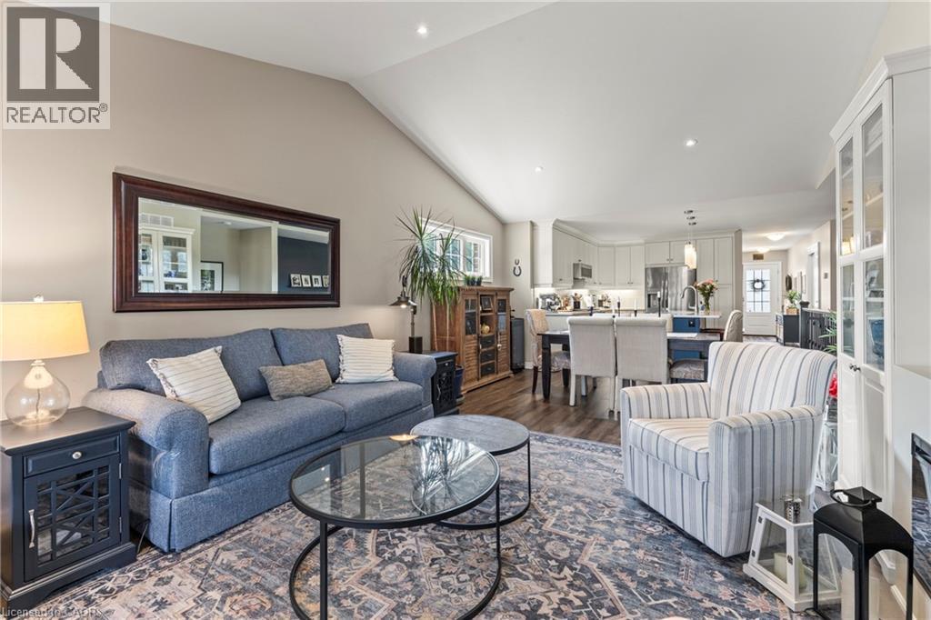In one of Southern Ontario's most desirable locations, this exceptional 4-bedroom, 3-bathroom ranch bungalow combines thoughtful design, premium finishes, and a resort-like private backyard. With windows on all four sides of the home-only connected to the neighbour by the garage-natural light fills every corner, enhancing both privacy and openness. Masterfully built, this home radiates quality from the Hemlock timber portico and composite Everlast cladding to the decorative stonework, LED soffit lighting, and professionally landscaped grounds.Inside, soaring vaulted ceilings, and custom Millbrook cabinetry set a tone of timeless elegance. The chef's kitchen features Caesarstone countertops, a centre island with prep sink, and all appliances just 2 years old, including a Frigidaire Gallery 4-door fridge, Frigidaire Professional 48 stove, Whirlpool dishwasher and microwave, plus an Electrolux Smart washer and dryer. The great room centres around a floor-to-ceiling tiled gas fireplace, framed by oversized windows that fill the space with natural light.The fully finished basement offers a spacious recreation area, a stunning TV room with a tiled floor-to-ceiling fireplace, guest accommodations, and endless possibilities for entertainment or fitness. The insulated 1.5-car garage provides comfort and extra storage.Mechanical systems include a rented hot water boiler for the hydronic furnace, an owned tankless water heater, and an owned water filtration system-ensuring year-round efficiency and comfort. Step outside to your own private resort-style backyard oasis, complete with expansive patios, lush landscaping, and tranquil spaces perfect for summer evenings and weekend entertaining. Every element of this home has been carefully designed to deliver comfort, luxury, and an unmatched lifestyle, all in a prestigious community celebrated for its charm, amenities, and proximity to the best of Southern Ontario living. (id:64974)