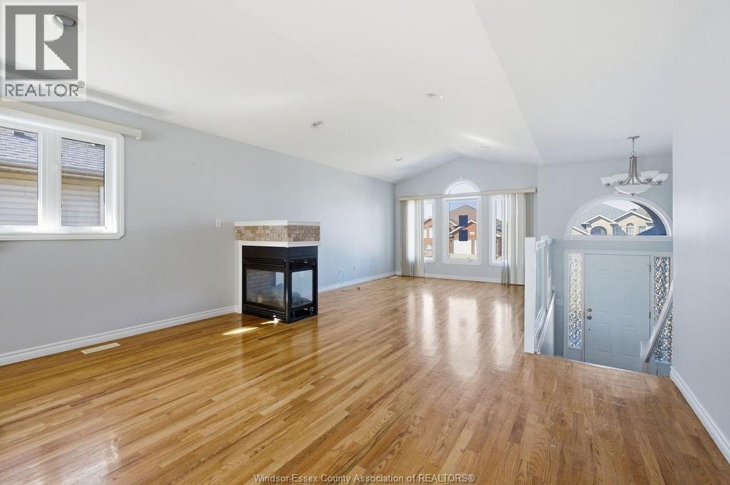 Welcome to 149 Amy Croft Drive in beautiful Lakeshore! This stunning oversized brick raised ranch offers 3+1 bedrooms, 3 full baths, cathedral ceilings, and gleaming hardwood floors. The spacious primary suite features his-and-hers closets and a private ensuite.Enjoy a fully finished open-concept basement with natural gas fireplace, plus another fireplace upstairs. Extra-wide grade entrance, double-wide concrete driveway, 2-car attached garage, fully fenced yard with deck, and concrete patio complete this gem of a home. Peaceful location on Tecumseh's outskirts—perfect for families! (id:64974)