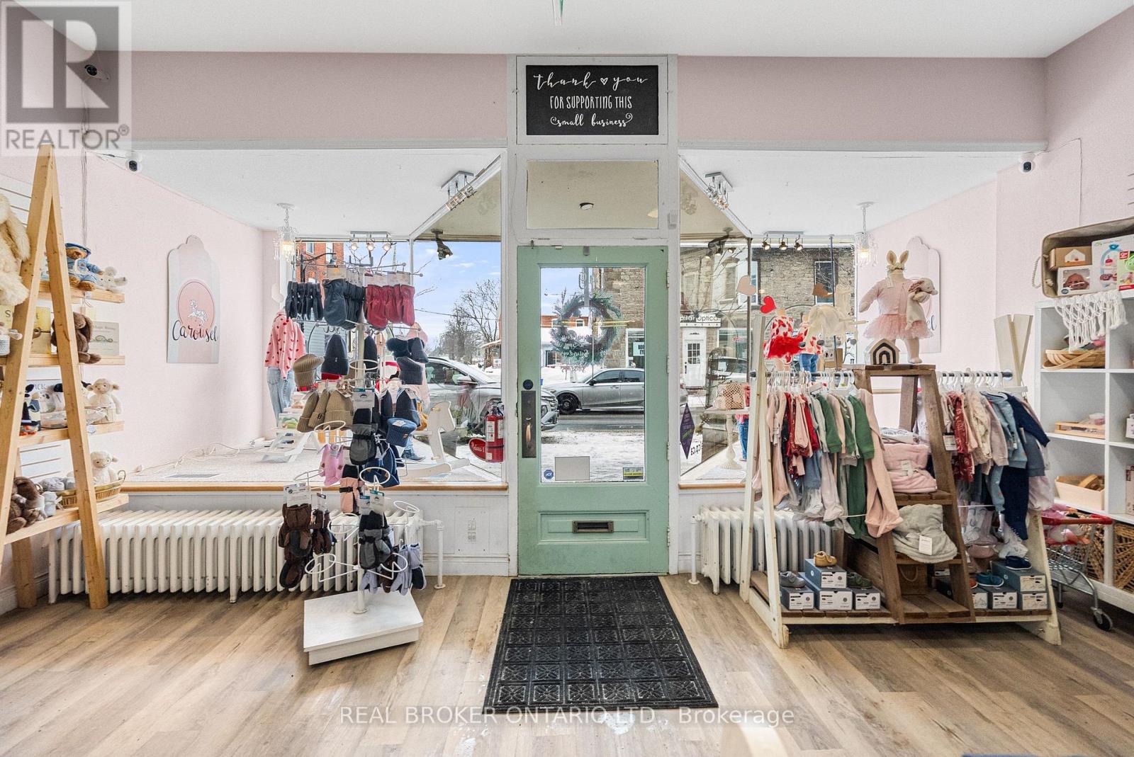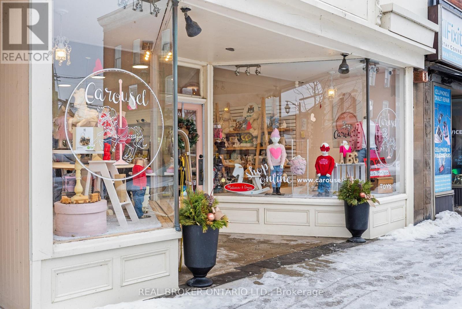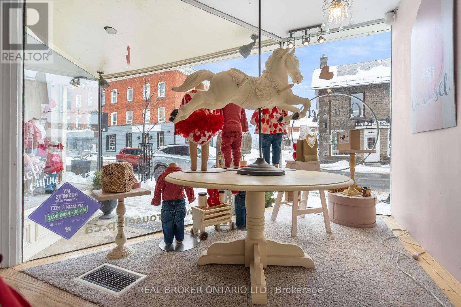 Welcome to 149 Bridge Street! This turn key, fully renovated upscale retail space is located in the heart of Carleton Place's historic shopping district. This gorgeous main floor retail space is generously sized and features large bay windows and a glass door that allow for abundant natural light. The restored interior is sure to impress customers. Surrounded by several popular restaurants and other boutique shops, this commercial space is strategically positioned to benefit from strong foot traffic. Just a short walk to the new bridge and the Mississippi River, the area offers undeniable small town charm and is occasionally selected as a filming location for Hallmark movies. The property offers approximately 1,637 square feet of retail space, an additional 565 square feet of rear warehouse and storage space, two rear parking spaces for staff, and ample free street parking for customers. Carleton Place is consistently one of Canada's fastest growing communities, making this an excellent opportunity for small businesses to thrive. (id:64974)