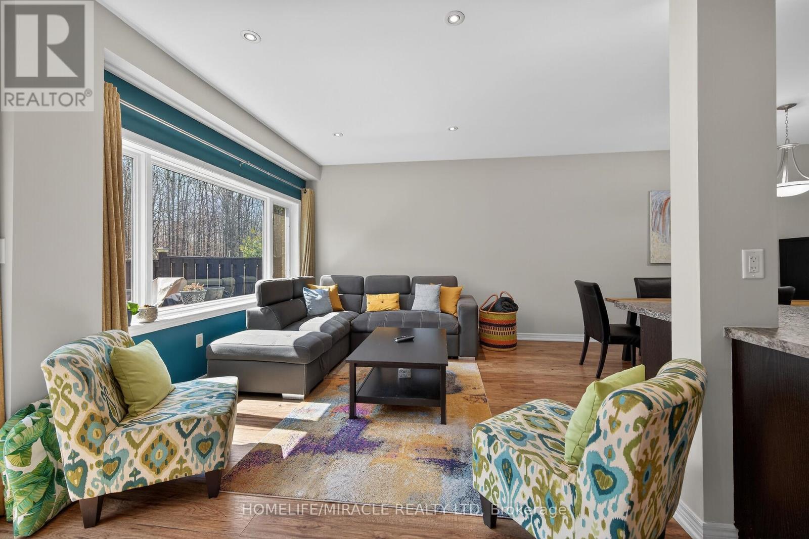 Beautifully upgraded 3-bedroom, 4-bathroom townhome with a finished basement and private backyard, located in the heart of Binbrook - a mature, family-friendly community known for its quiet streets, parks, and strong neighborhood feel.Owned by the original owners and well maintained throughout, this home offers a functional and spacious layout ideal for both everyday living and entertaining. The open-concept main floor features seamless flow and access to a fully fenced backyard, perfect for relaxing or hosting guests.The fully finished basement (2023) adds valuable living space, complete with a wet bar, 3-piece bathroom, and ample storage - ideal for a recreation area or extended family use.Step outside to your private backyard backing onto a wooded lot with no rear neighbors, offering peace and privacy. The two-level deck and gas BBQ hookup make it an excellent space for outdoor entertaining.Additional features include commercial-grade laminate flooring, fresh paint throughout, upgraded appliances, main floor laundry, and a large upper-level office space.Conveniently located close to schools, parks, trails, and everyday amenities, this move-in ready home offers a perfect blend of comfort, privacy, and convenience.| Private Backyard | Move-In ReadyDon't miss this opportunity to own a beautifully maintained home in one of Binbrook's most desirable communities. (id:64974)