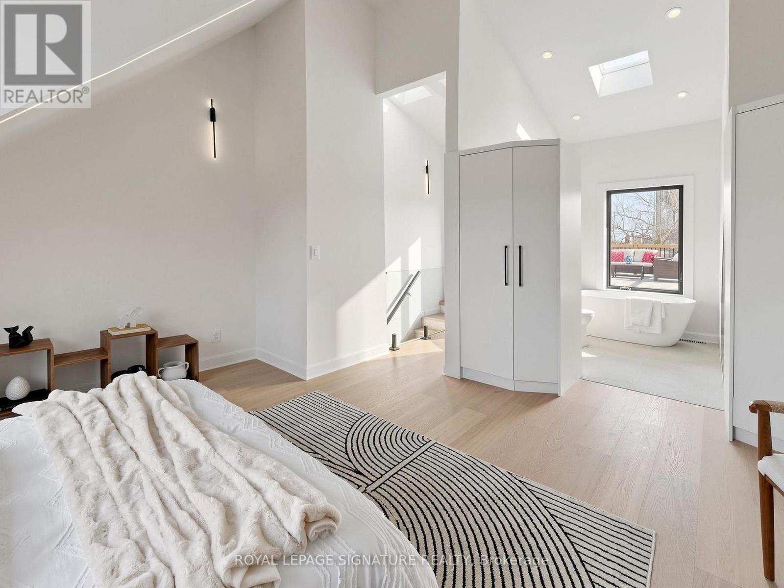 A great opportunity awaits in the prime Riverdale neighbourhood with this south-facing,detached 2.5-storey, 4-bedroom home. Experience a fully renovated residence, thoughtfully upgraded from top to bottom with modern finishes and a highly functional layout. The main floor offers a seamless flow, featuring a bright and inviting living and dining area, a beautifully updated kitchen, and a spacious family room at the rear. The family room is anchored by a stylish fireplace and opens to a stunning deck with a gas BBQ connection-perfect for entertaining or everyday living. The second floor features three well-appointed bedrooms, including a primary bedroom with a private ensuite. The two additional bedrooms share a full bathroom, and a convenient laundry area is also located on this level. The third floor adds exceptional value as a full fourth bedroom, offering a large, open-concept private suite complete with its own ensuite bathroom, dual closets, and a beautiful balcony overlooking the backyard with city views-ideal as a luxurious primary retreat, guest suite, or private workspace. The finished basement offers an open-concept layout with an additional bedroom and its own laundry, providing excellent flexibility for extended family. Additional features include two-car laneway parking, an EV charger,200-amp electrical panel, and pre-installed rough-in 40-amp circuit and Pipe line for an outdoor jacuzzi.Located within the highly sought-after Withrow School district and just steps to Withrow Park ,this home offers an exceptional lifestyle on one of Riverdale's most desirable streets. (id:64974)