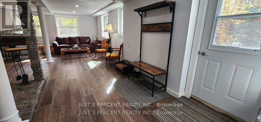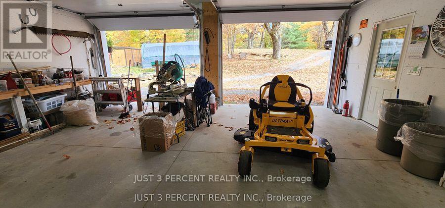Welcome to God's country! Remarkable private 4-acre country location just outside of Apsley with a fully renovated walkout bungalow. Gorgeous grounds with many kinds of trees, shade all year. Rock gardens and perennials. Huge near-near triple garage with separate furnace. Loft overtop waiting for your finishing (North Star windows included for finishing). Office in garage. Walk in to this bright home that feels like new: great room with a dream kitchen featuring granite counters, huge island, ample cupboards, lovely engineered hardwood floors throughout, and living room. Large primary bedroom with laundry mere feet away from closets and drawers. Newly renovated lower level with attractive stone exterior. Large family room with huge bright windows and walkout, doesn't feel like a basement. Newer septic, roofing, almost everything. No worries about electricity with a full-house Generac generator system. Roughed in 2-piece bathroom in garage. Perfect home for a home business, retirees or weekend oasis retreat. Area has dozens of lakes nearby, and shopping and restaurants in Apsley and Bancroft. (id:64974)